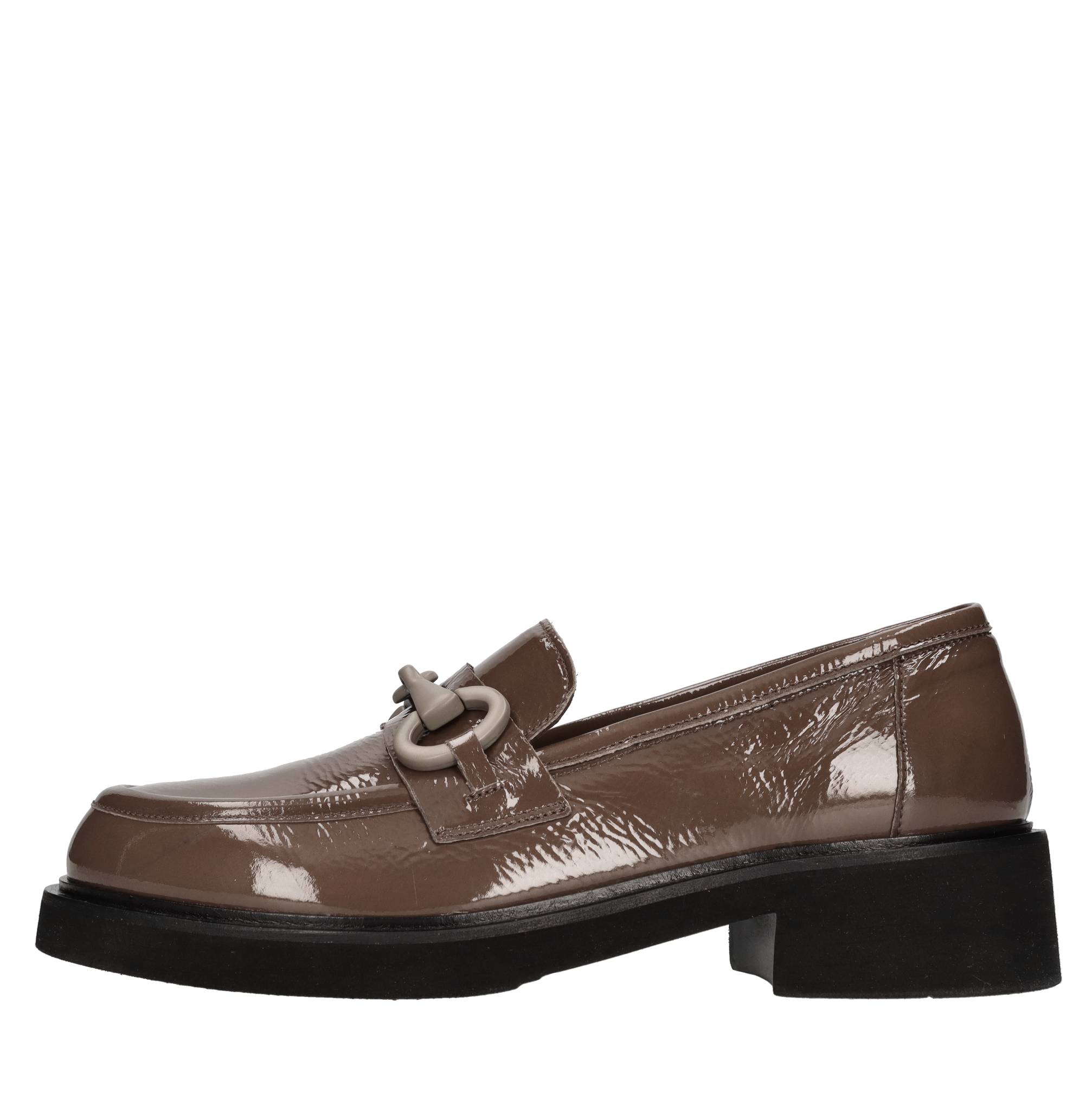 Mocassins en cuir brillant. Le dessus en cuir. Semelle extérieure en caoutchouc extra-léger.