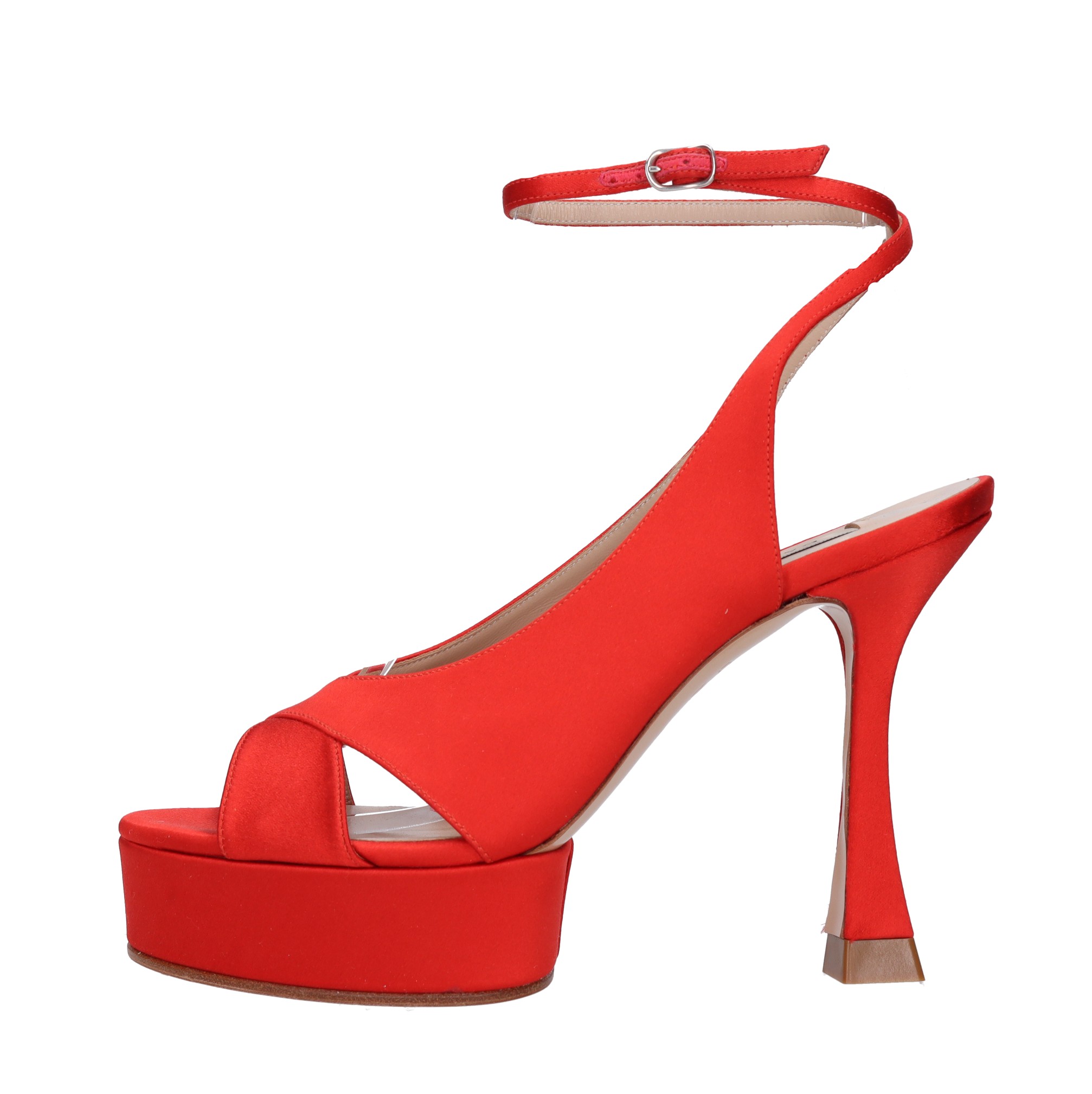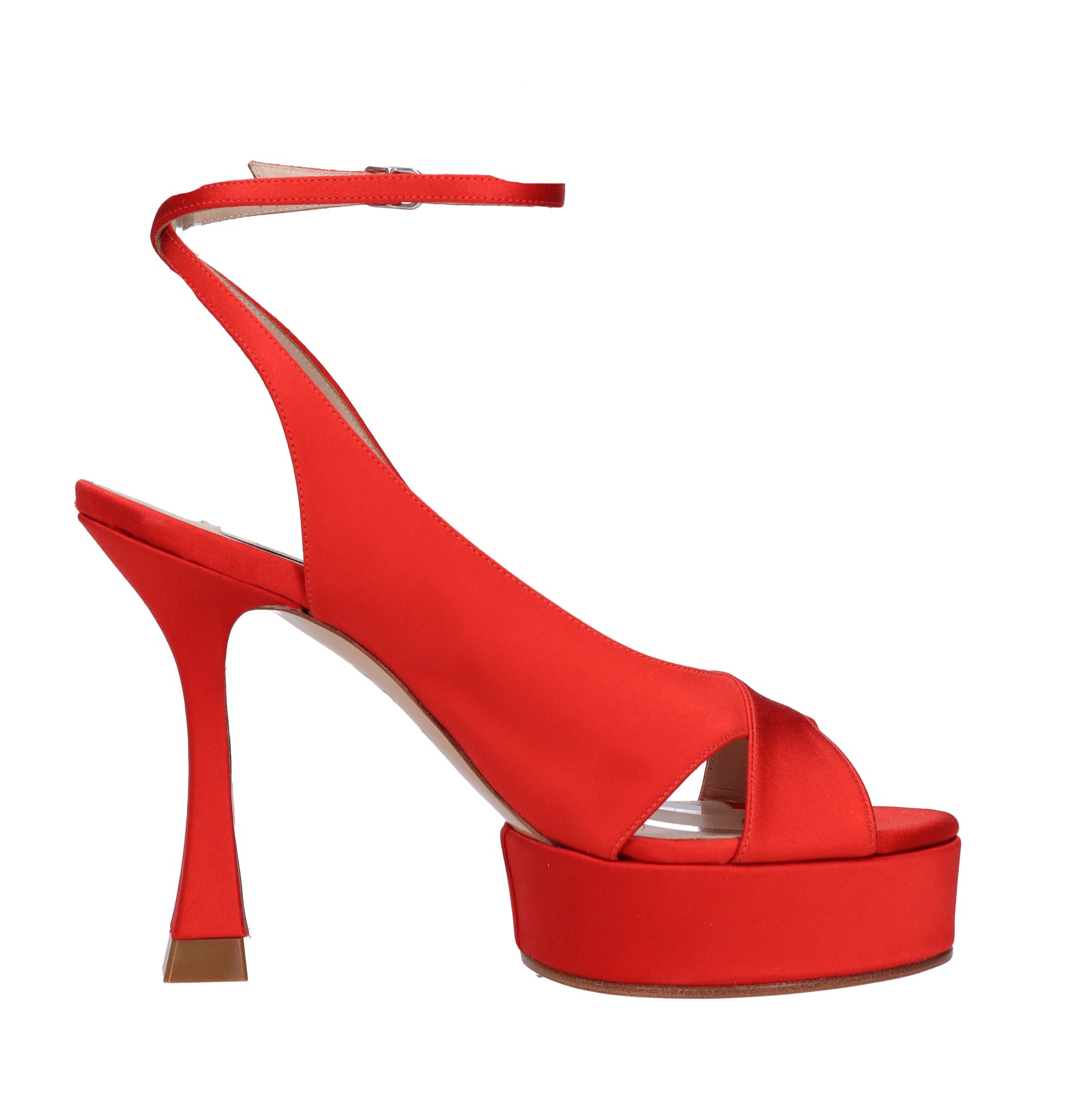 Sandales en satin et cuir. Plateau : 3,5 cm. Semelle extérieure en cuir. Dessus intérieur en cuir. Expédié dans une boîte neutre.