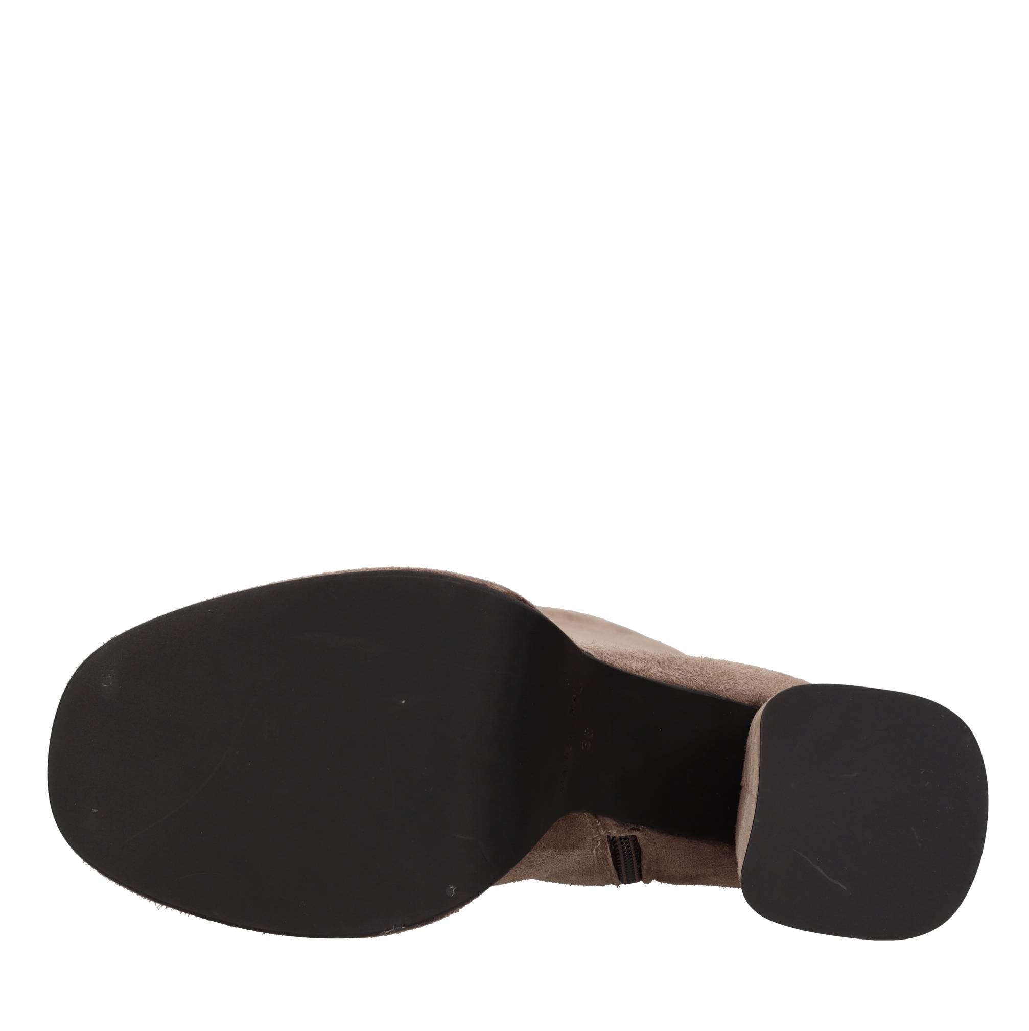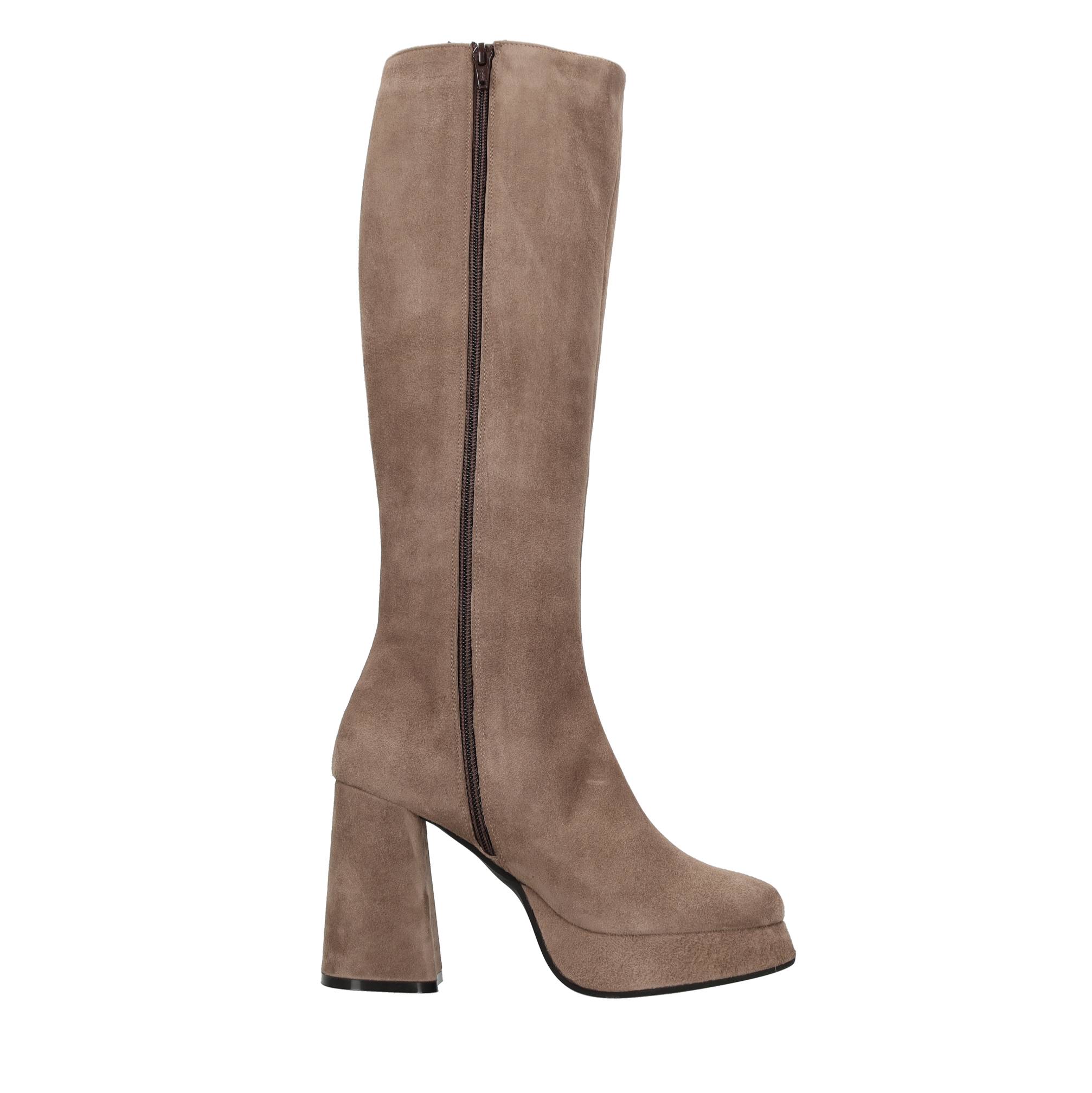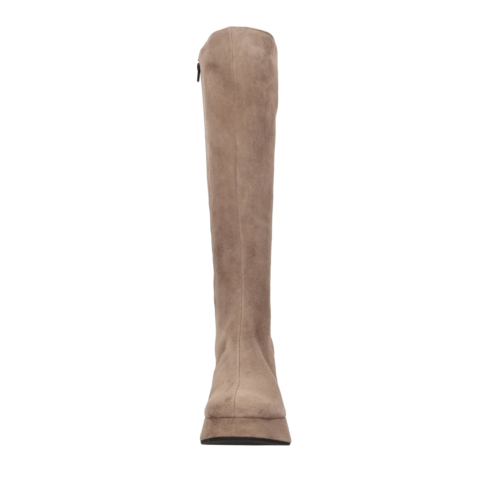 Bottes en daim. Plateau 3cm. Semelle extérieure en caoutchouc. Dessus intérieur en cuir.