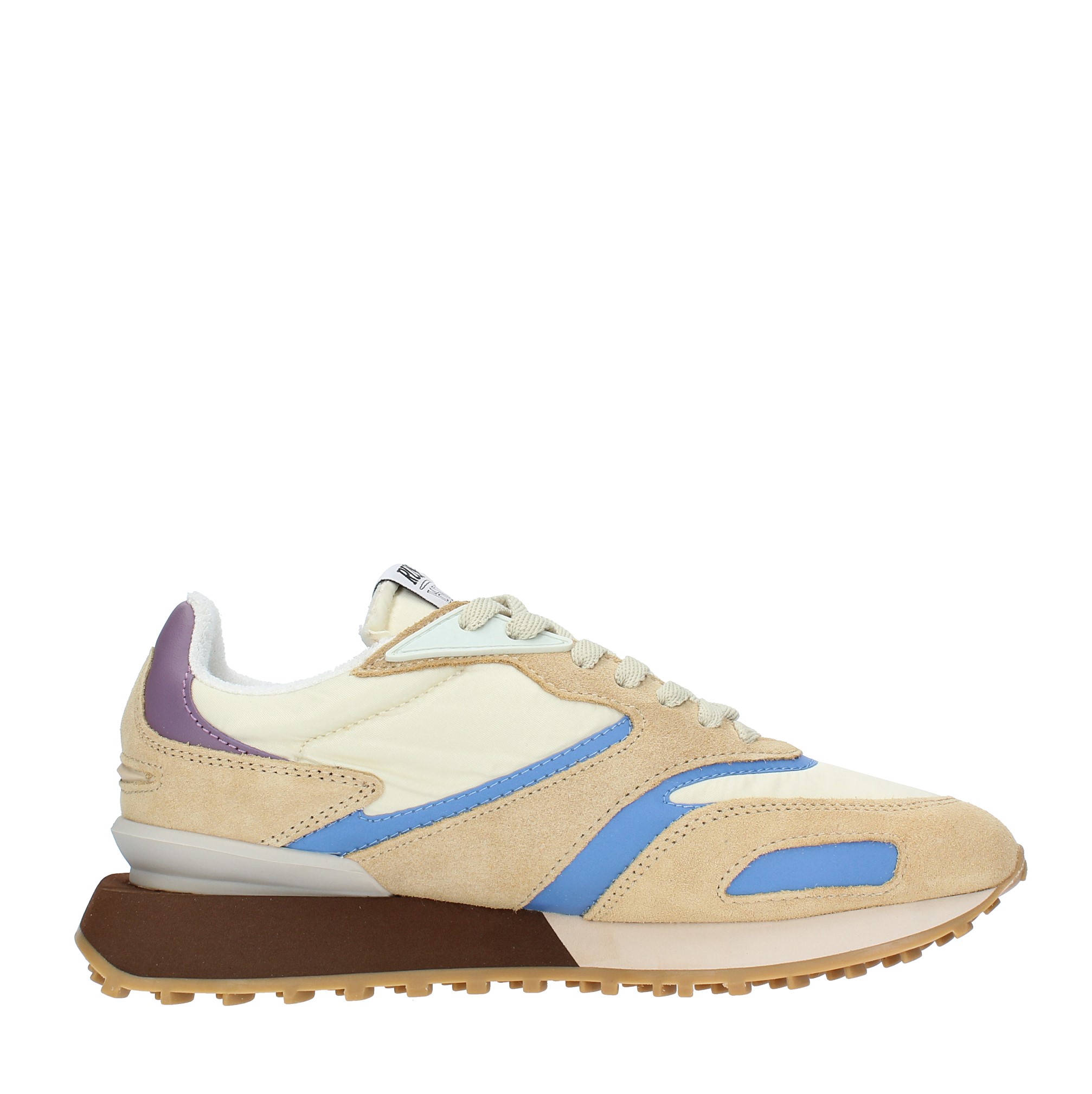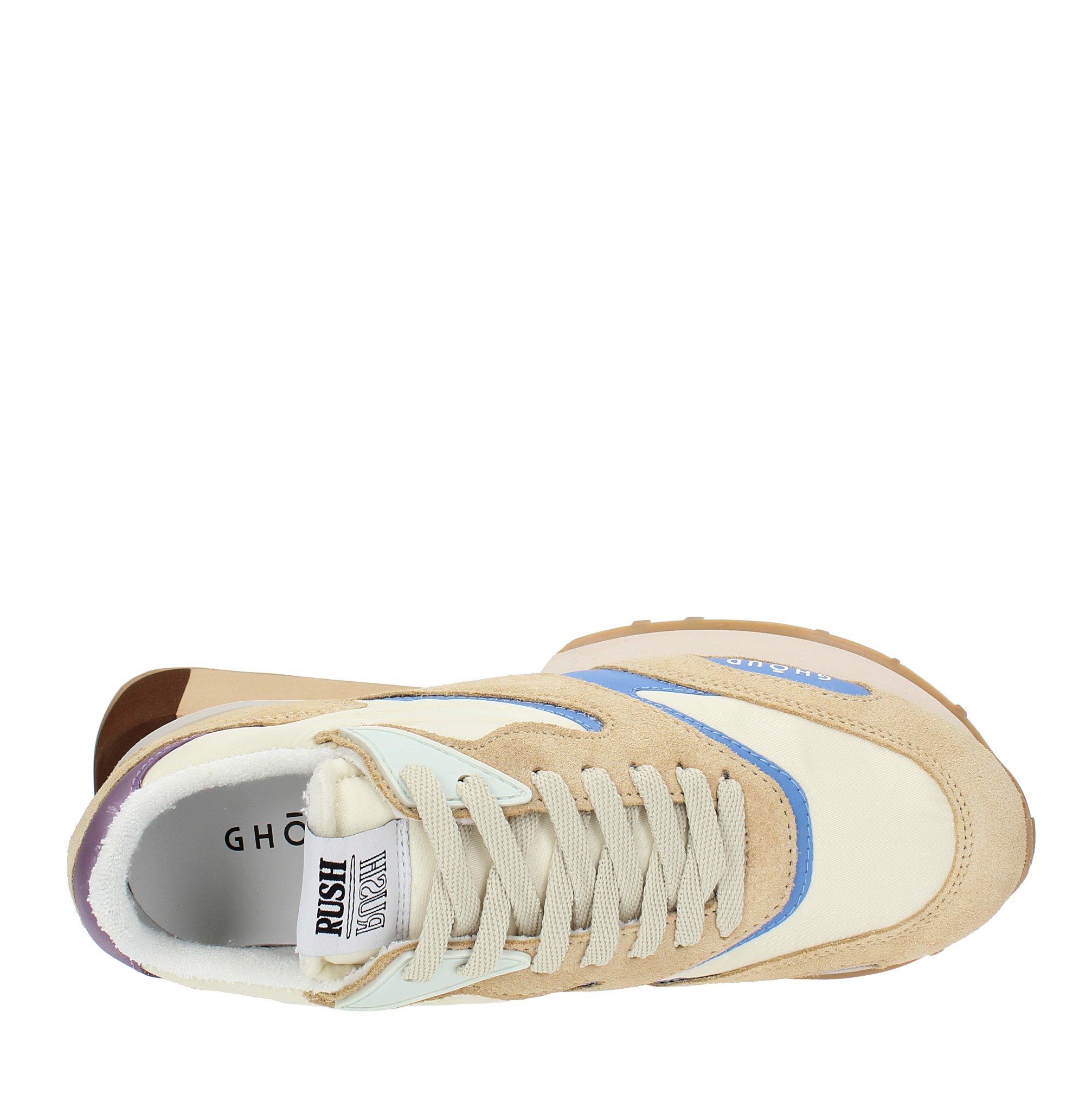 Baskets modèle RUSH GR2 en daim et tissu. Semelle extérieure en caoutchouc. Tige interne en cuir et tissu. Les éventuelles imperfections sont la preuve d'un travail manuel qui rend chaque paire de chaussures différente de l'autre.