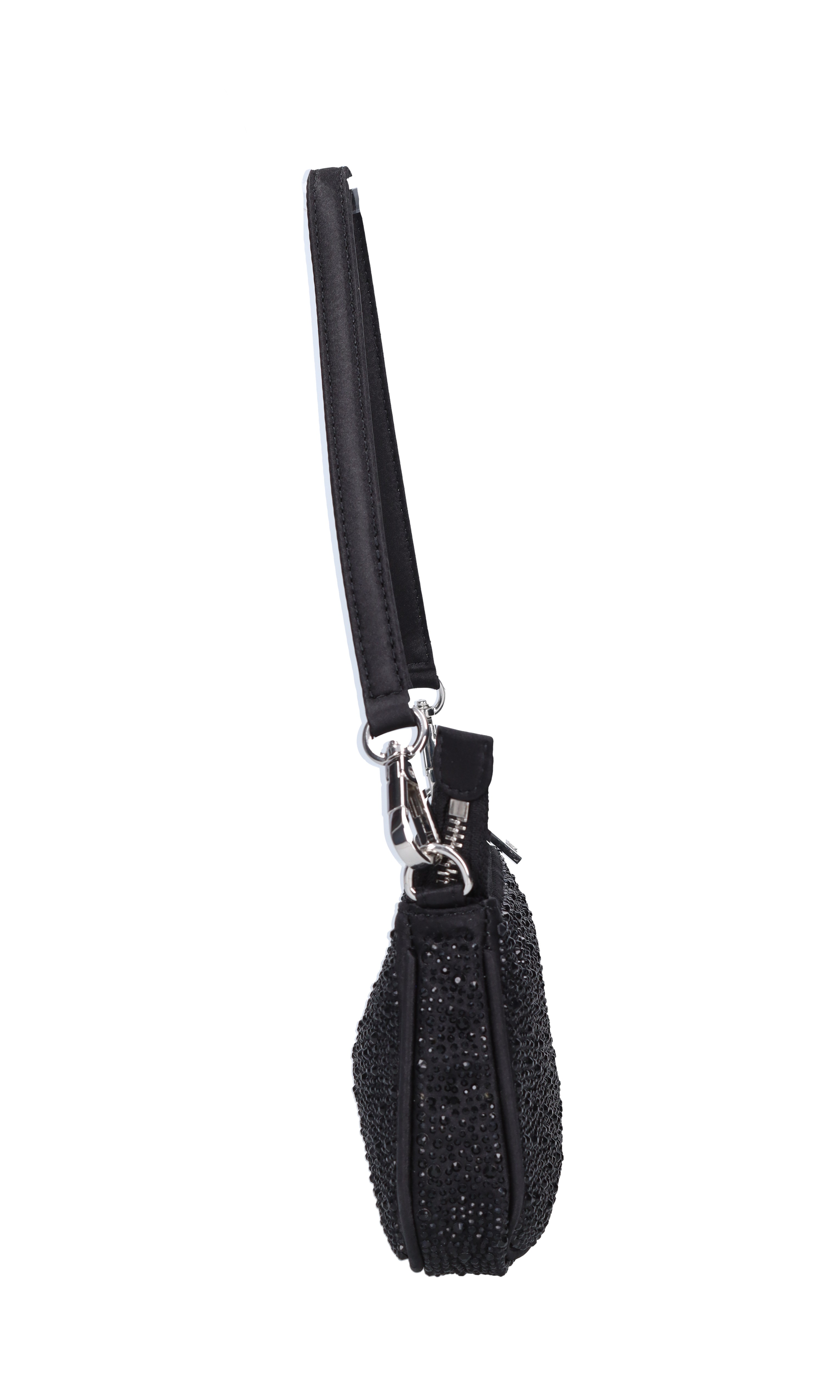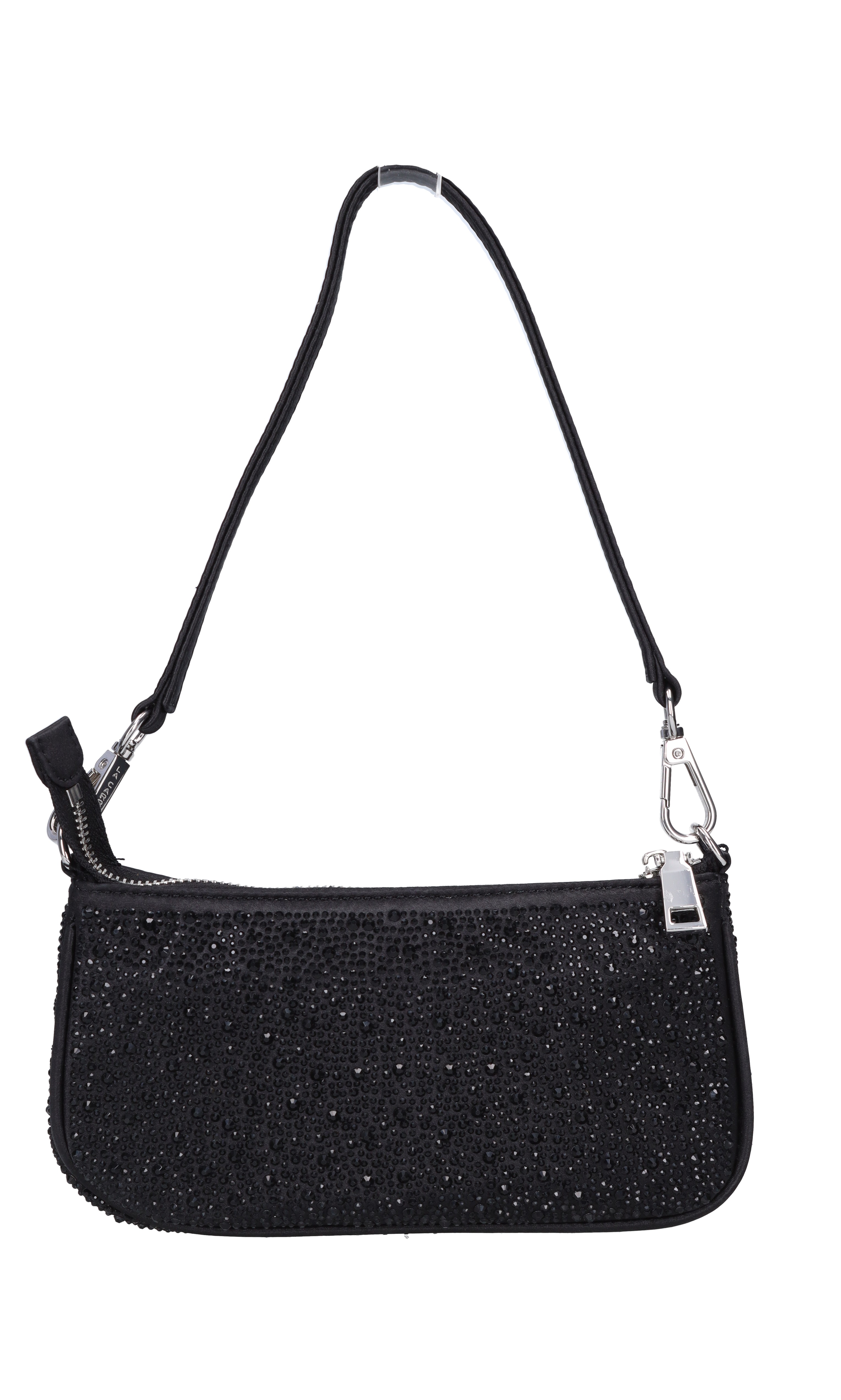 Sac en éco-cuir et strass. Fermeture à glissière. 1 compartiment. Bandoulière amovible.
