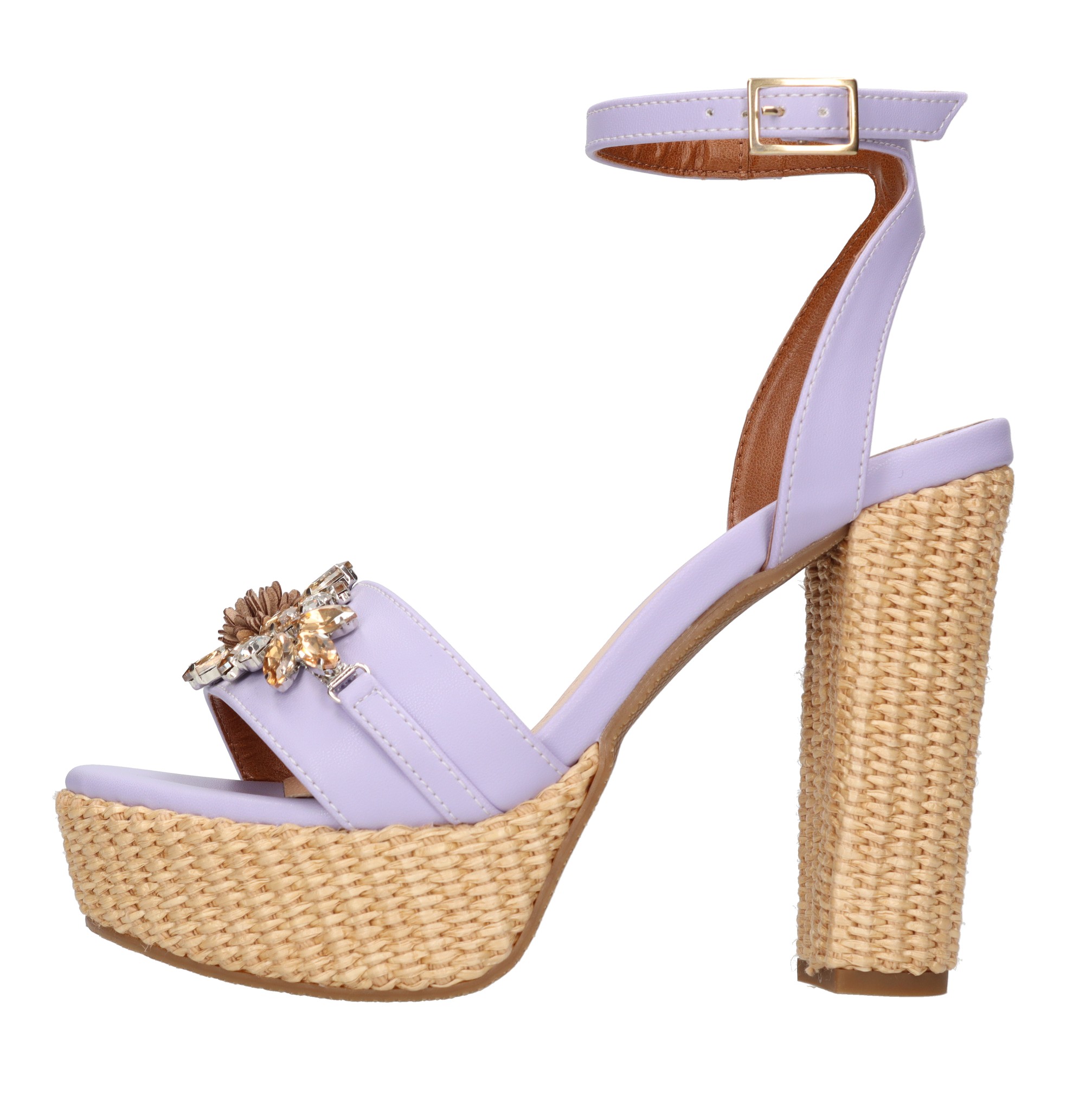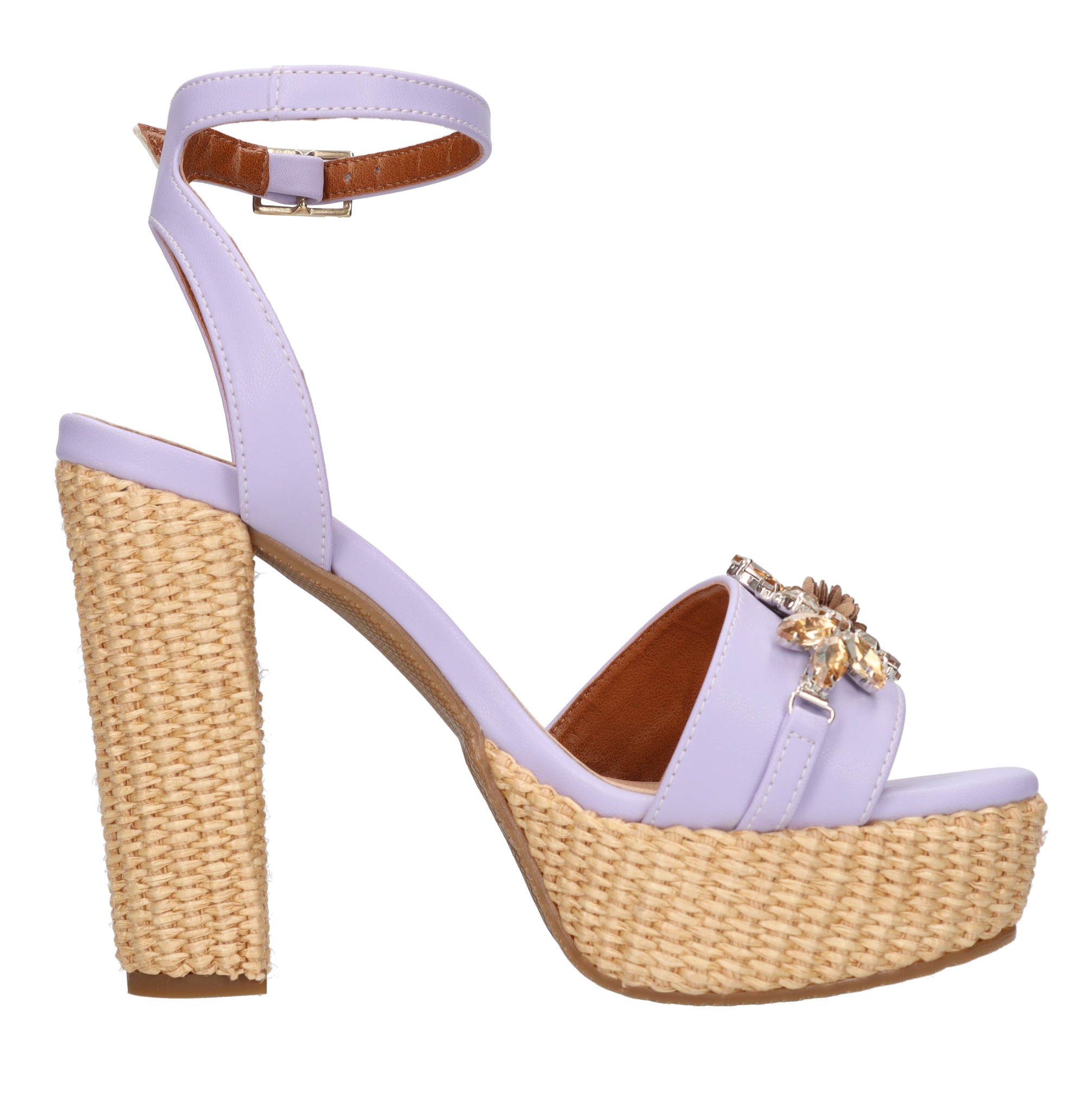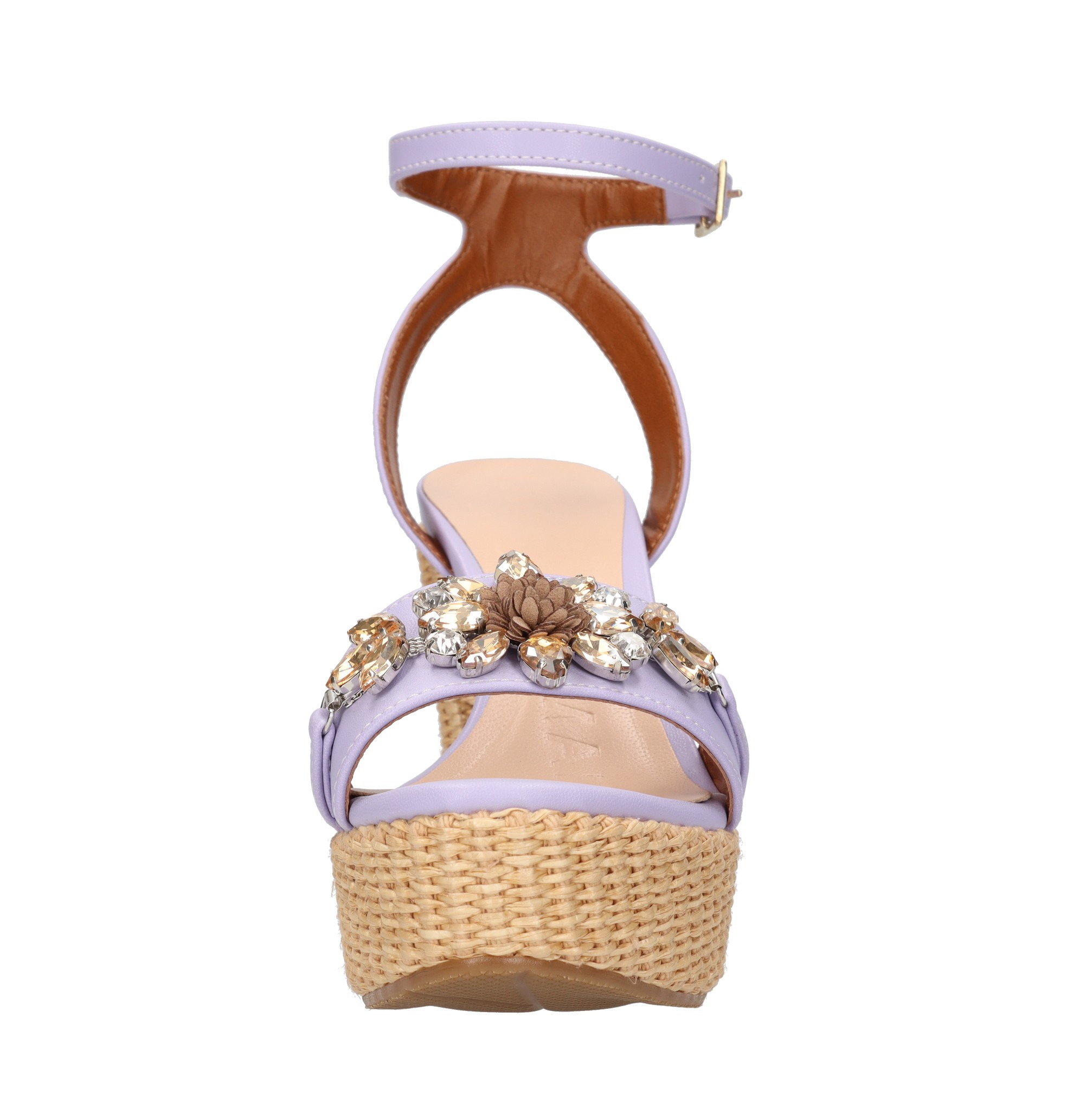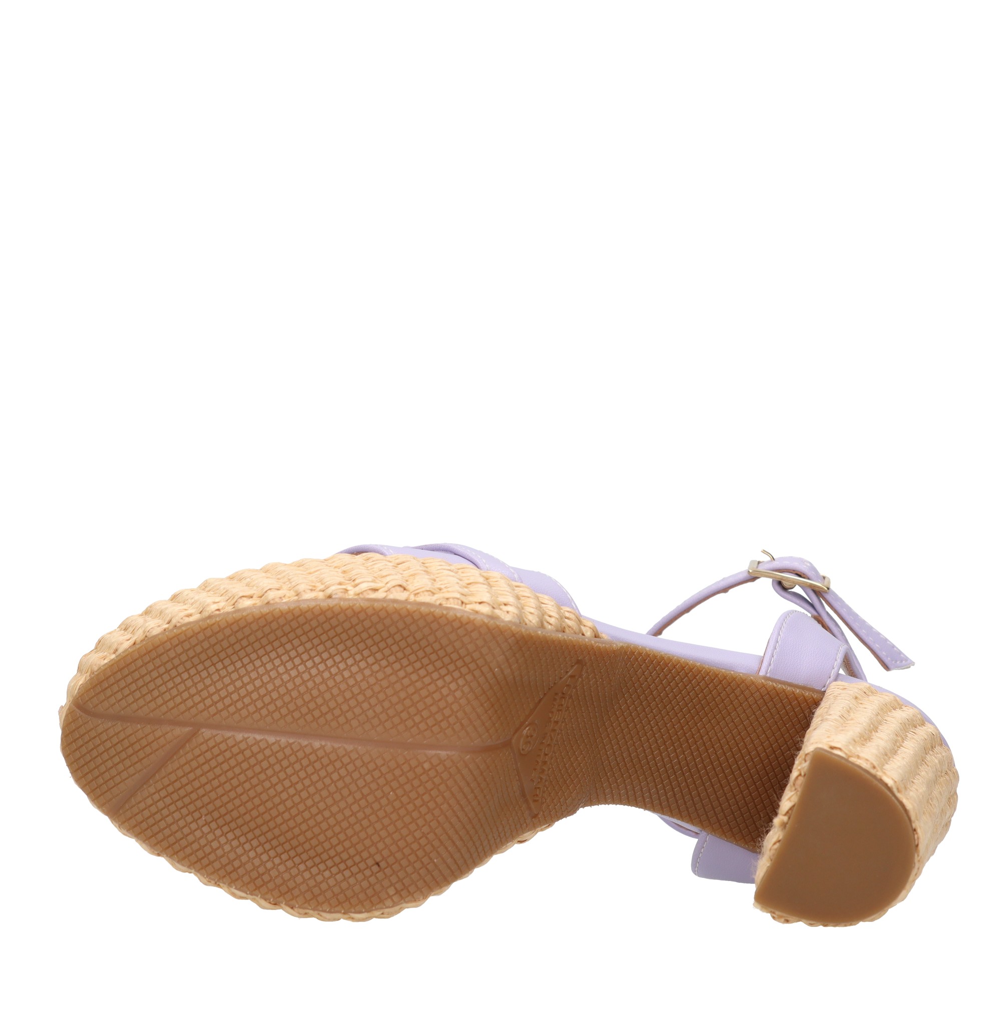 Sandales en simili cuir. Tige en cuir et éco-cuir. Semelle extérieure en matière synthétique. Plateau en raphia 3,5 cm.