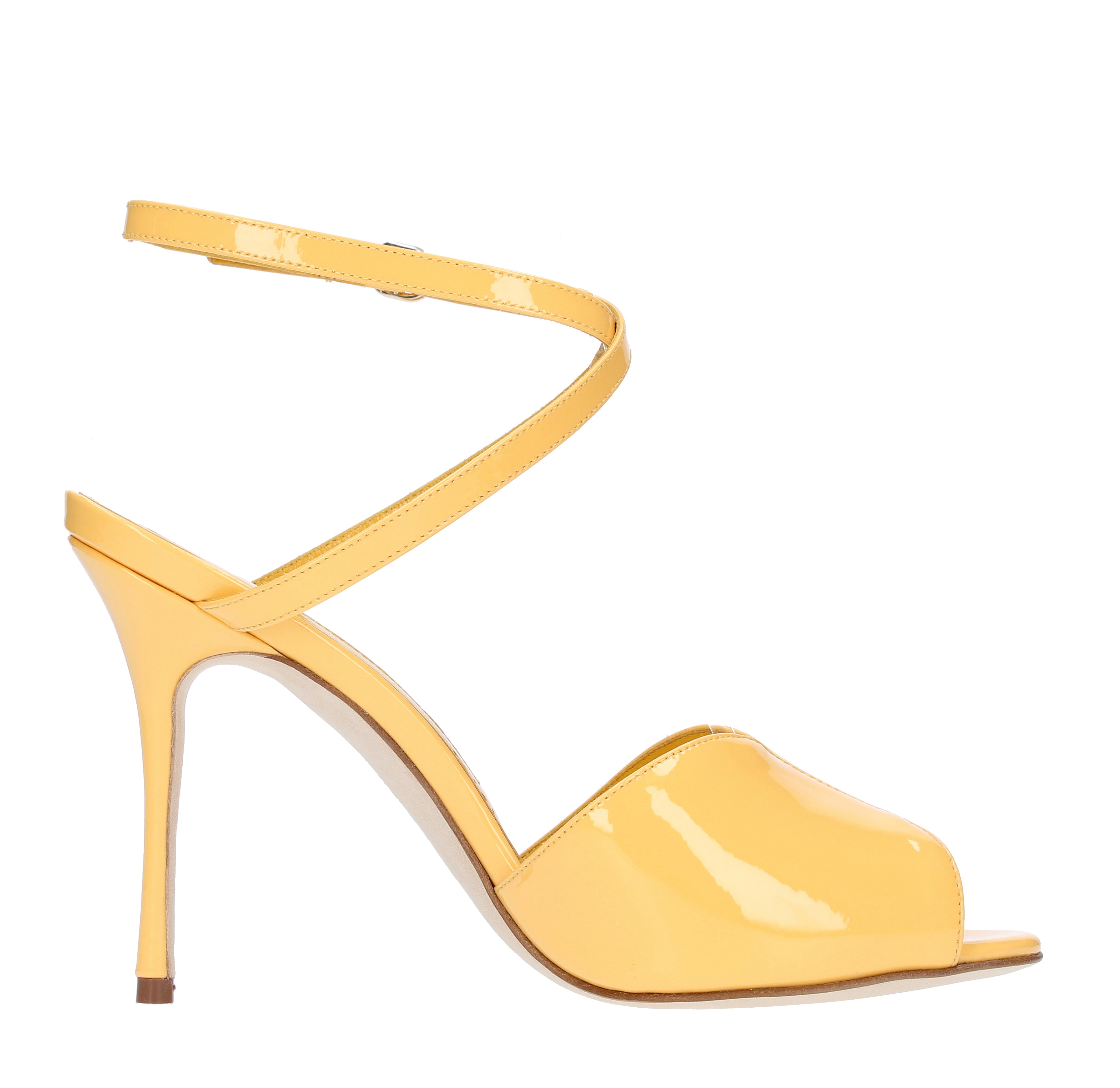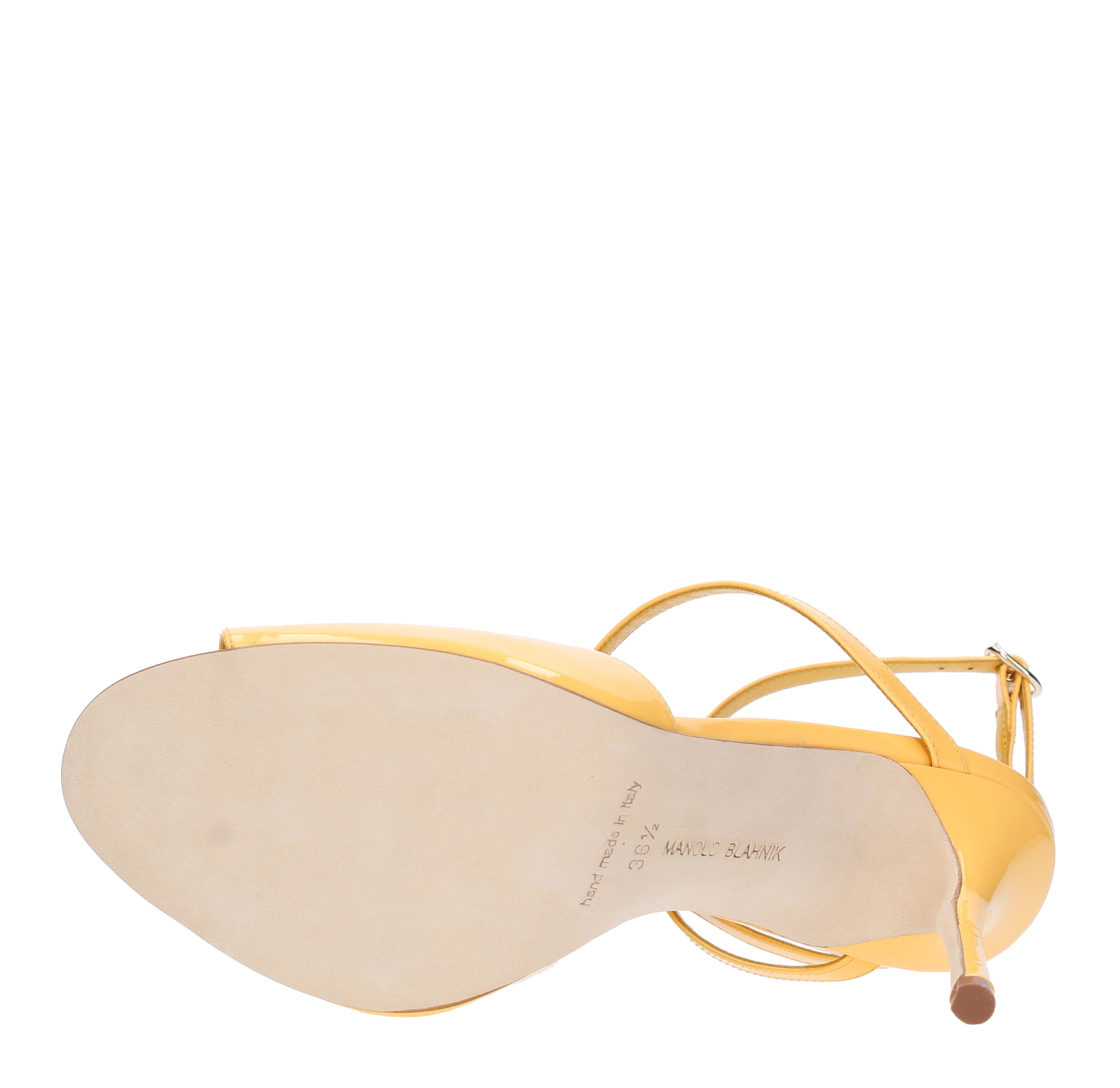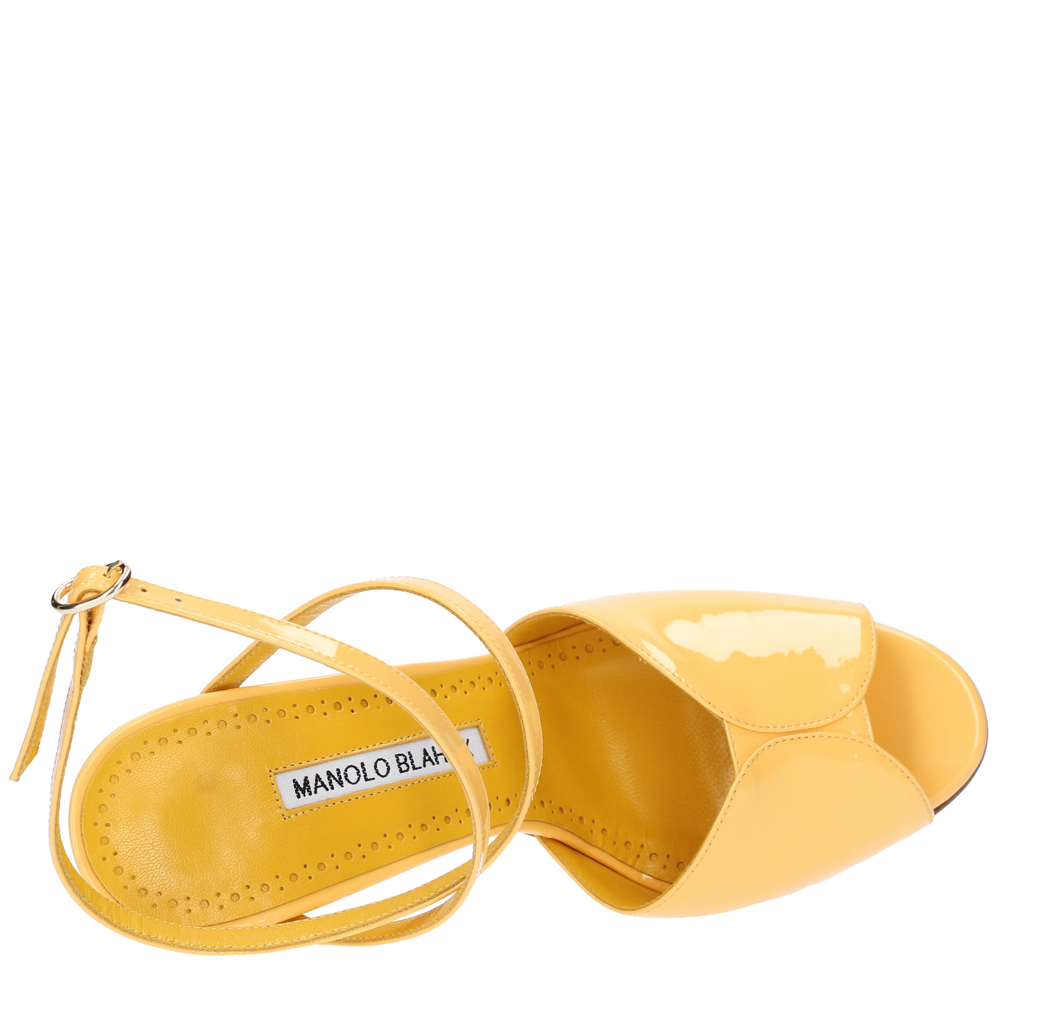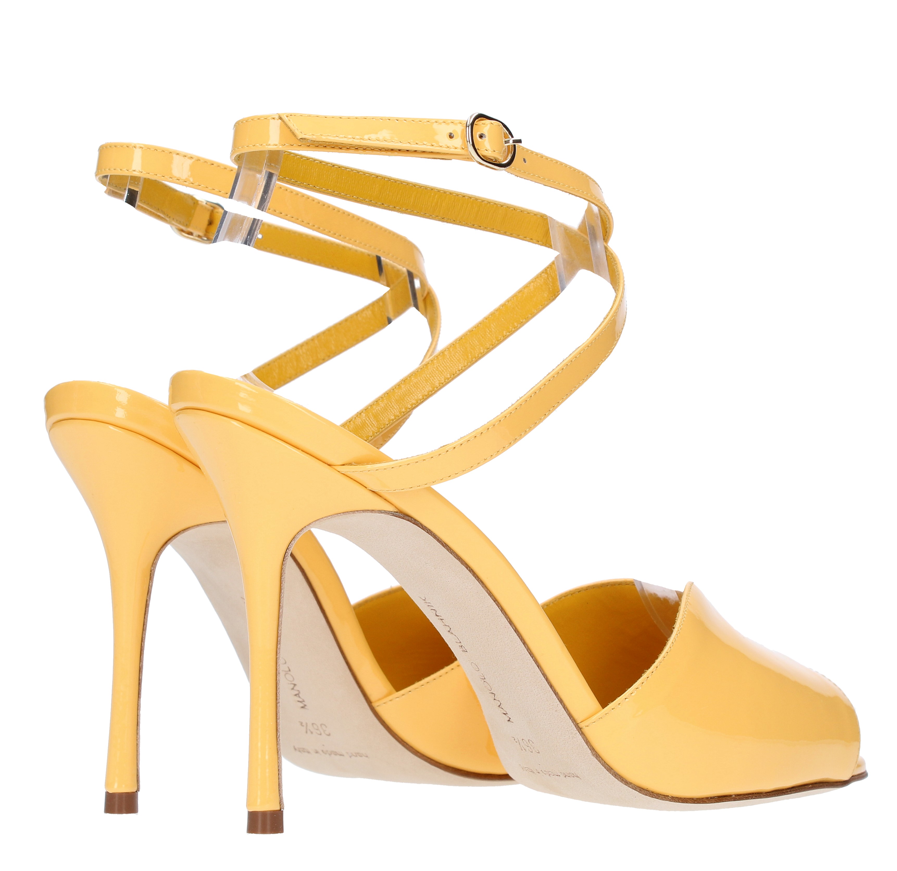 Sandales en cuir verni HOURANI MANOLO BLAHNIK. Semelle extérieure en cuir. Bride avec boucle dorée. Dessus en cuir.