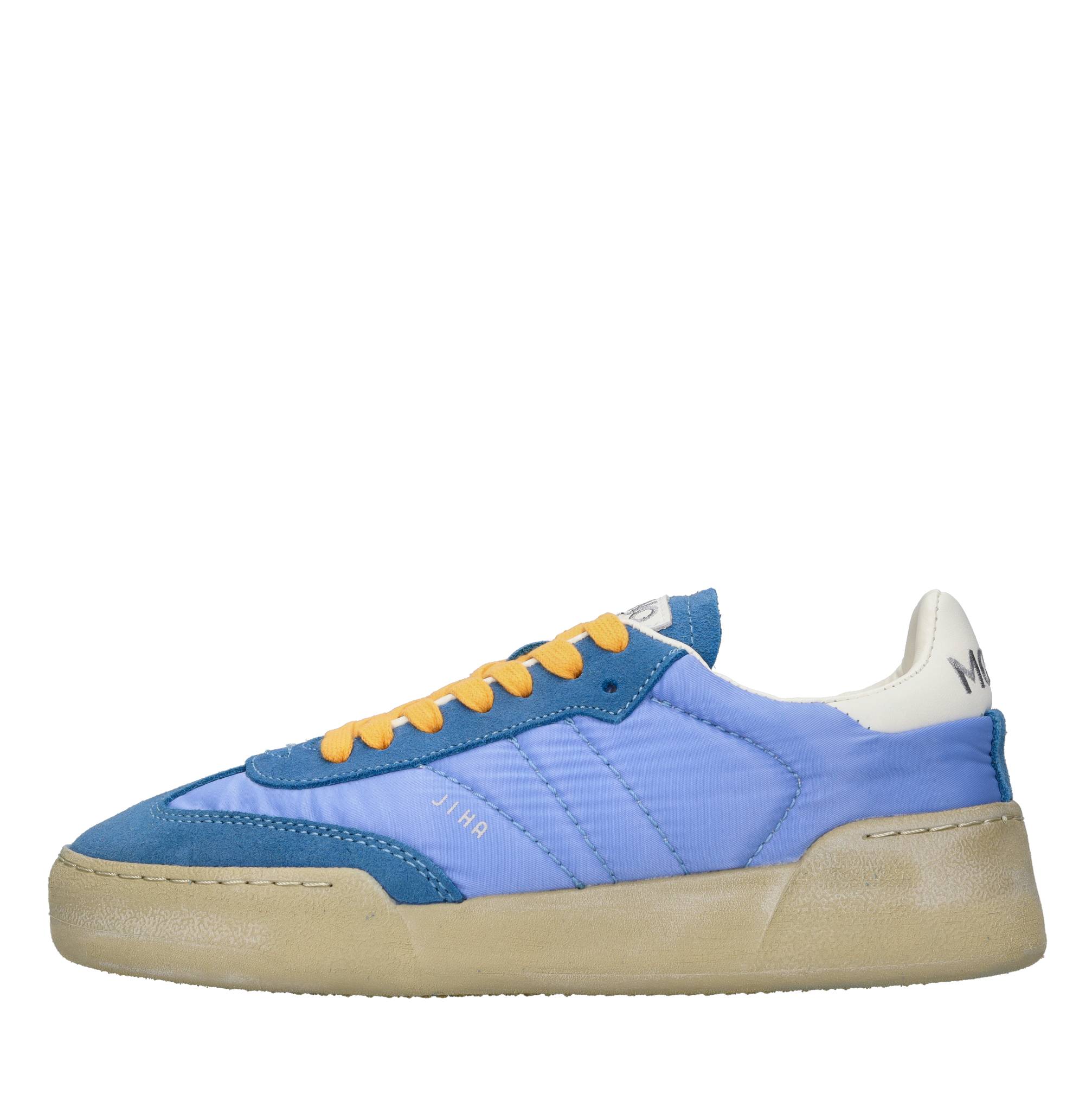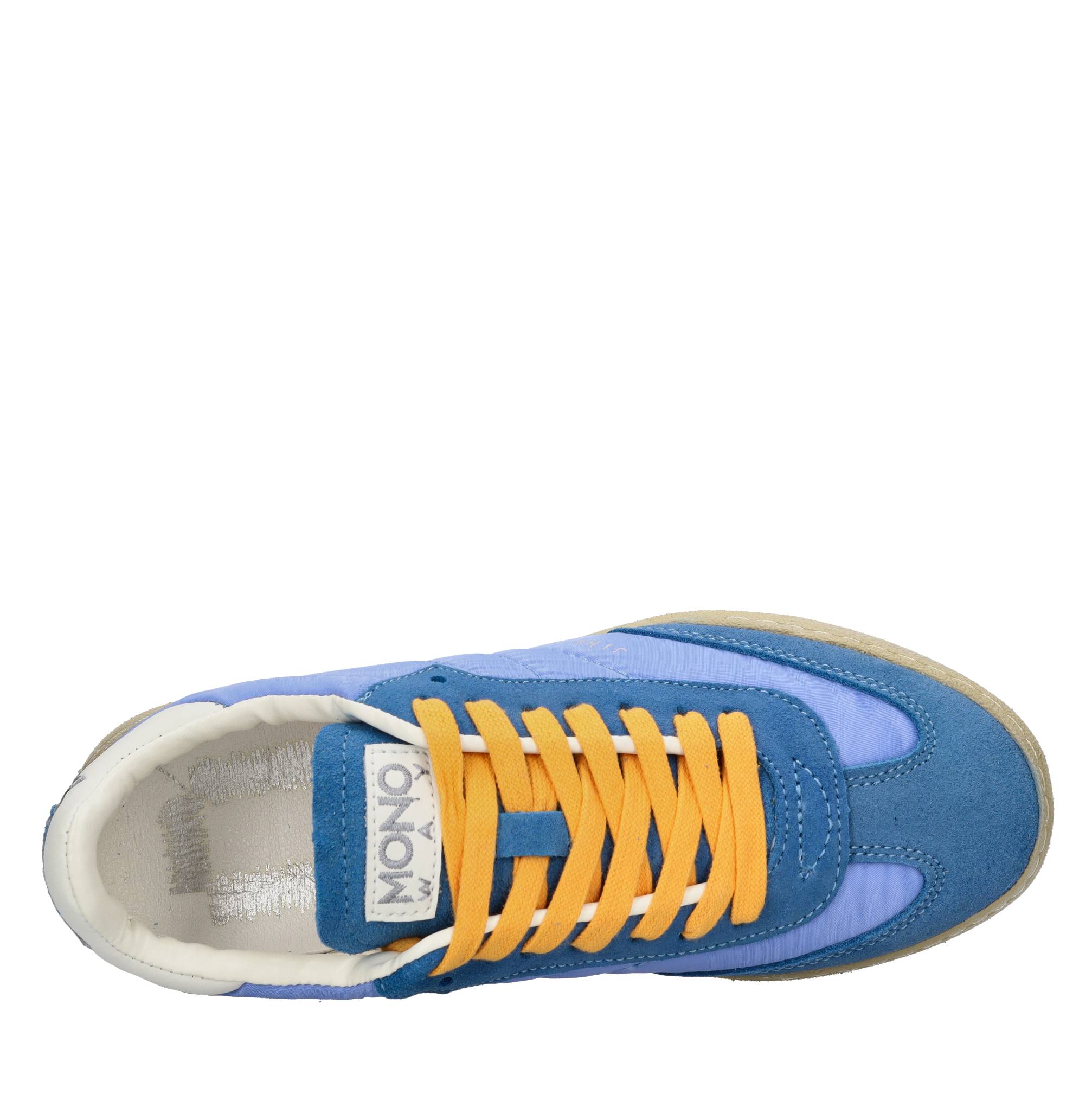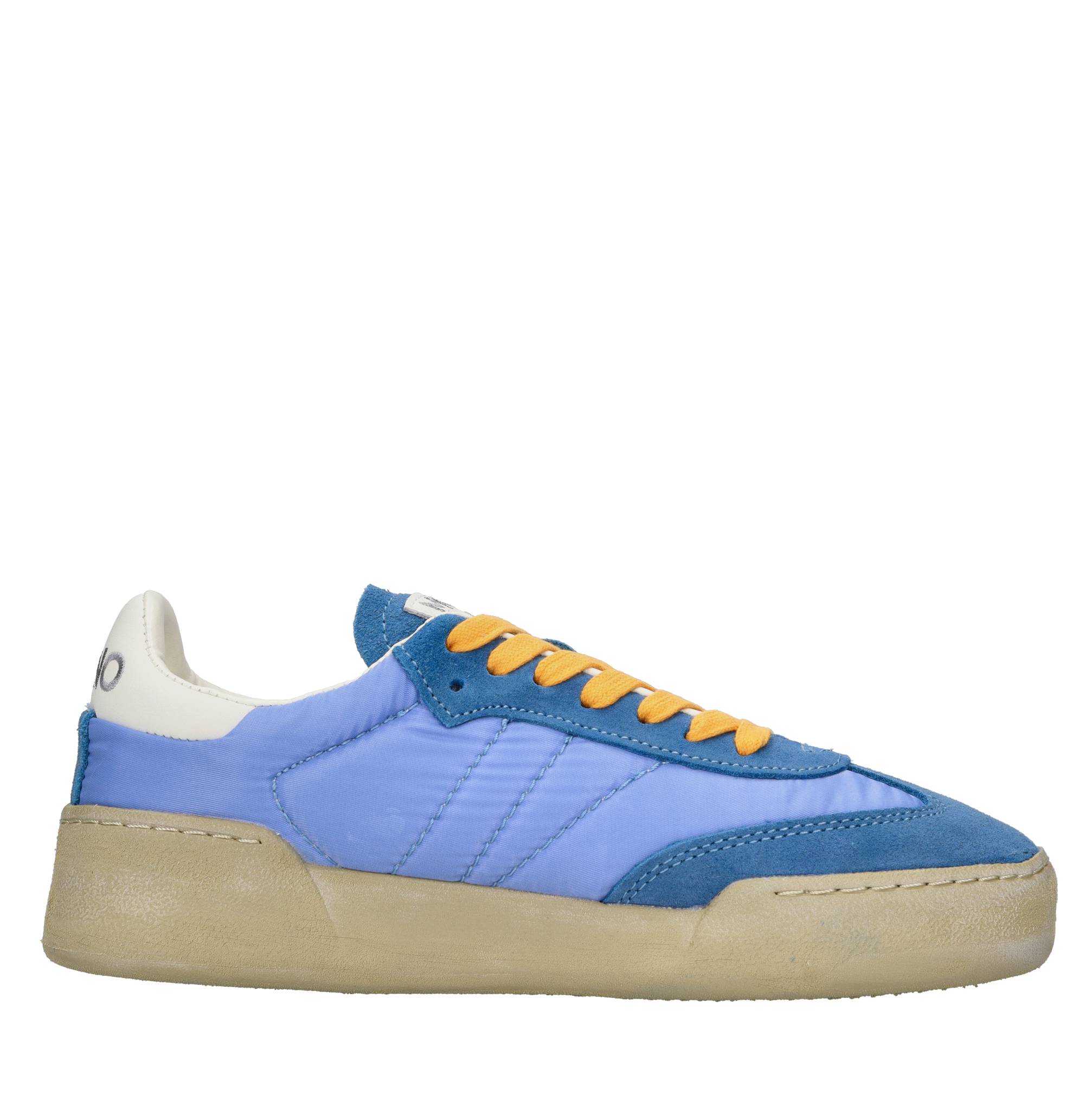 Baskets en cuir et tissu. Fermeture avant avec lacets. Semelle extérieure en caoutchouc. Tige interne en cuir et tissu.