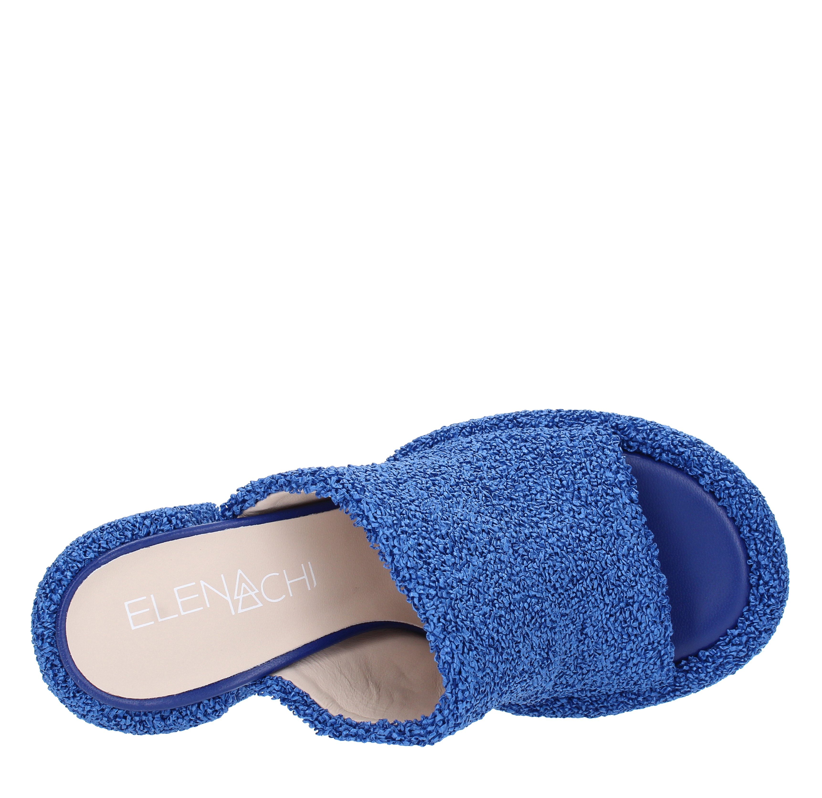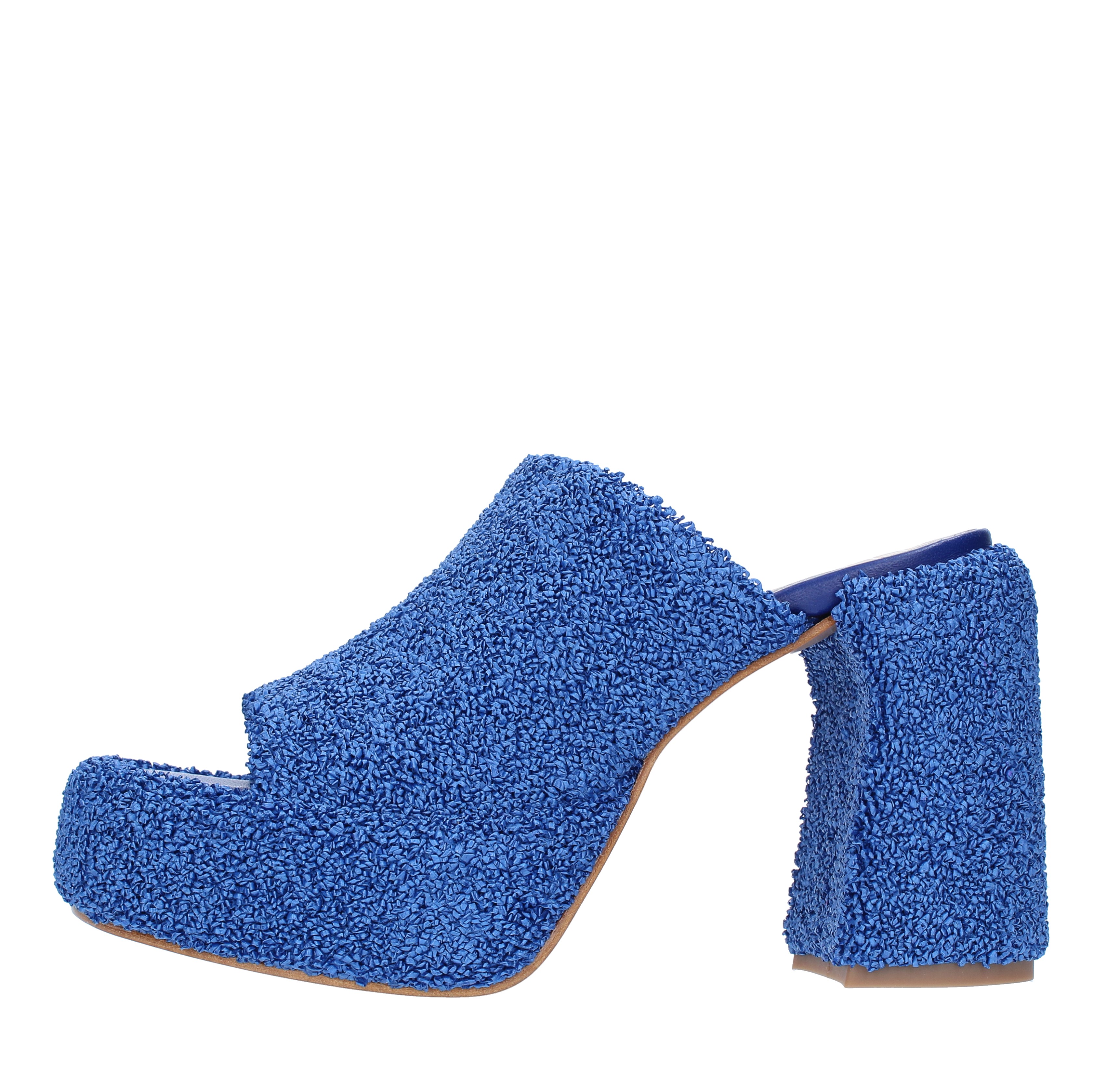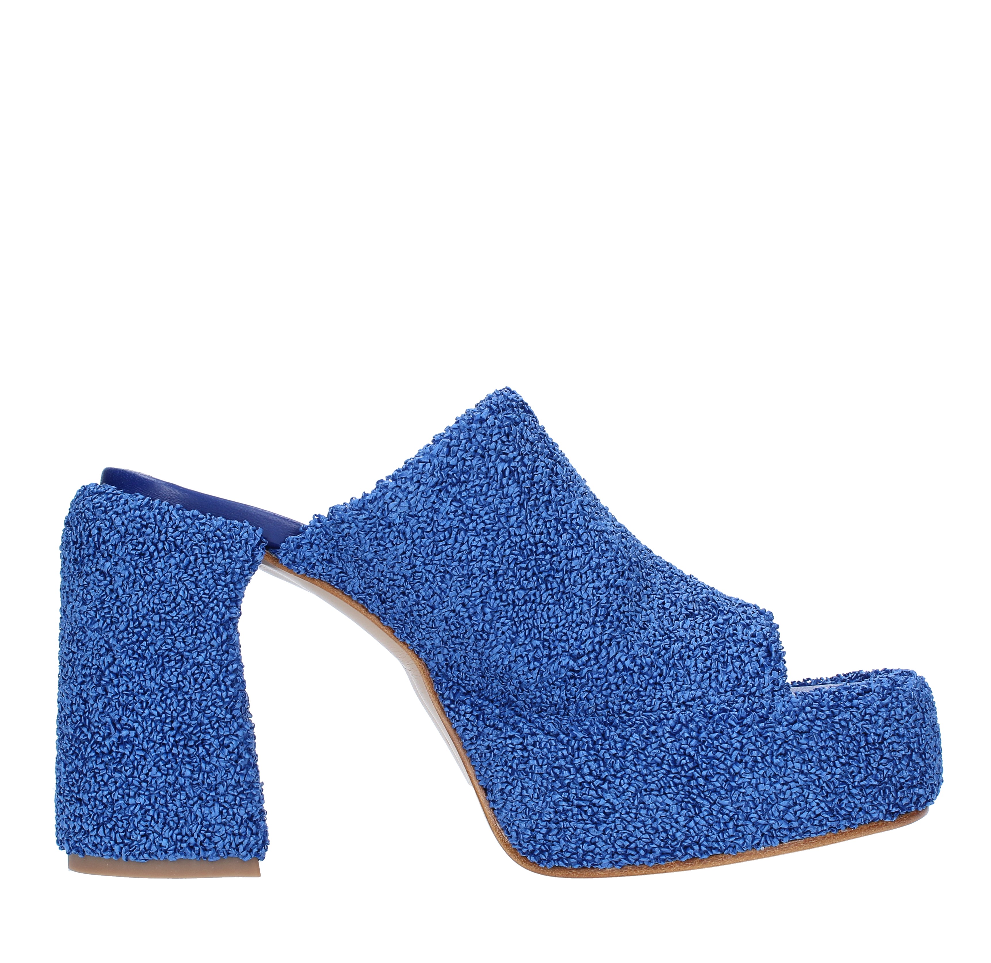 Mules en tissu. Plate-forme de 4 cm. Fond en cuir. Semelle intérieure en cuir.