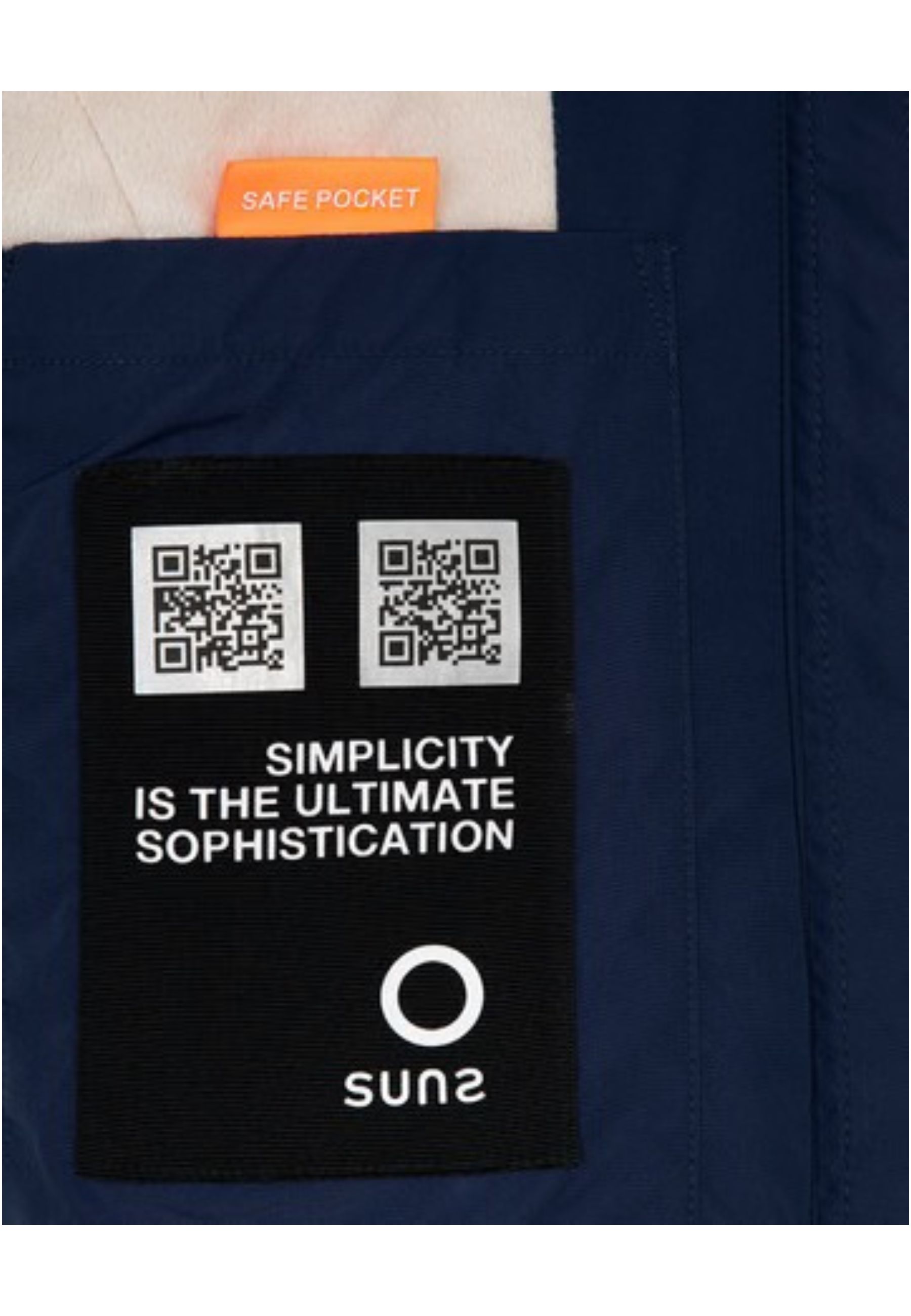 Parka doublé de fourrure synthétique en finition douce et logo Suns chaleur soudée sur la manche gauche. Le vêtement dispose de zip avant, poches latérales avec zip caché et Safe Pocket à l'intérieur. La doublure garantit un maximum de confort même à basse température. Le revêtement extérieur est conçu pour protéger des jours pluvieux et venteux, avec une ligne simple et intemporelle adaptée à chaque occasion.