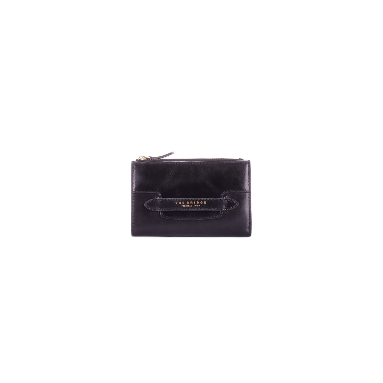 Portefeuille pour femmes The Bridge Logo avant Fermeture à clips Une poche zippée Deux poches de cartes Mesures : 10 x 14 x 1 cm Composition : cuir Code fournisseur : 0179130130