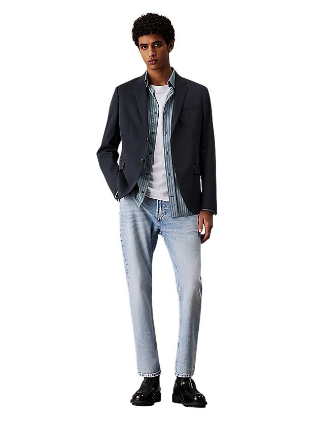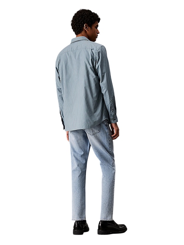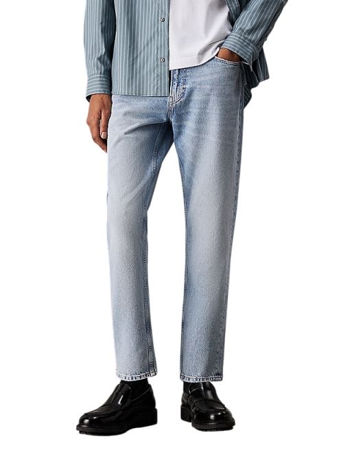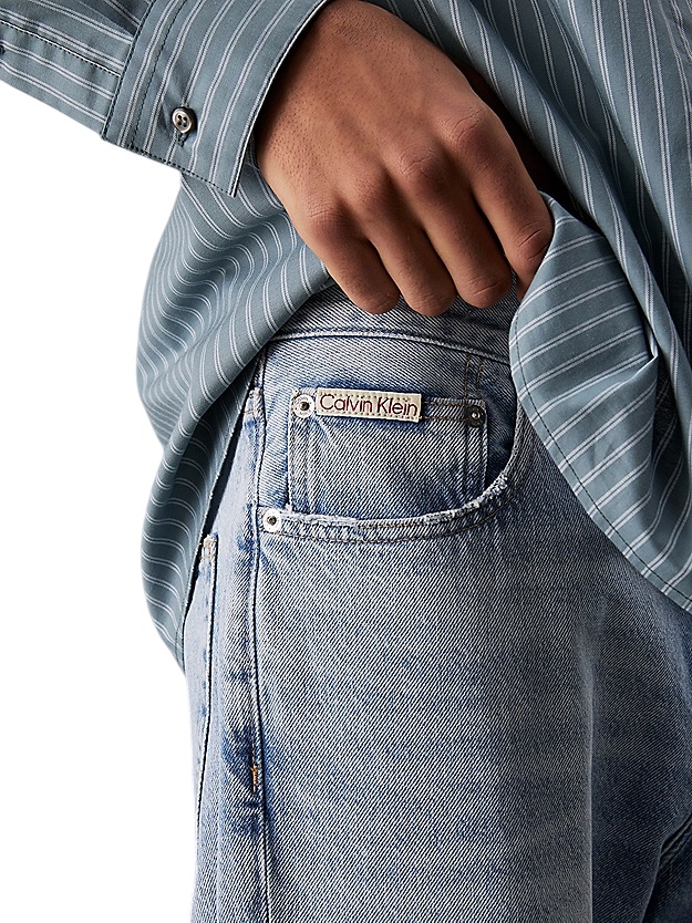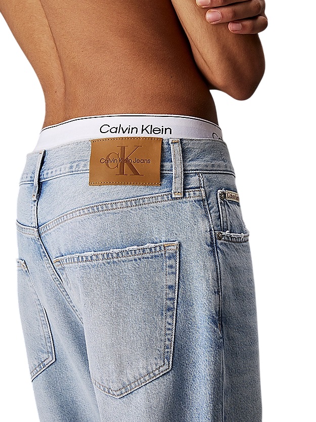 Inspiration fit 90; taille régulière avec jambe détendu coupée et bord légèrement court. Ces jeans sont fabriqués avec 20% de coton recyclé, emballés avec le retraitement des matériaux existants. coupe décontractée en coton dur denim, courte jambe rabattée avec motif zipper cinq poches laver légèrement ruiné sur les poches et rivets bord avec logo Calvin Klein Composition et entretien en cuir : machine à laver 100% coton au tambour sec à basse température pays d'origine : Turquie