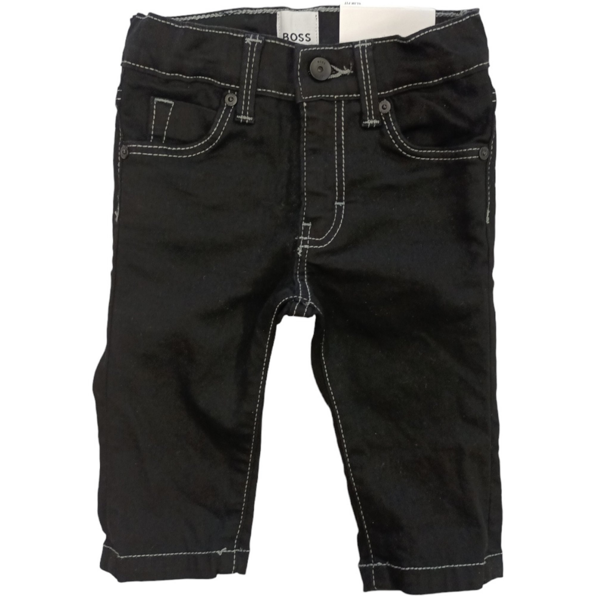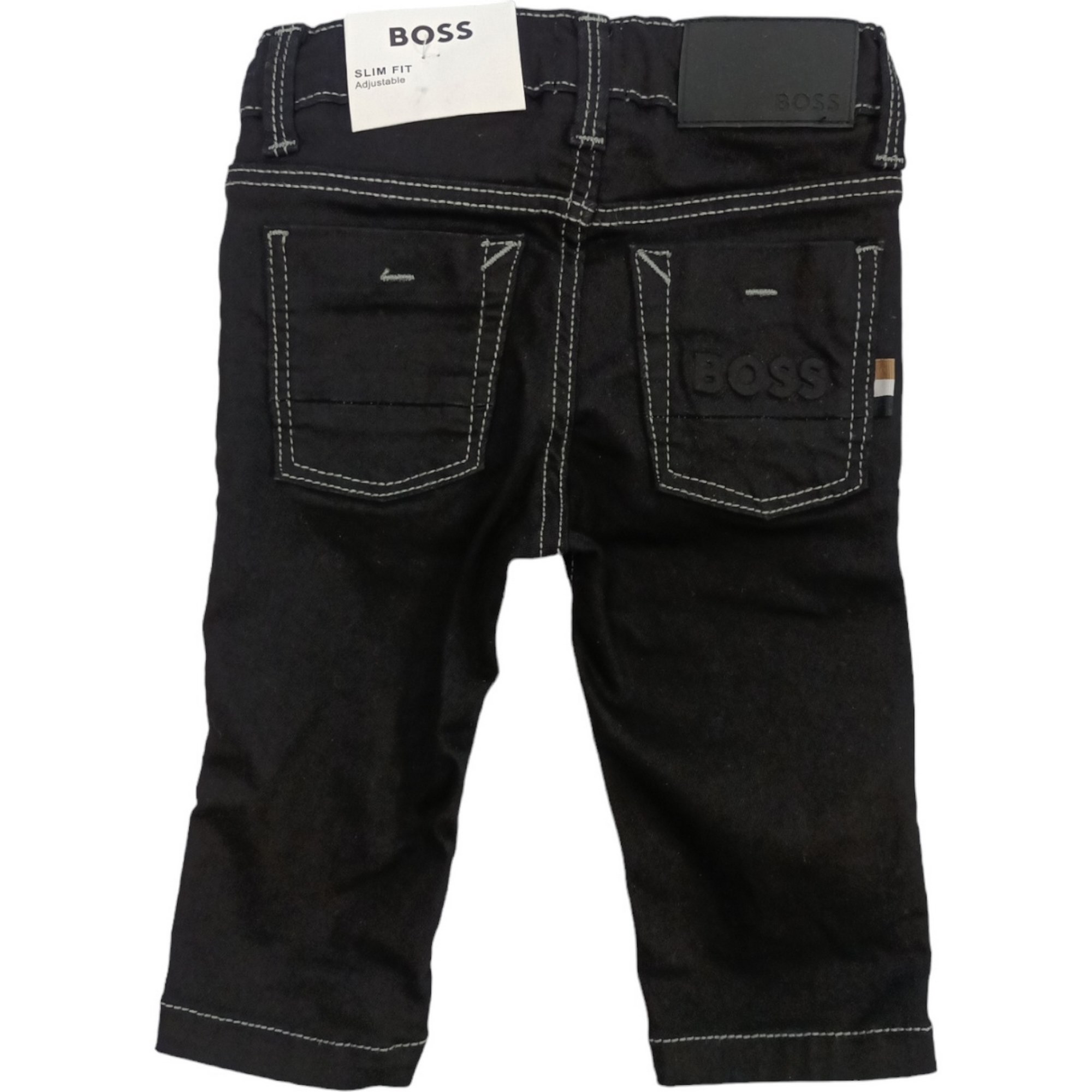 Schwarzer Denim mit Logo Boss hinter der hinteren Tasche.