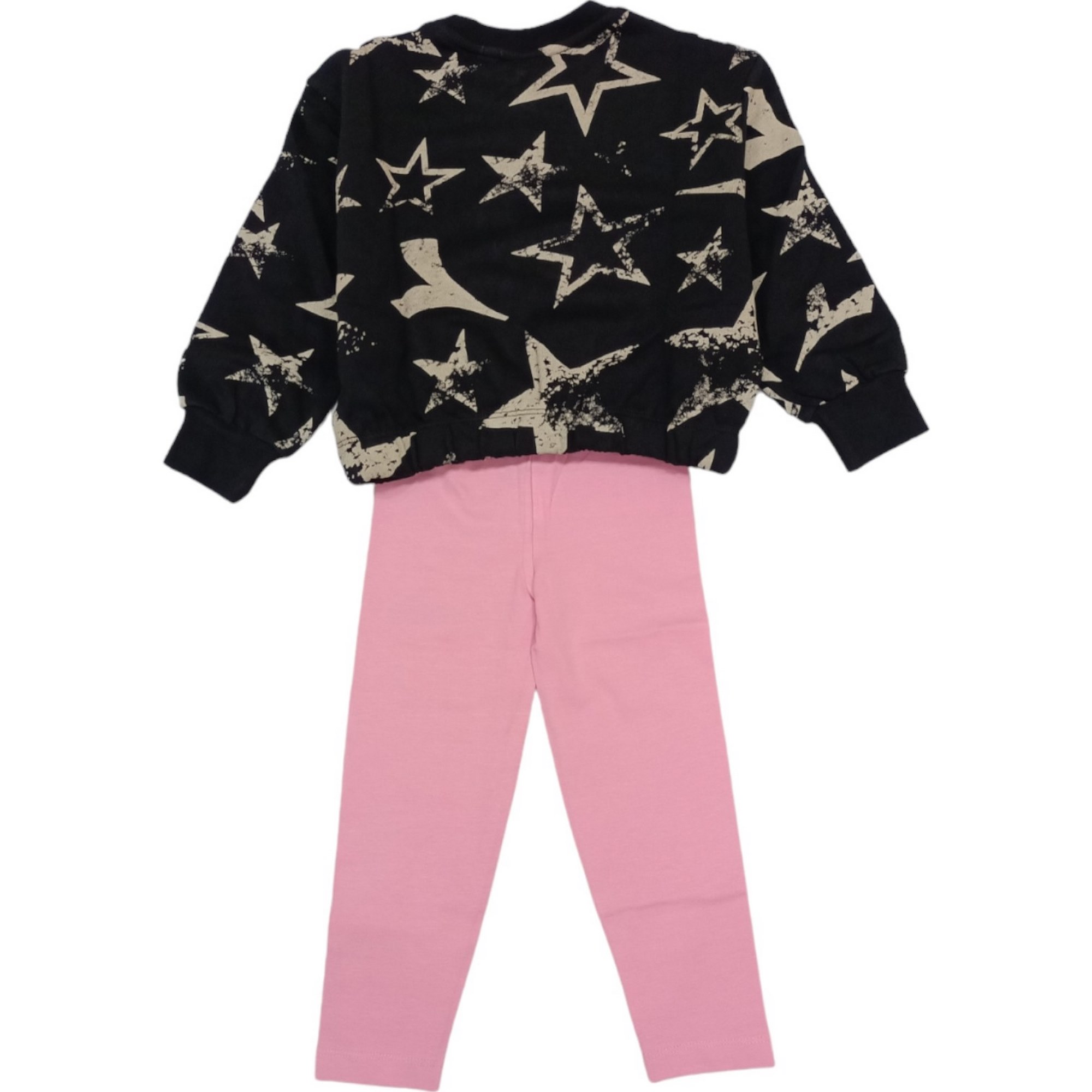 Komplett 2 Stück aus bedrucktem schwarzem Sweatshirt und passenden pinken Leggings.