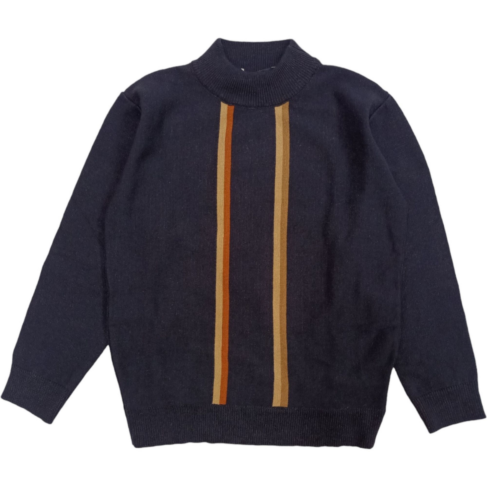 Blauer Lupet Pullover mit beige/braunen vertikalen Streifen