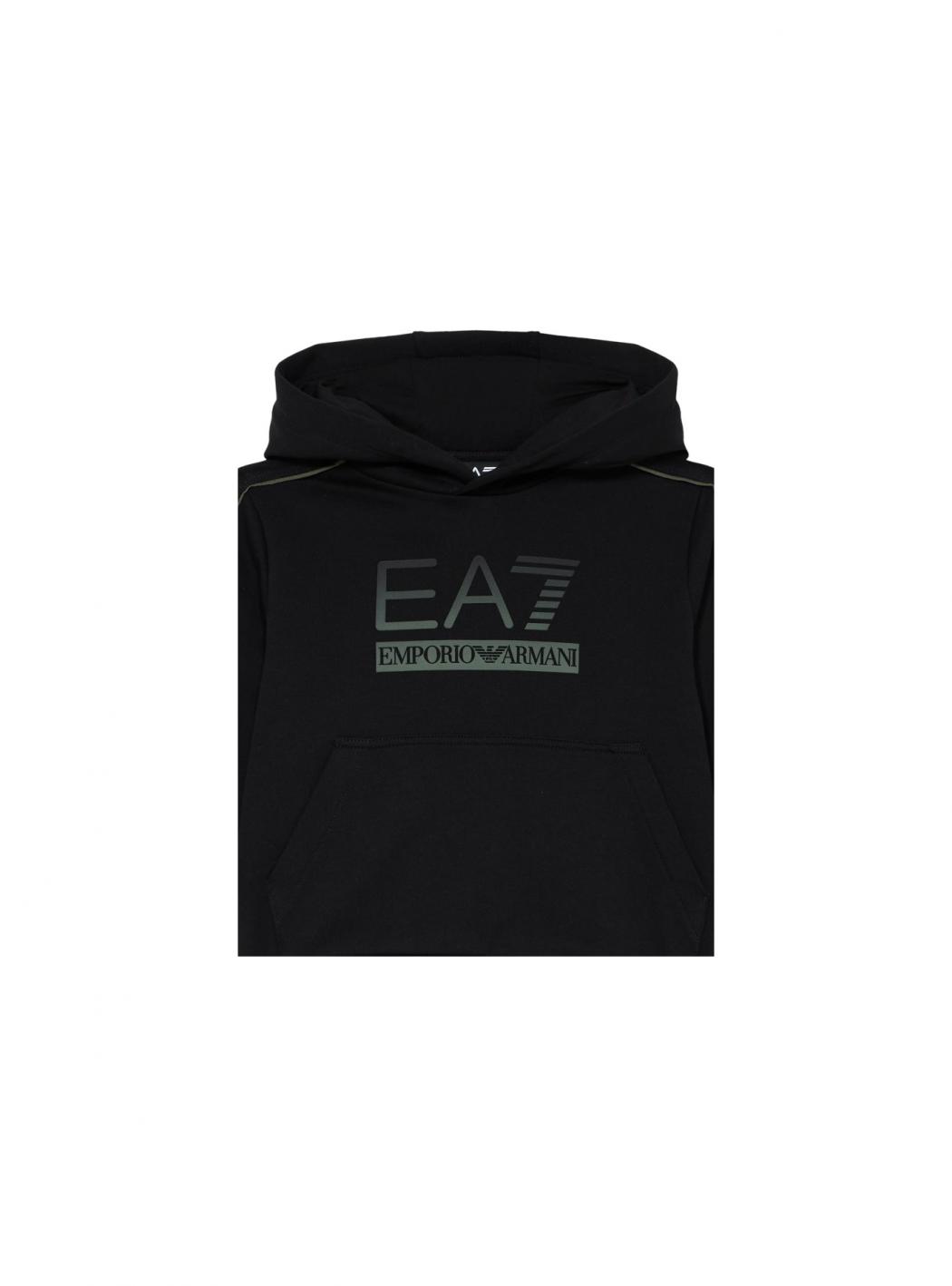 Hoodie aus Baumwolle Mischung und durch das Logo angepasst ea7 Kontrast auf der Brust. Das Modell zeichnet sich durch den lebhaften Druck aus, der Schultern und Ärmel verschönert, indem das Kleidungsstück einen Glanz verleiht. Eine vielseitige Kreation, geeignet für Sport, Freizeit und Schule, kombiniert mit Sweatshirts und Kollektionshosen.