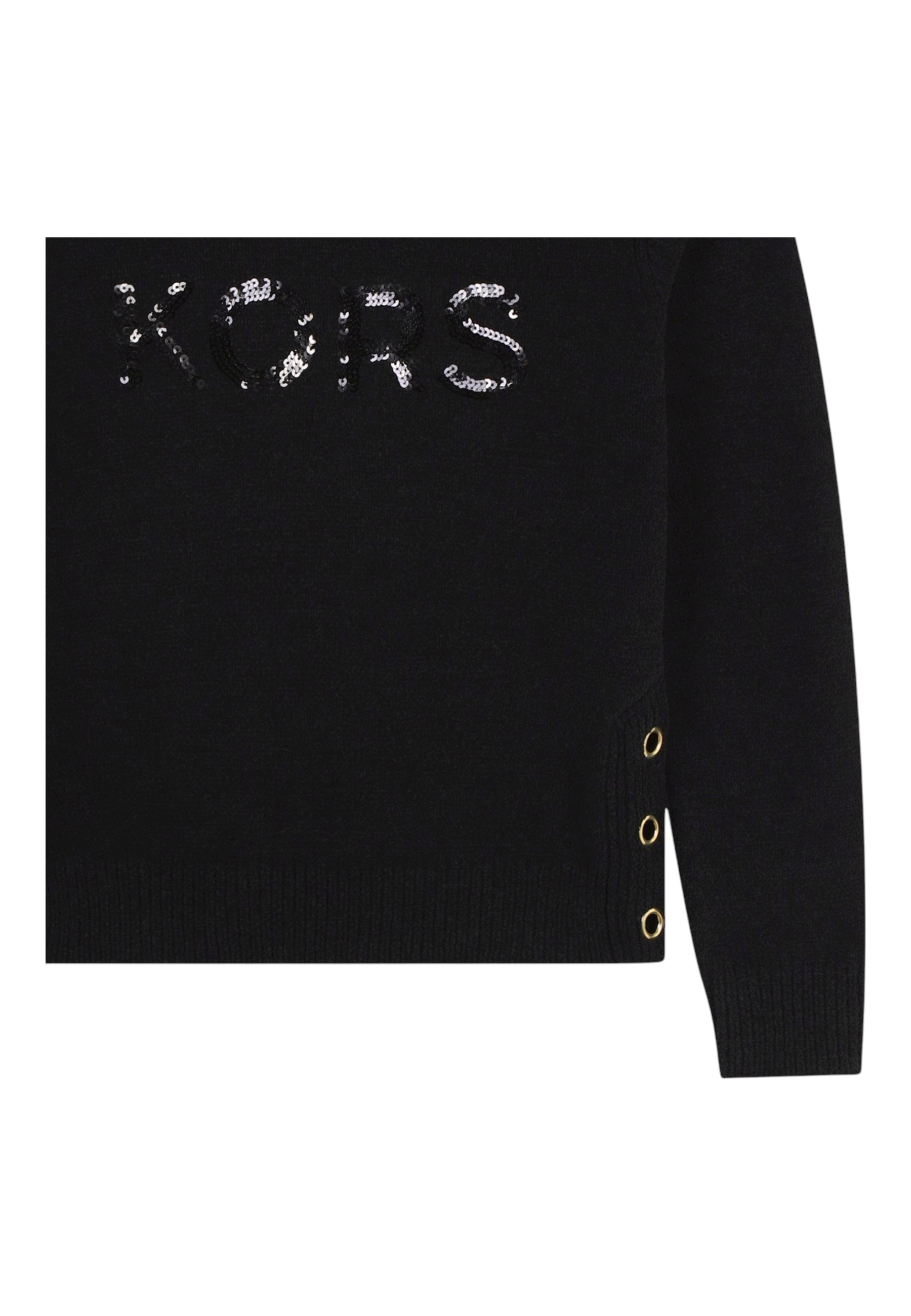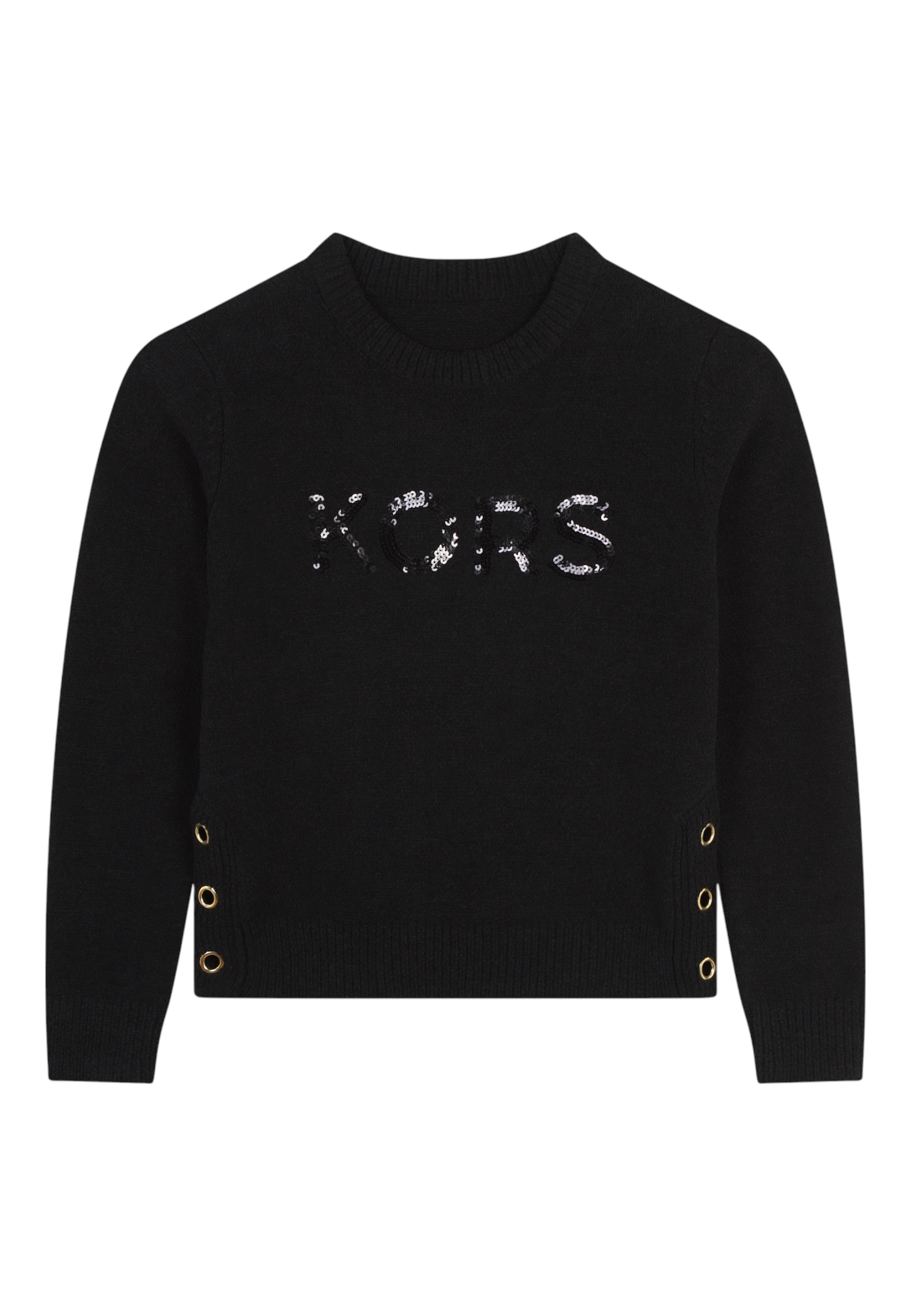 Der Pullover Michael Kors, inspiriert von der erwachsenen Sammlung, ist perfekt für den Alltag. Das bestickte Pailletten-Logo auf dem Ton fügt ein brillantes Detail auf der Brust. Metallösen schmücken seitliche Rippeneinsätze.