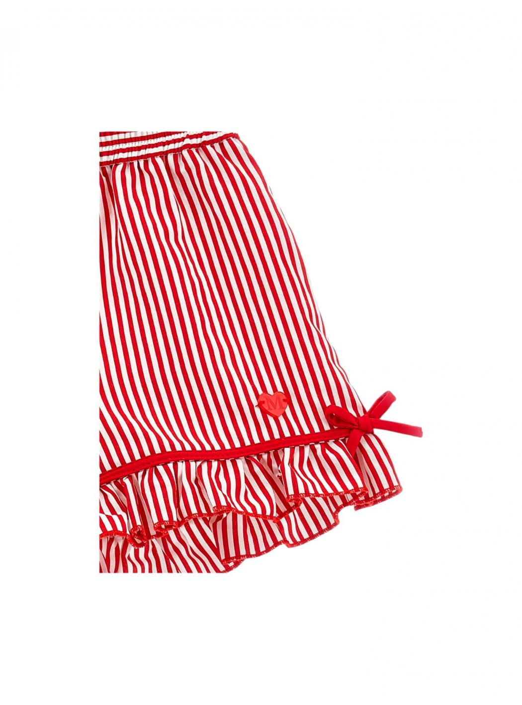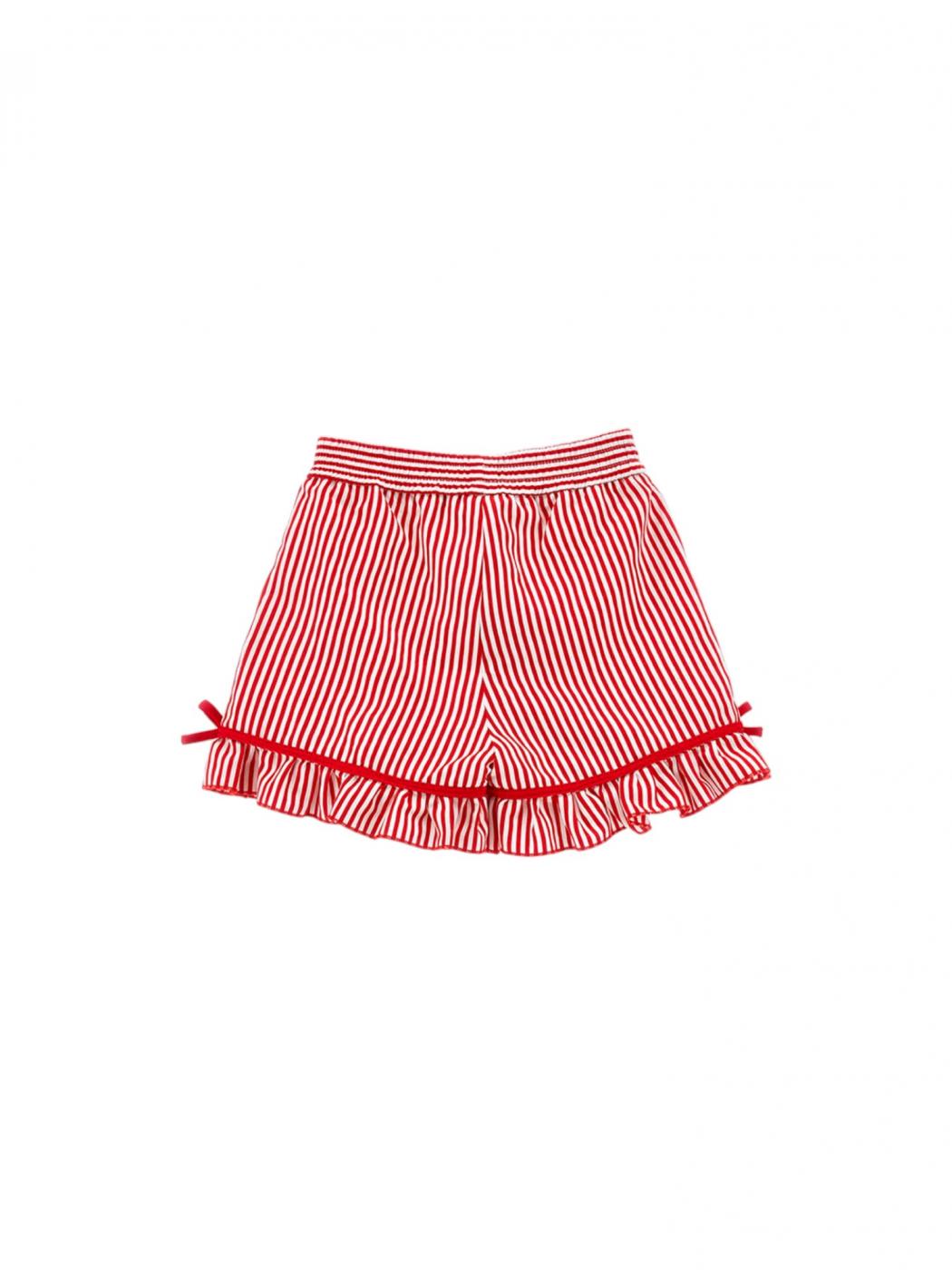 Shorts mit roten und weißen Streifen ideal für den Sommer Look von kleinen Mädchen, in Baumwolle, mit dekorativen Rutschen entlang der Kante, elastische Band im Leben für eine bequeme Passform. Leichter und atmungsaktiver Stoff. Geeignet für Sommertage und Gelegenheiten. Monnalisa