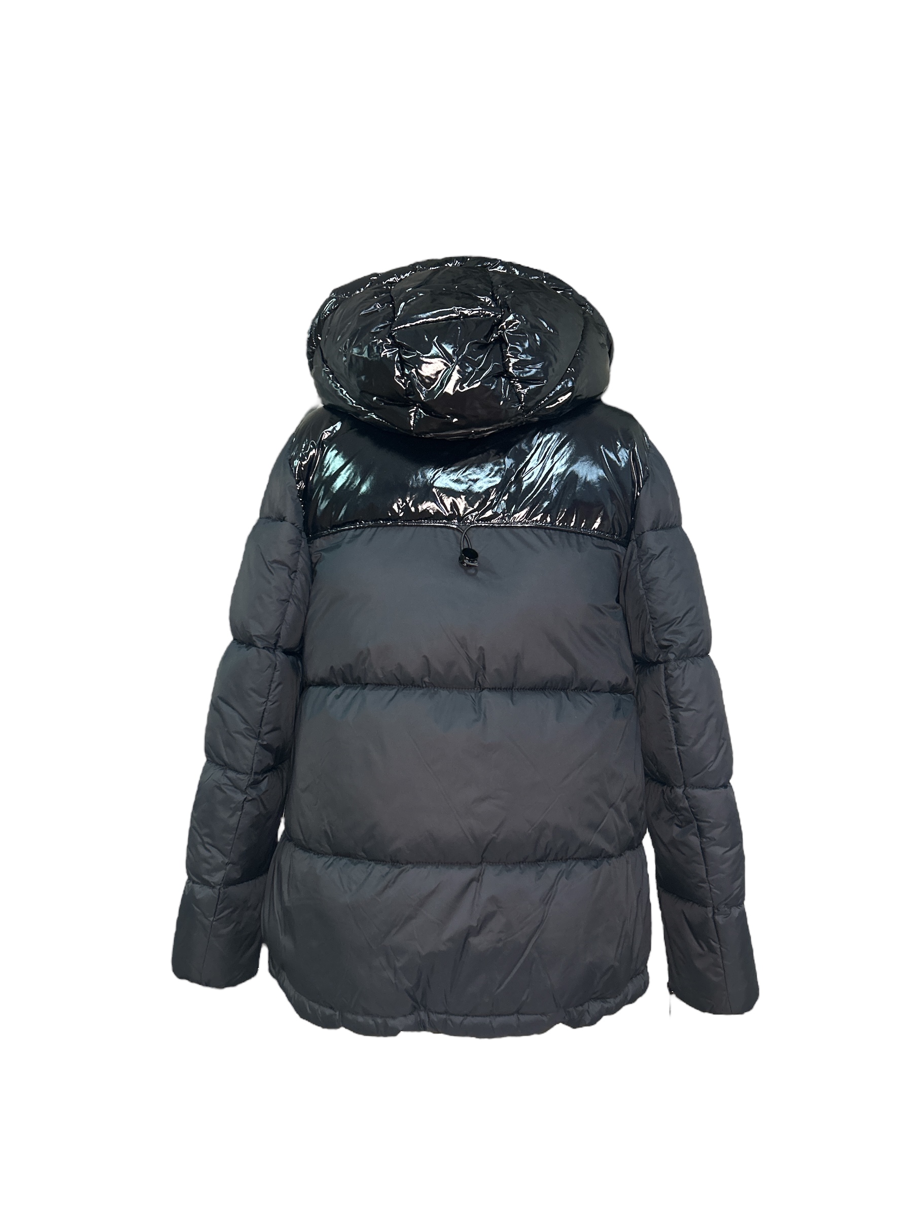 Schwarze Jacke mit Kapuze und seitlichen Reißverschluss Ärmeln
