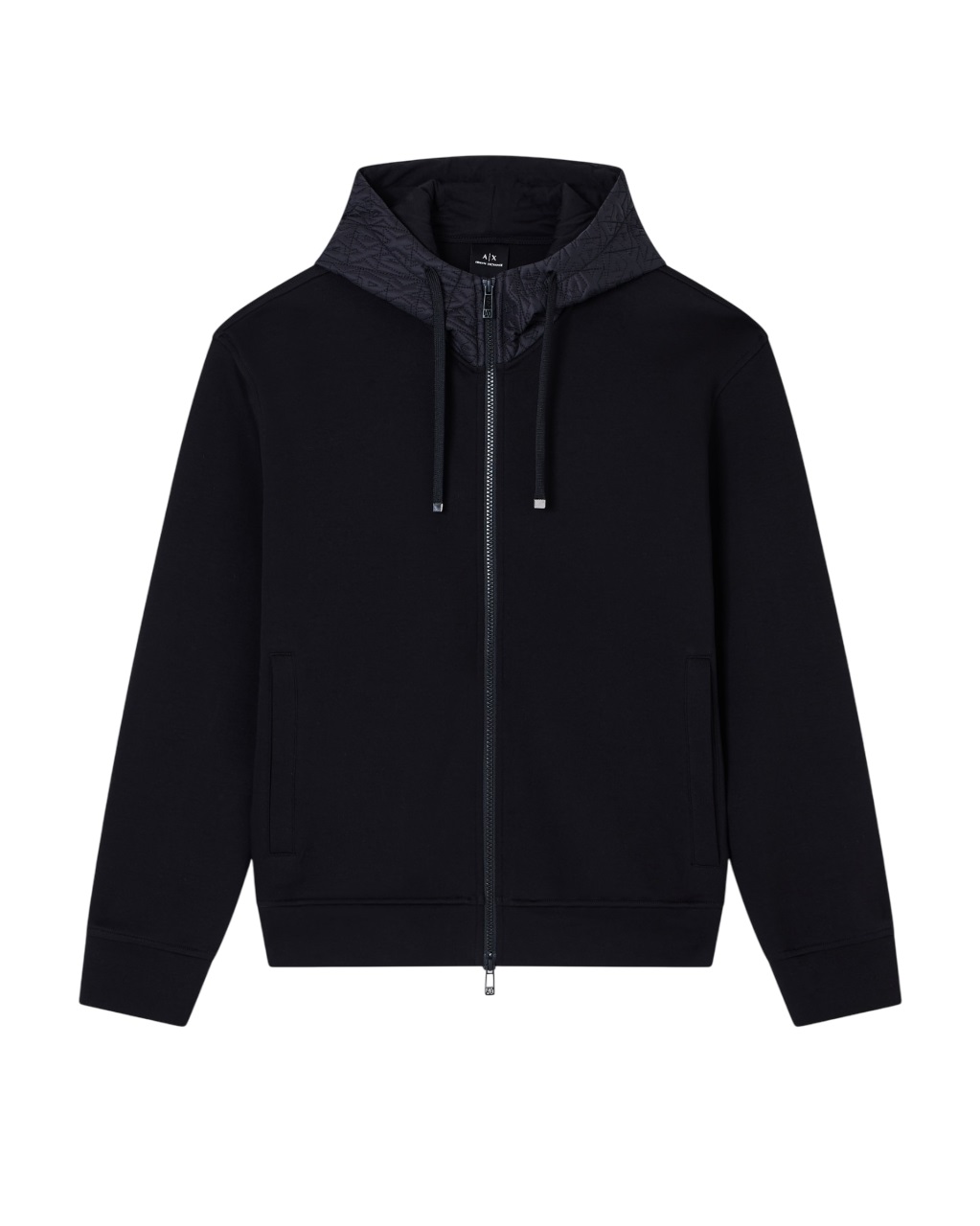 Hoodie verziert mit einem gesteppten technischen Stoffeinsatz, der eine moderne und unverwechselbare Note verleiht. Die Weichheit der Baumwolle garantiert einen umlaufenden Komfort, ideal für frischere Tage oder für einen lässigen und entspannten Look. Die vorderen Reißverschluss- und Funktionstaschen machen es zu einem praktischen und vielseitigen Kleidungsstück. Weniger lesen Hauptgewebe: 79% Baumwolle, 17% Polyester, 4% Elasthan; Sekundärstoff: 100% Polyamid; Kappe Polsterung: 100% Polyester; Kapuze Futter: 100% Baumwolle Kapuze mit Steppeinsatz Front Zip Verschluss Zwei Klappentaschen auf der Vorderseite Manschetten und gerippte Saum