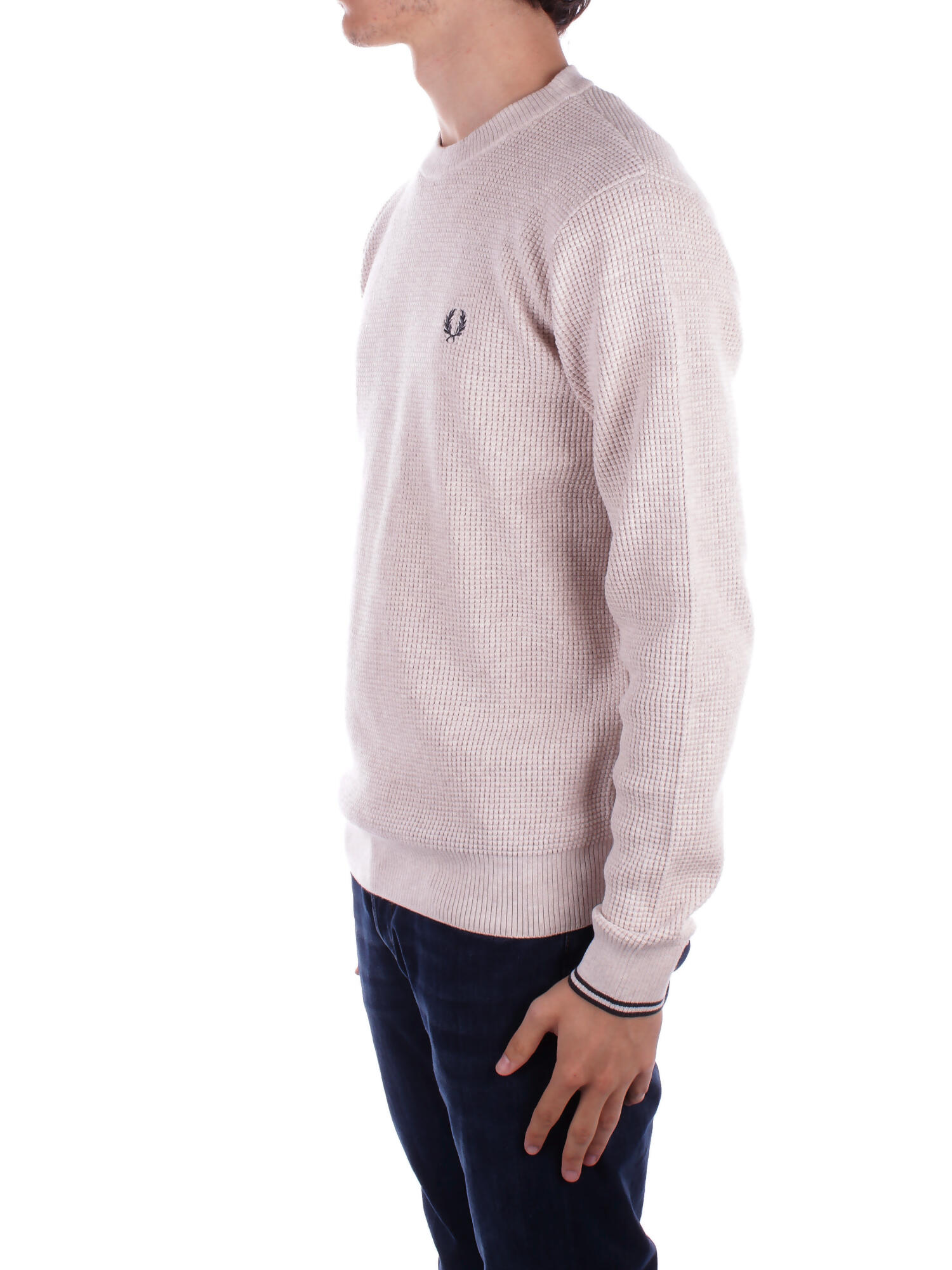 Fred Perry Herrenpullover. Logo vorne Detail am Ärmel. Größe des Modells: 1,83 cm. Getragene Größe: M. Passform: groß. Zusammensetzung: 100 % Baumwolle. Lieferantencode: K6507X23