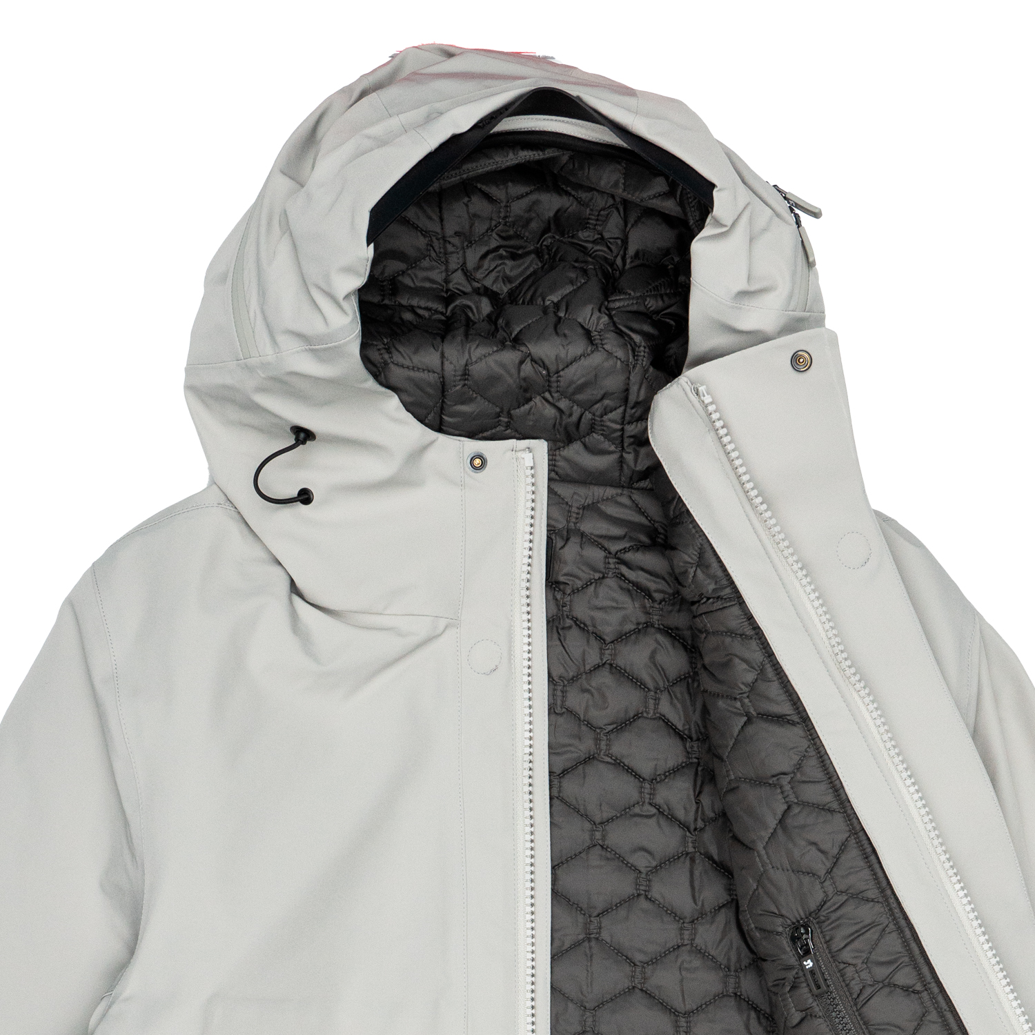 PLANCK wasserdichter Winterpark mit komplett verjüngten Nähten. Es verfügt über seitliche Lüftungsschlitze und einen herausnehmbaren Innenmantel. Ausgestattet mit ökologischer Isolierung aus recycelten Plastikflaschen, um Sie warm zu halten.