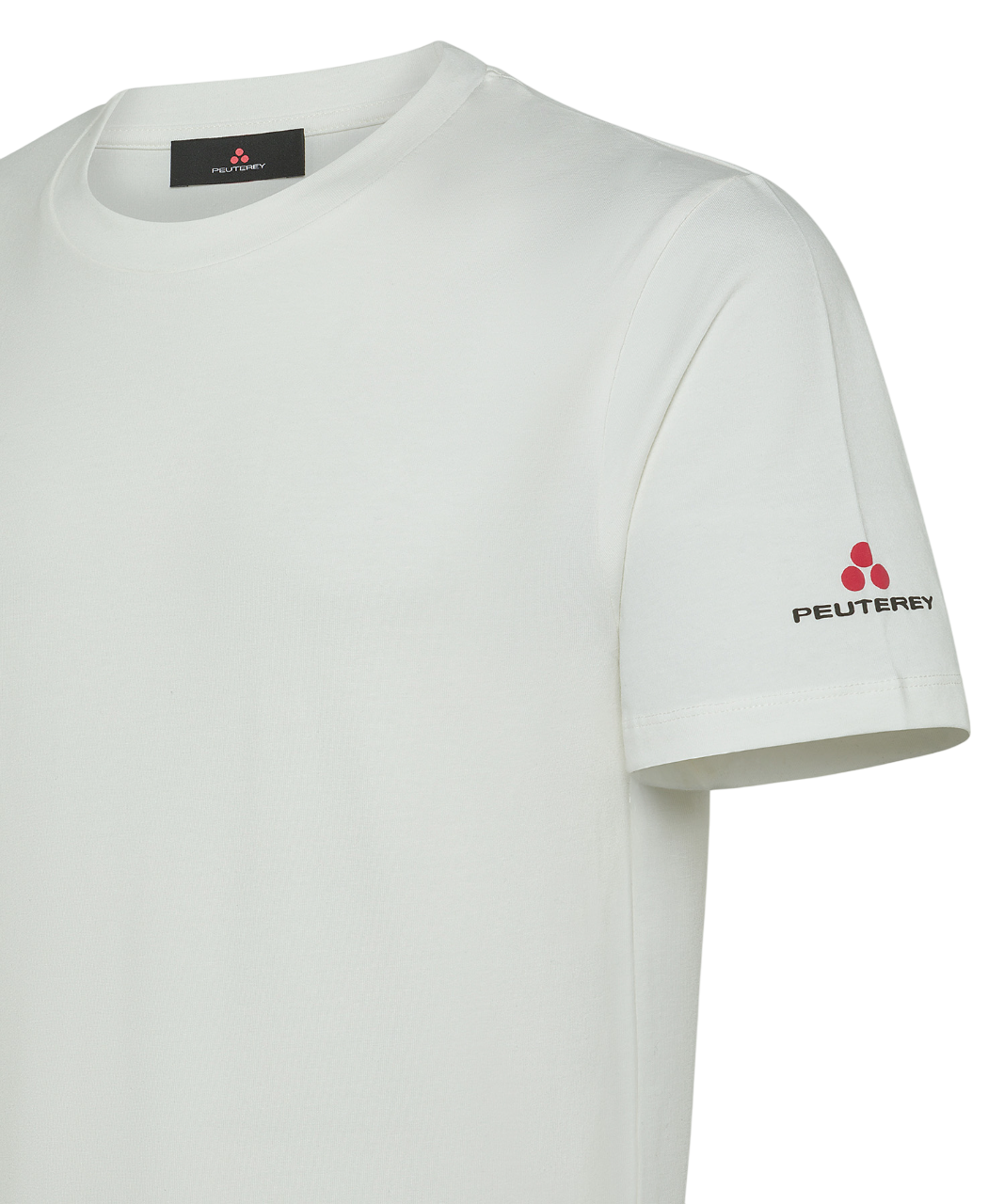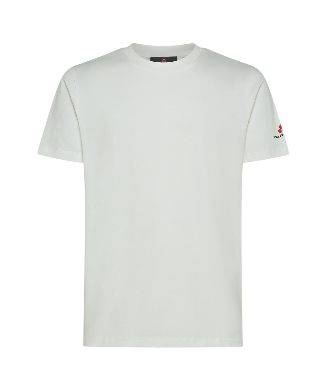 T-Shirt aus Stretch-Baumwoll-Jersey, angereichert durch ein Logo gedruckt in Relief auf der linken Ärmel. Ein wesentliches Kleidungsstück, das hochwertige Materialien kombiniert, um Komfort und Haltbarkeit zu gewährleisten. Dieses Modell ist die Grundlage, auf der jeder Sommergarderobe zu bauen, bietet endlose Möglichkeiten der Anpassung für einen immer aktuellen und raffinierten Look