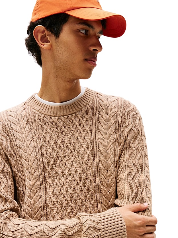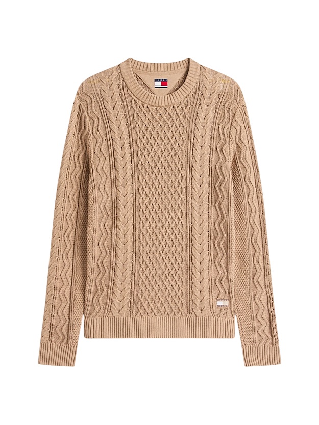 Der Pullover, mit dem klassischen geflochtenen Stricken und schlanken Schnitt, ist ein zeitloses und hochschlagzähes Kleidungsstück. Hauptmerkmale Reine Baumwolle Stricken Crew Neckline, Manschetten und gerippte Unterseite Distinktiv Tommy Ton auf Ton auf der Unterseite Branding Tommy Jeans Modell und Passform Slim fit Unser Modell ist 186 cm groß und kleidet eine Größe M Zusammensetzung und waschen 100% Baumwolle