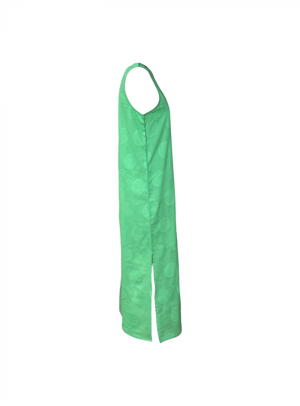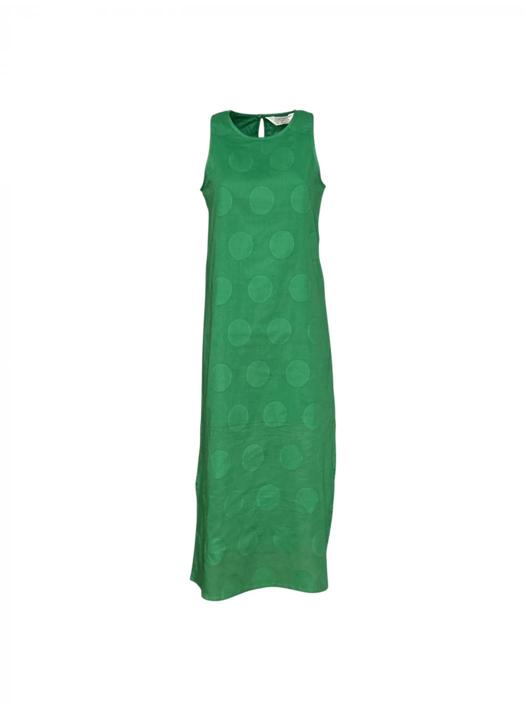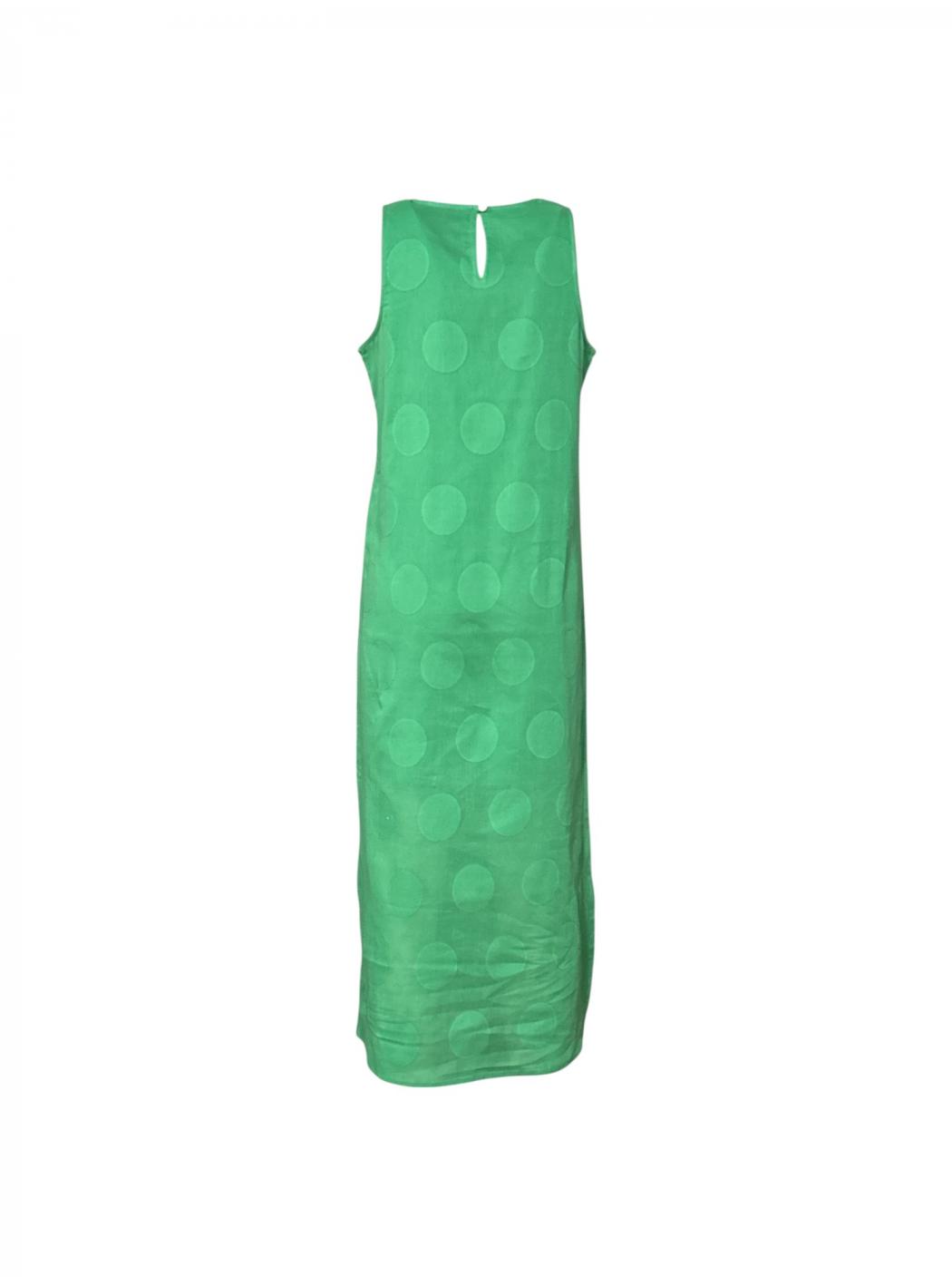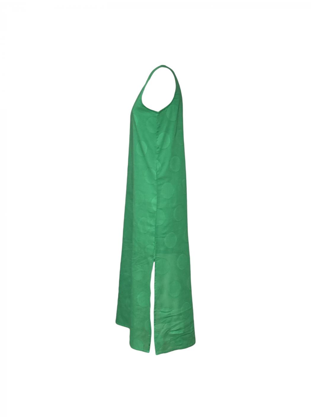 Langes Kleid in Jacquard mit Druck auf grüne Kreise. Mit rundem Ausschnitt und ärmellos. Gerade geschnittenes Muster mit Seitenschlitzen. Zurück Verschluss mit Öffnung und Knopf.