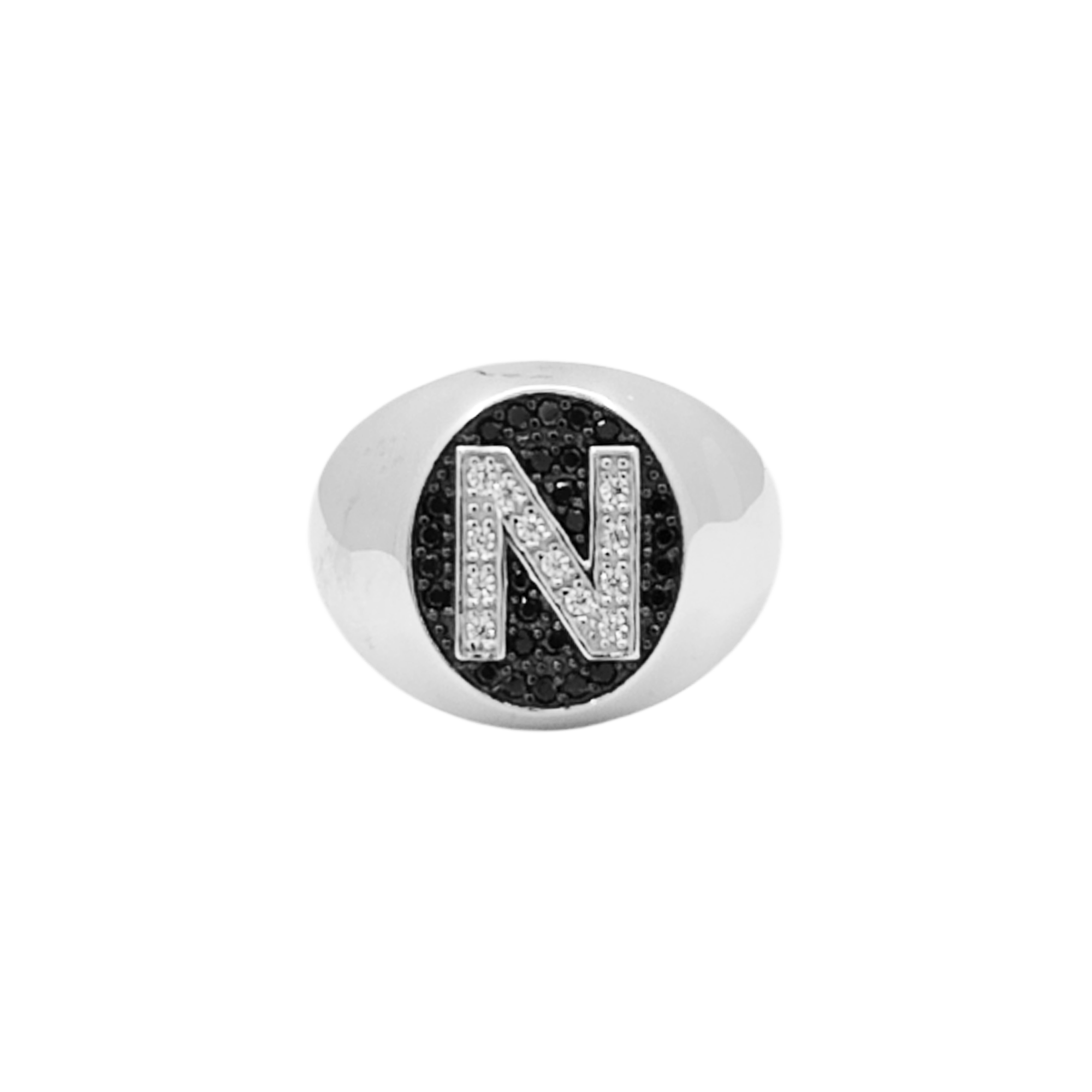 Silber Ring 925% Chavalier Modell mit schwarzem Zirkonia und Buchstabe N in weiß Zirkonia