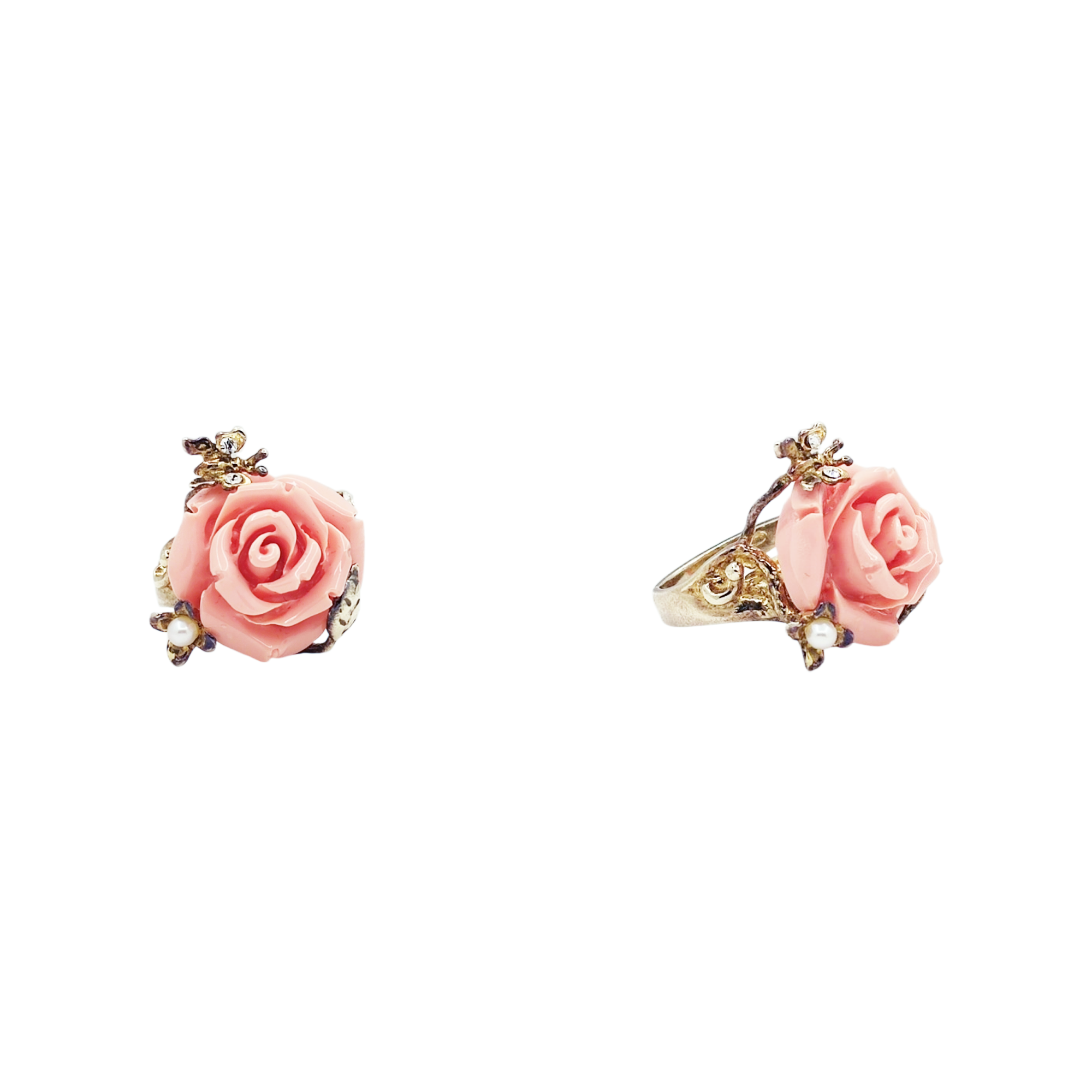 Silber Ring 925% Golden mit Rose In Türkis Pasta und Weiß Zirkonia.
