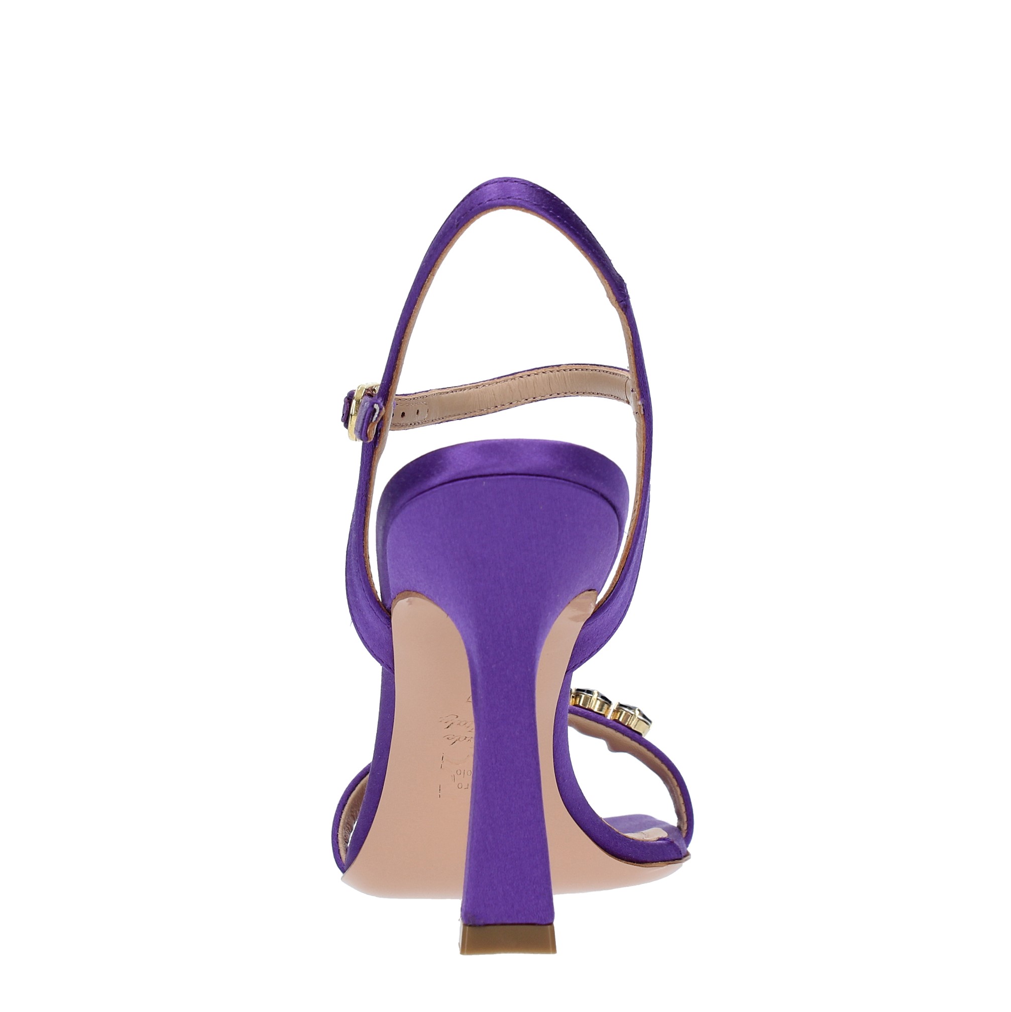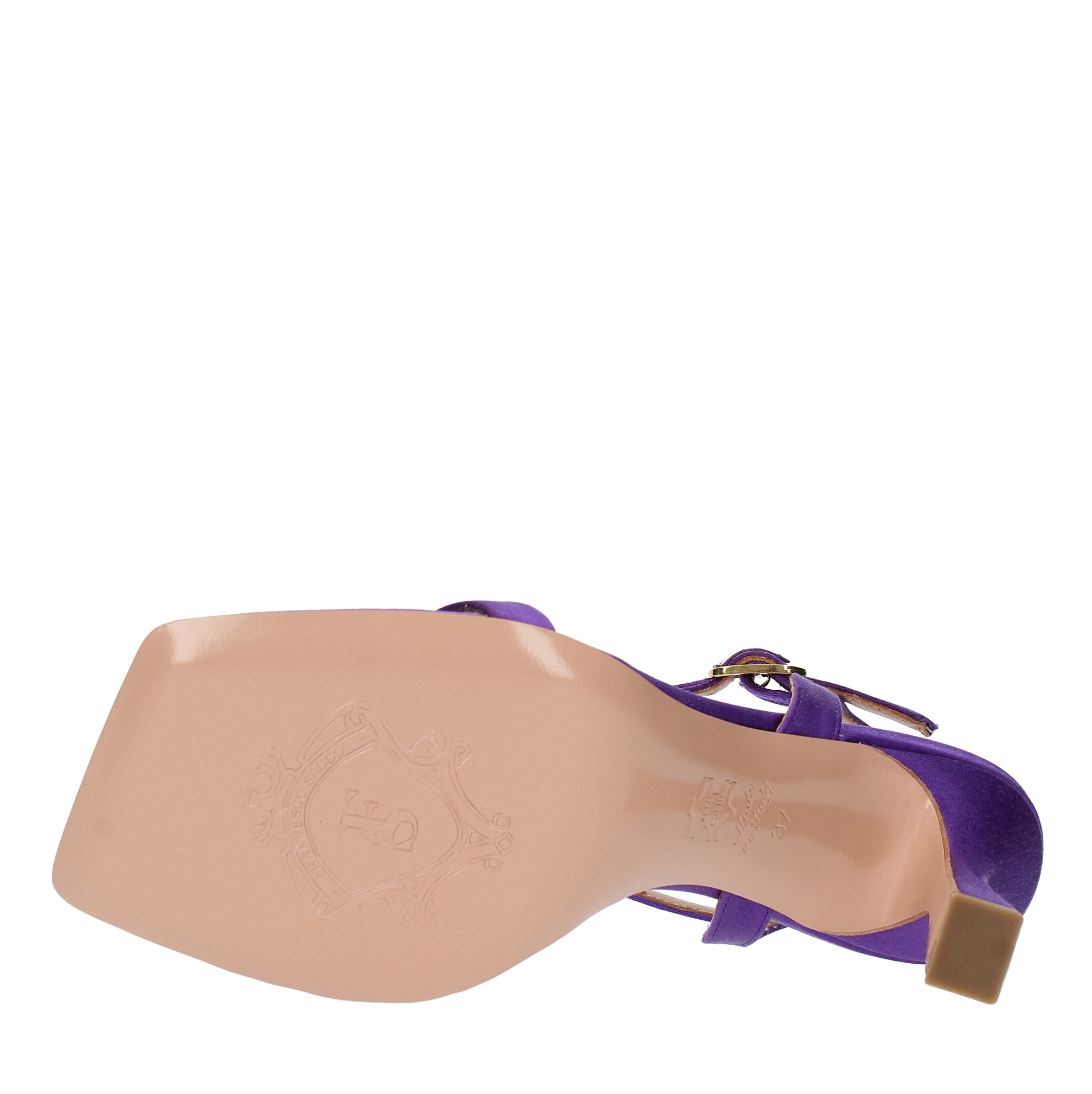 Sandalen Modell 6728 aus Satin. Außensohle aus Leder. Innenmaterial aus Leder.