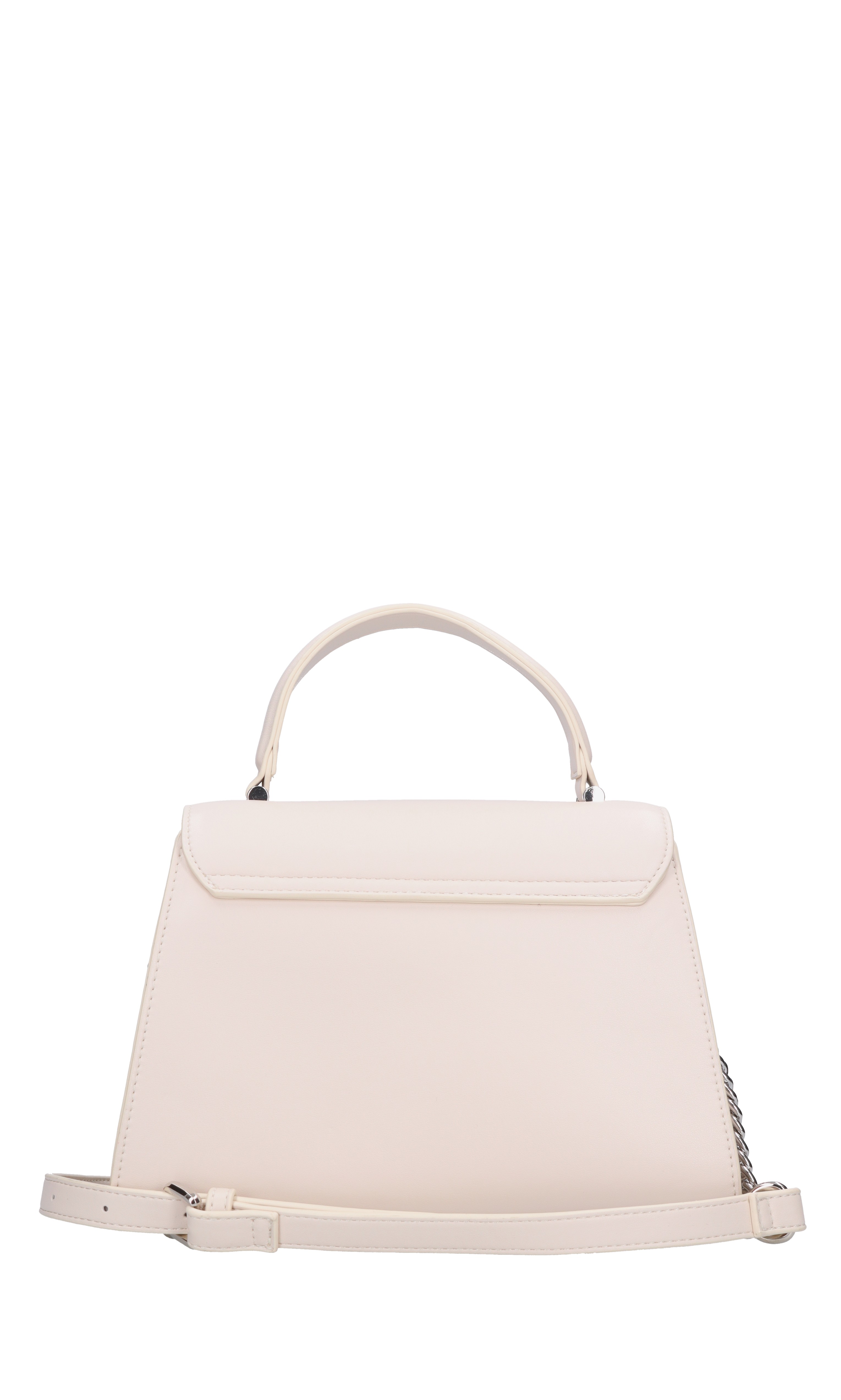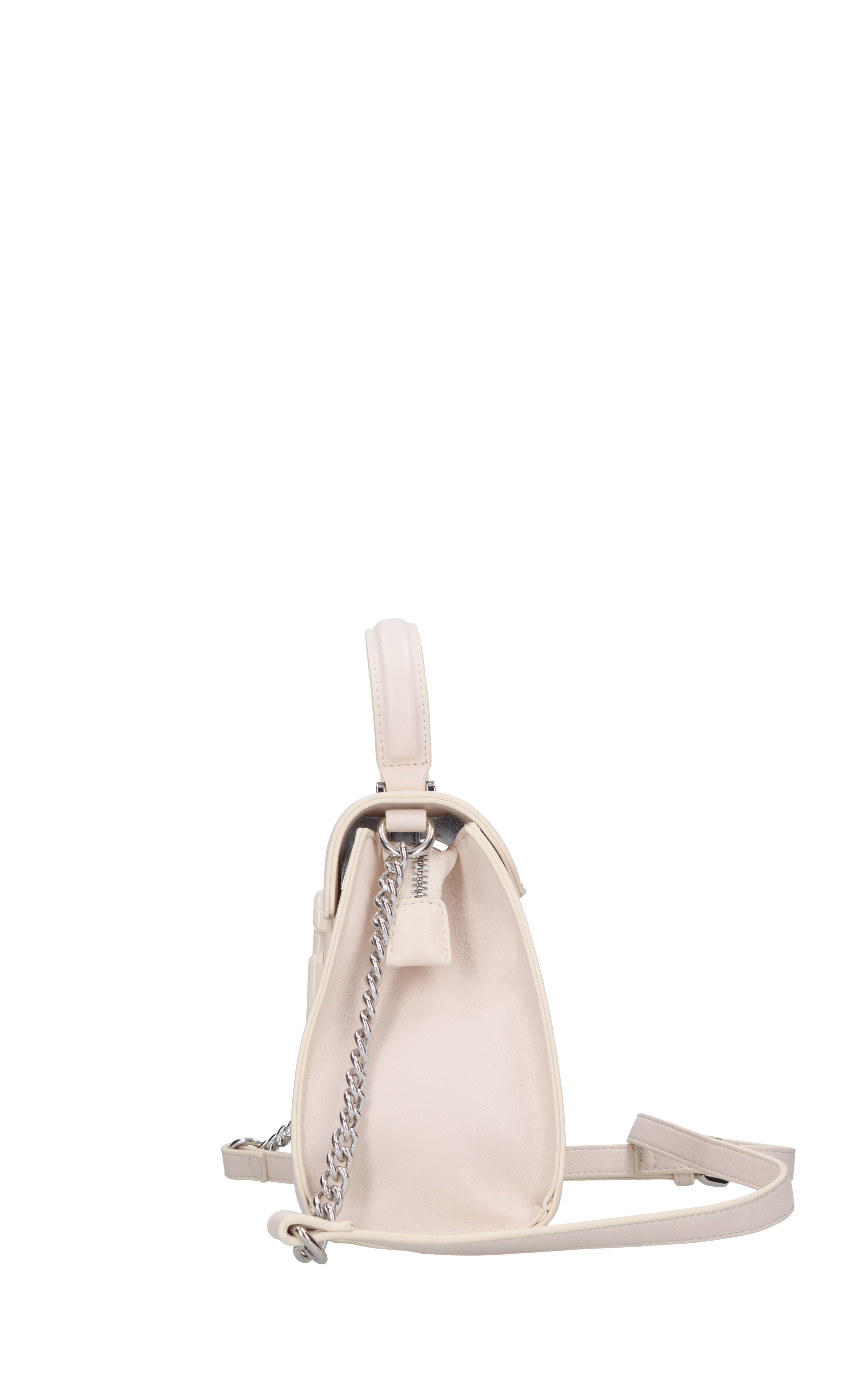 Tasche aus Öko-Leder. Verschluss mit Klappe und Druckknopf. 1 Fach. nicht verstellbarer Kettenschultergurt.