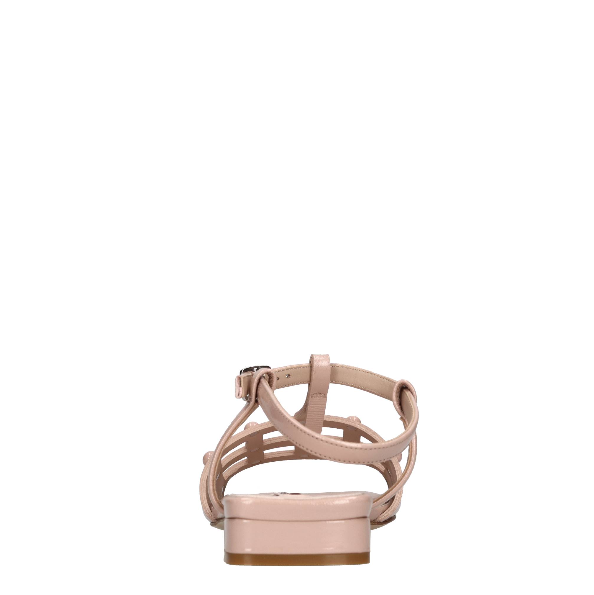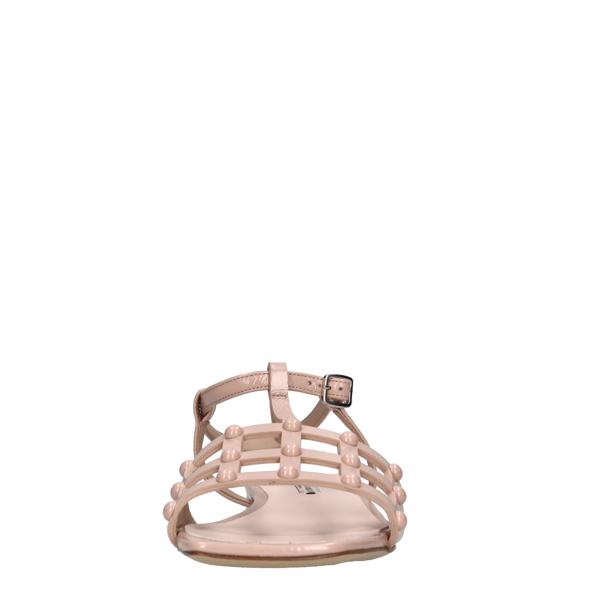 Flache Sandalen aus Leder und Nieten. Eingeloggtes Lederoberteil. Leder Außensohle.