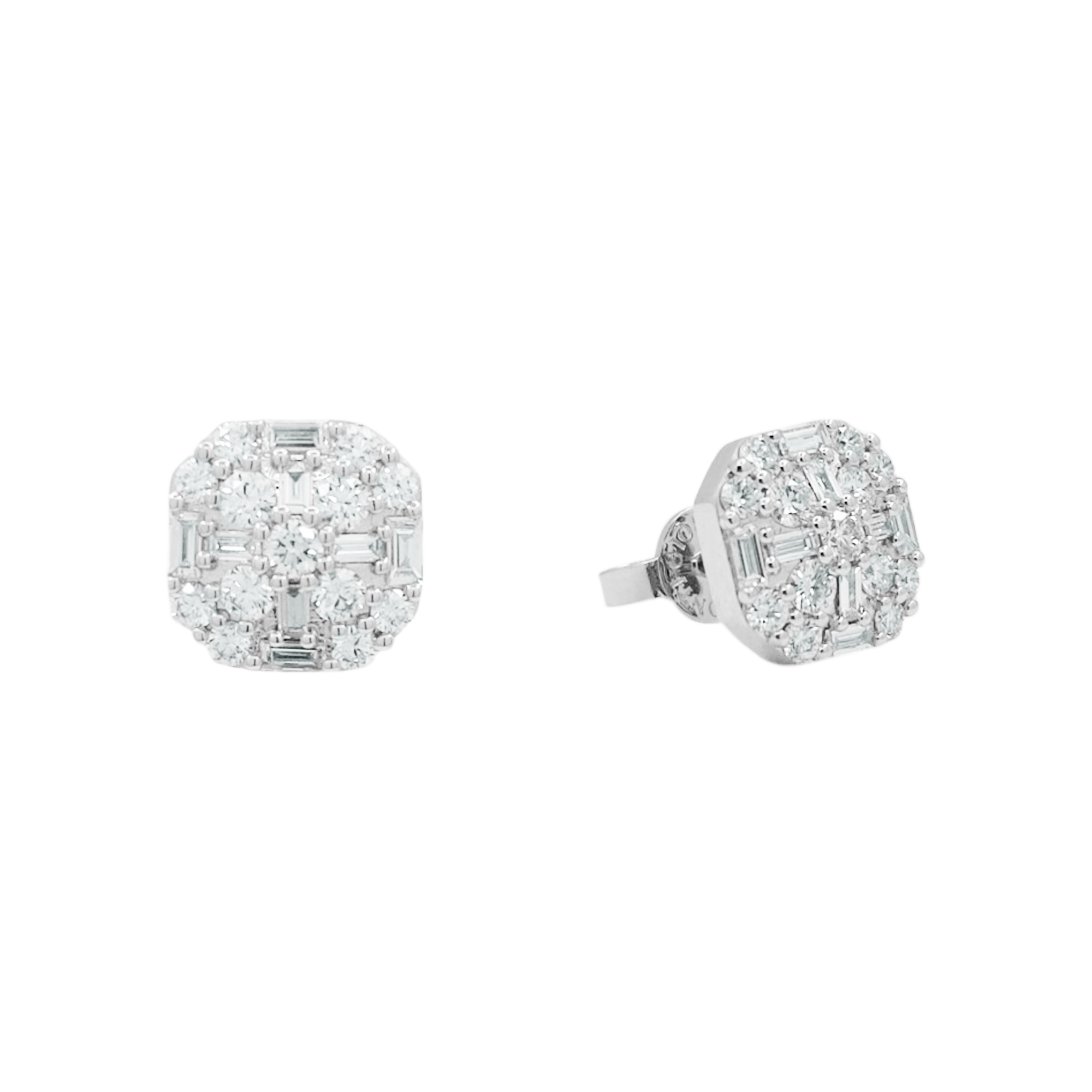 White Gold Ohrringe 750%, Lichtpunkt Modell mit Diamanten Brillant Schnitt und Baguette Schnitt.