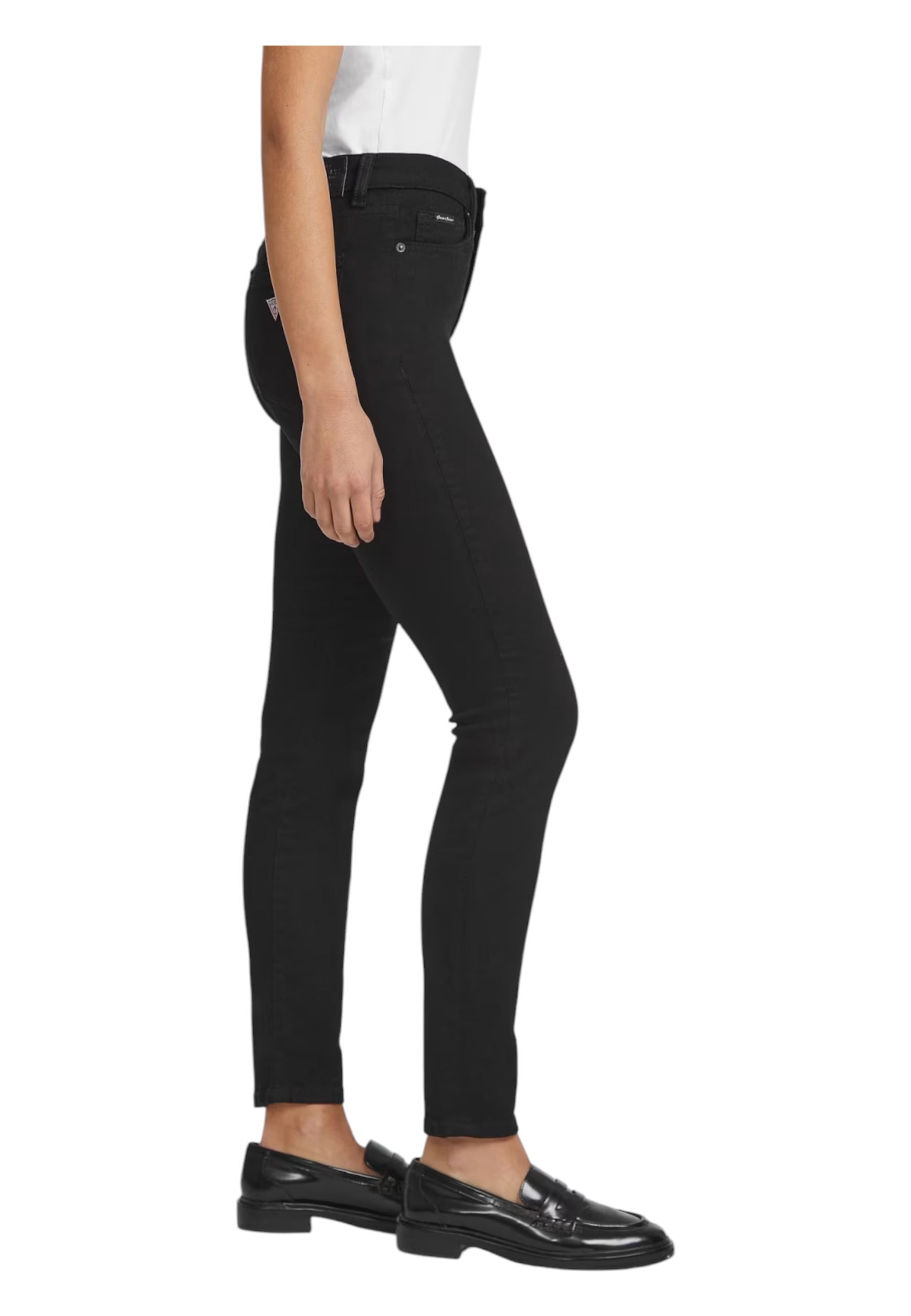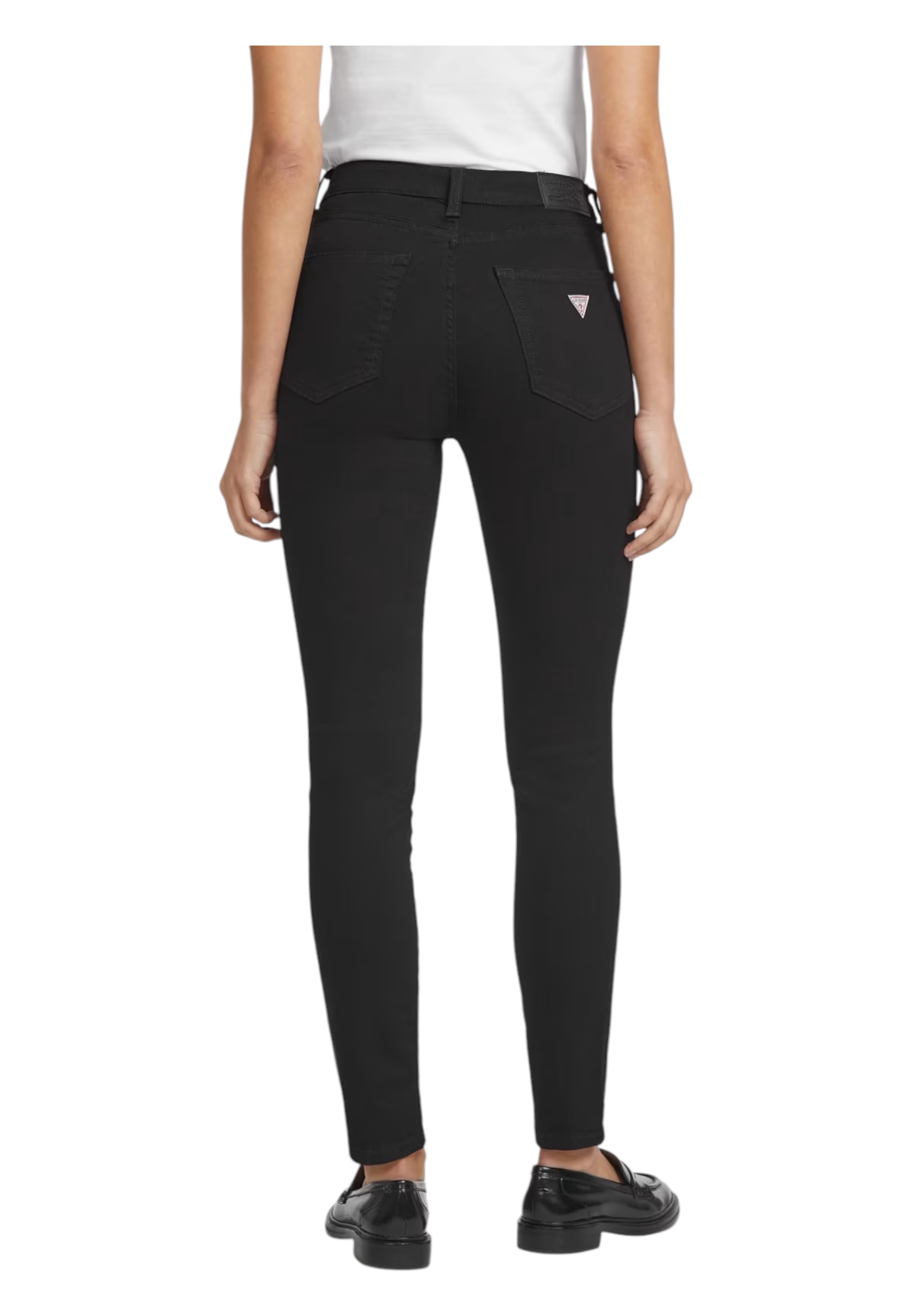 Ein dünnes Modell, das zu einem eleganten Look voller Charme führt. Hohe Taille und Fünf-Pocket-Struktur. Artikel aus unserer ikonischen Denim Guess Jeans mit Vermutung Luftwäsche TM.