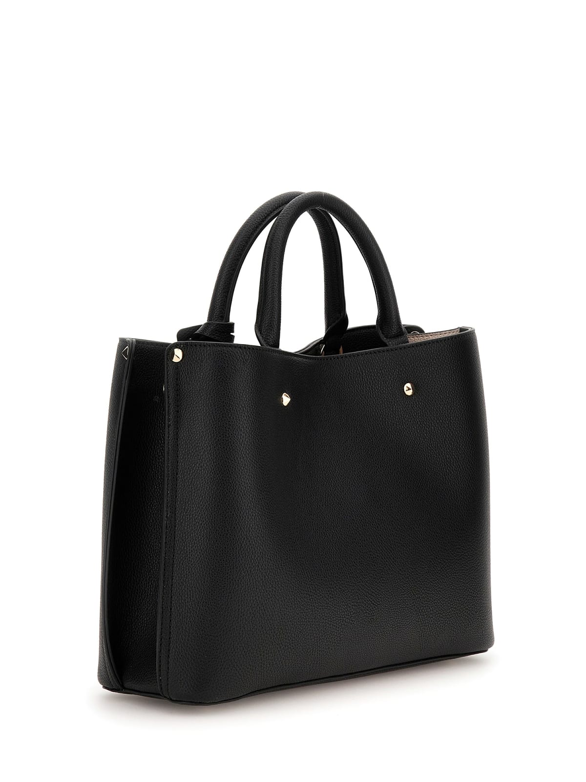 Diese Tasche Guess für Frauen ist aus schwarzem gehämmertem Kunstleder, mit einem modernen und eleganten Design. Das Modell wird durch das berühmte dreieckige Logo in vergoldetem Metall auf der Vorderseite verschönert, markante Marke der Marke. Ausgestattet mit Doppelgriffen und Anhängern mit Logo-Detail, ist es ein anspruchsvolles und funktionales Accessoire, perfekt für einen sorgfältigen Look bei jedem Anlass. Dank seiner Breite, ermöglicht es, mit ihm alle wesentlichen des Tages, geeignet für Arbeit und Freizeit.