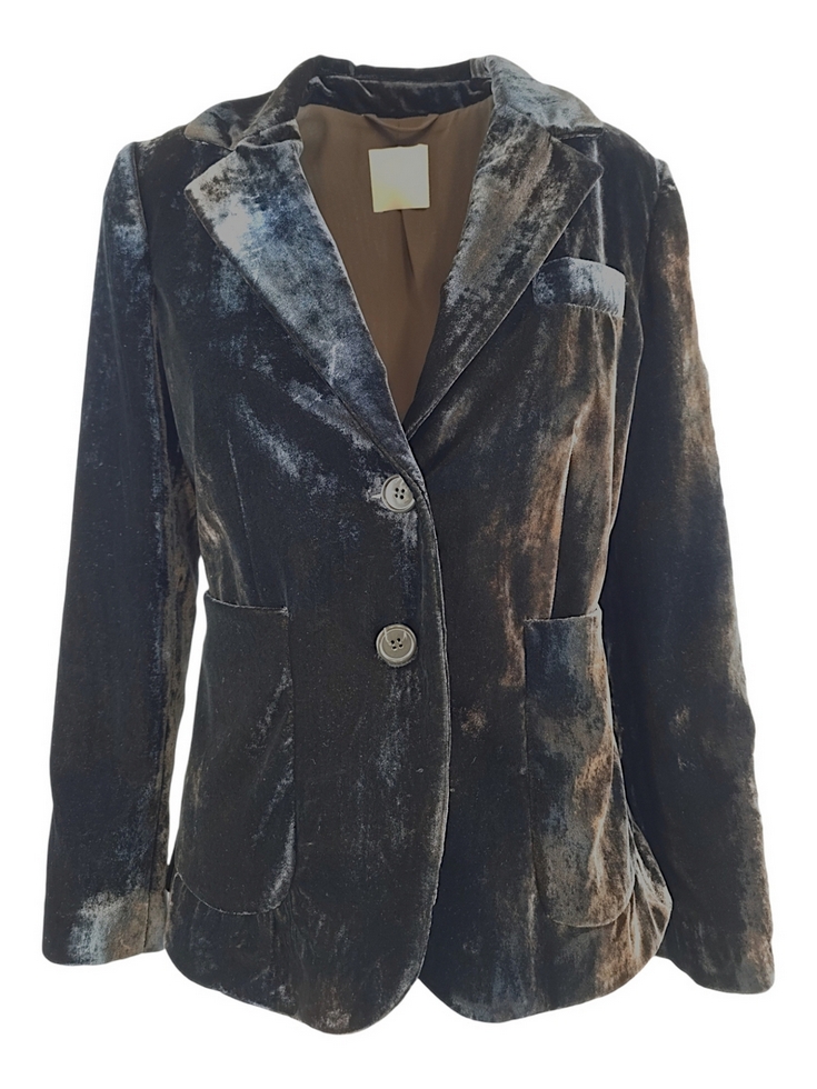 Blazer Kiltie. Lin Modell. Monopetto. Taschen. Velvet imprimè. Weiche Passform. Zusammensetzung: 80% Viskose, 20% Polyamid. Made in Italy.