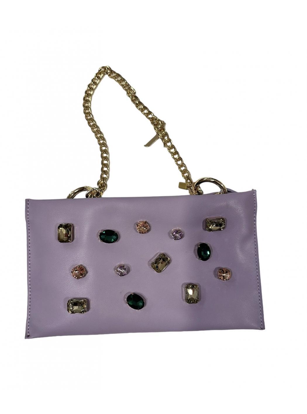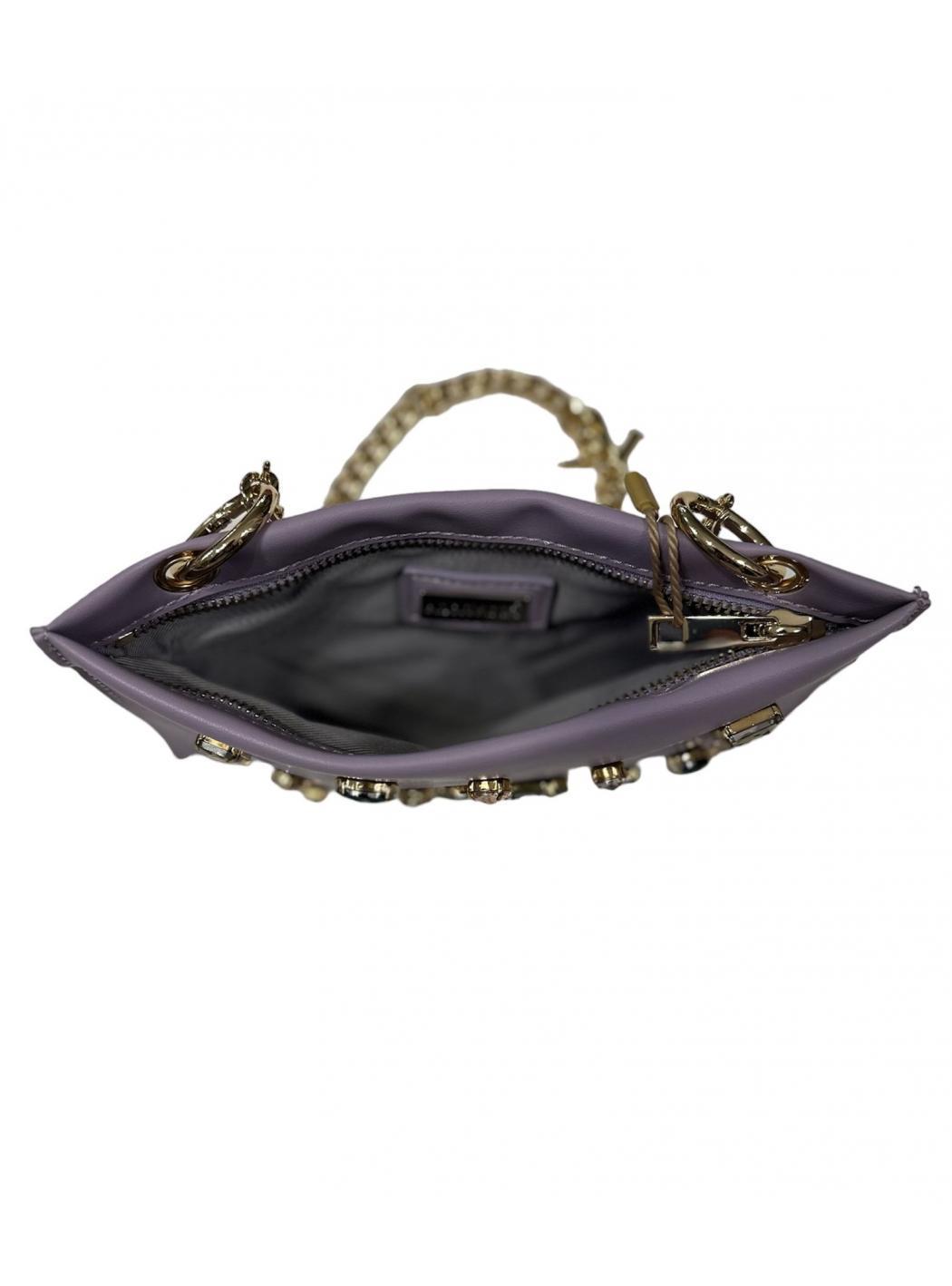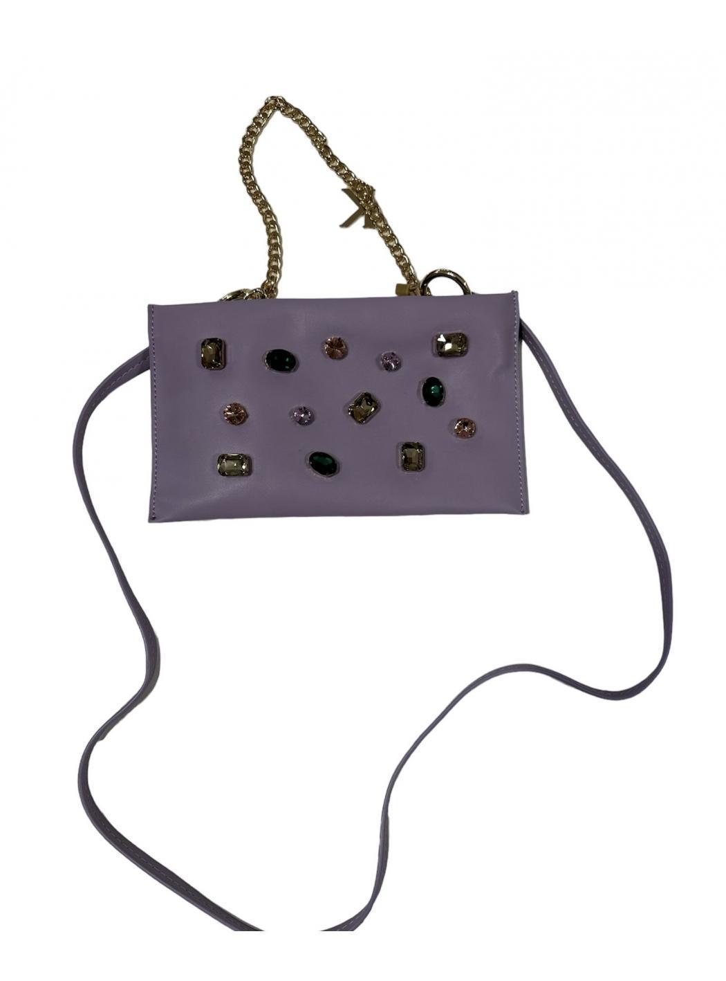 Minitasche aus Öko-Leder mit Reißverschluss mit goldener kurzer Kette und Schulterriemen. Vor den Felsen. Innen gefüttert 100% Polyester.