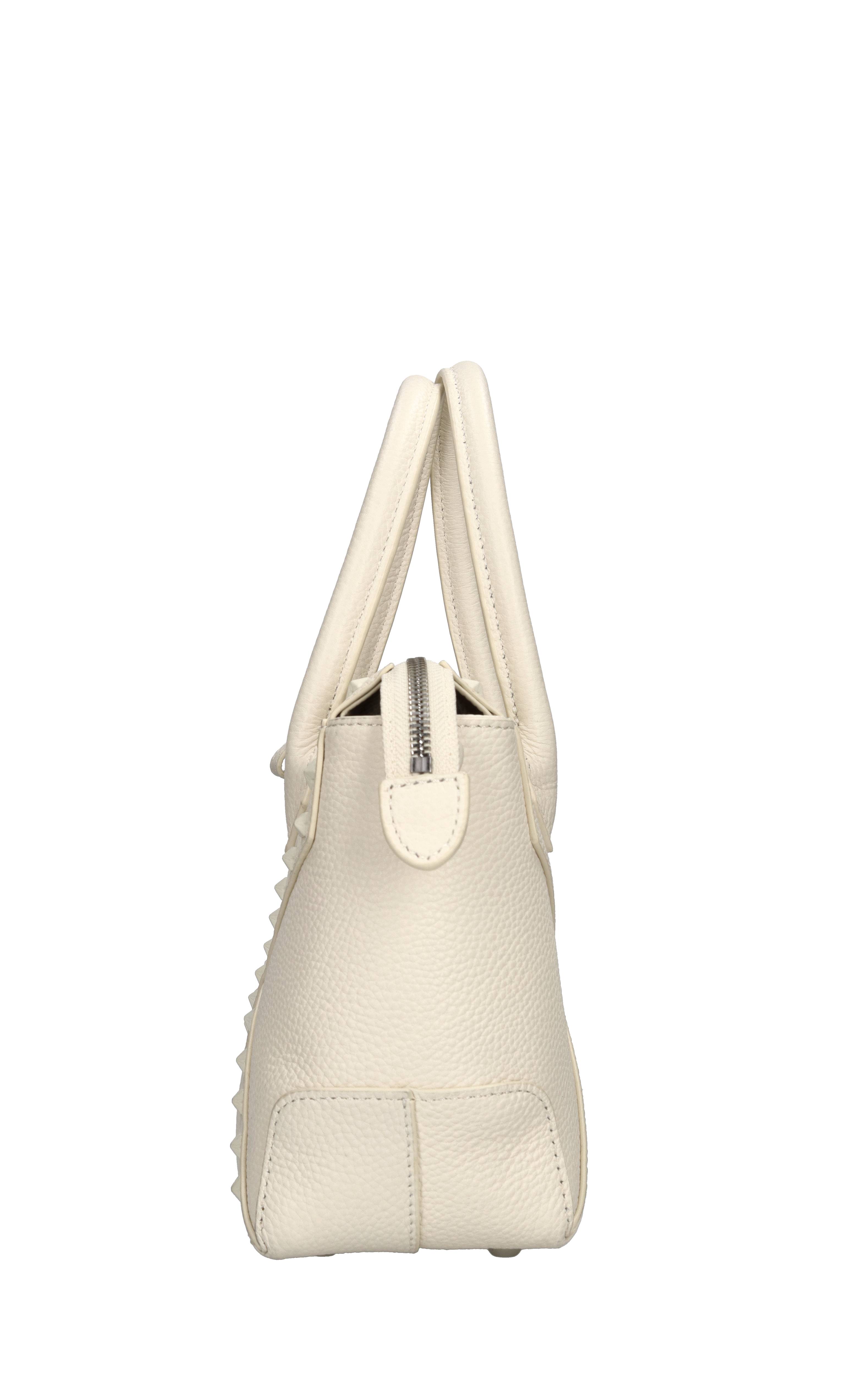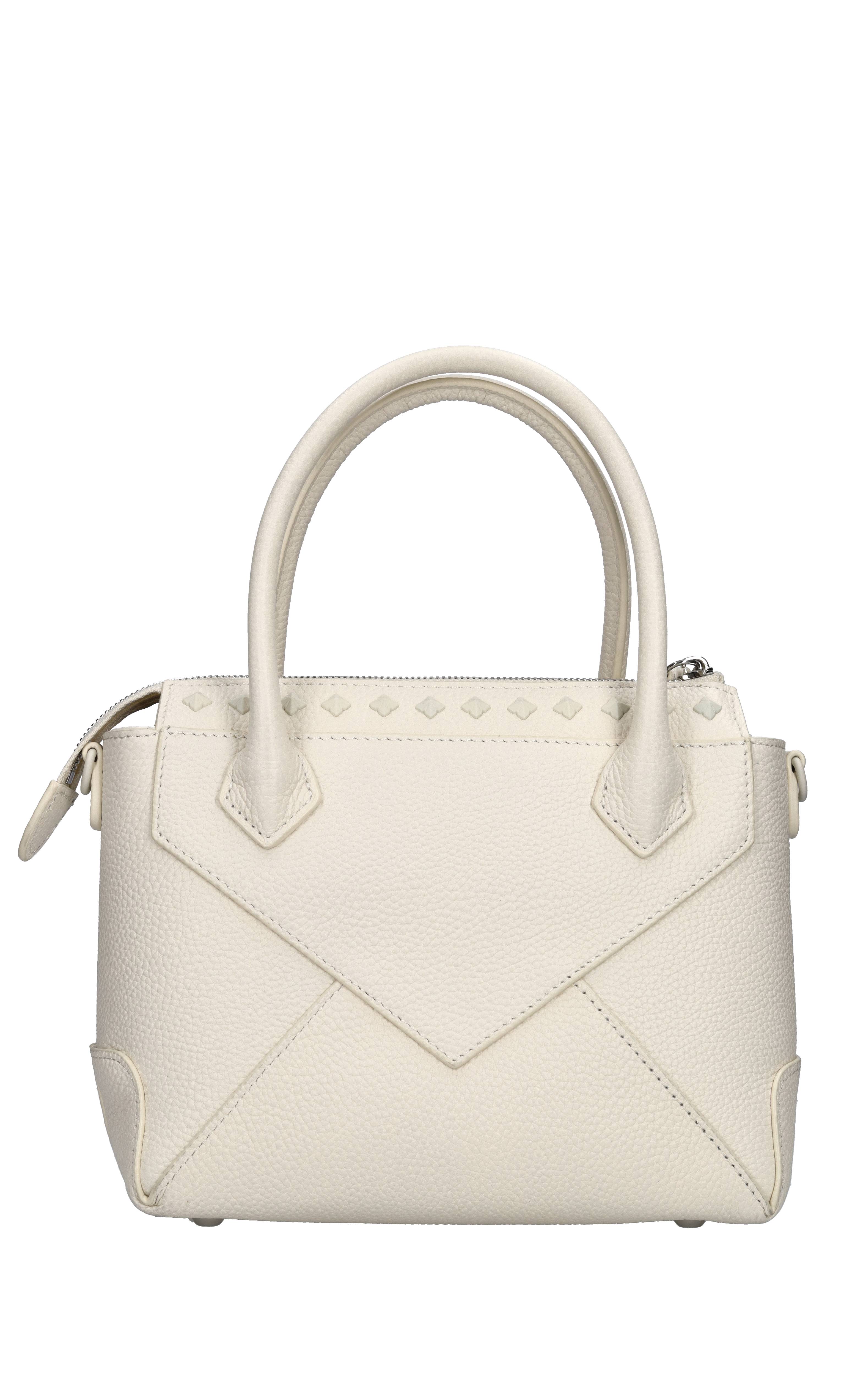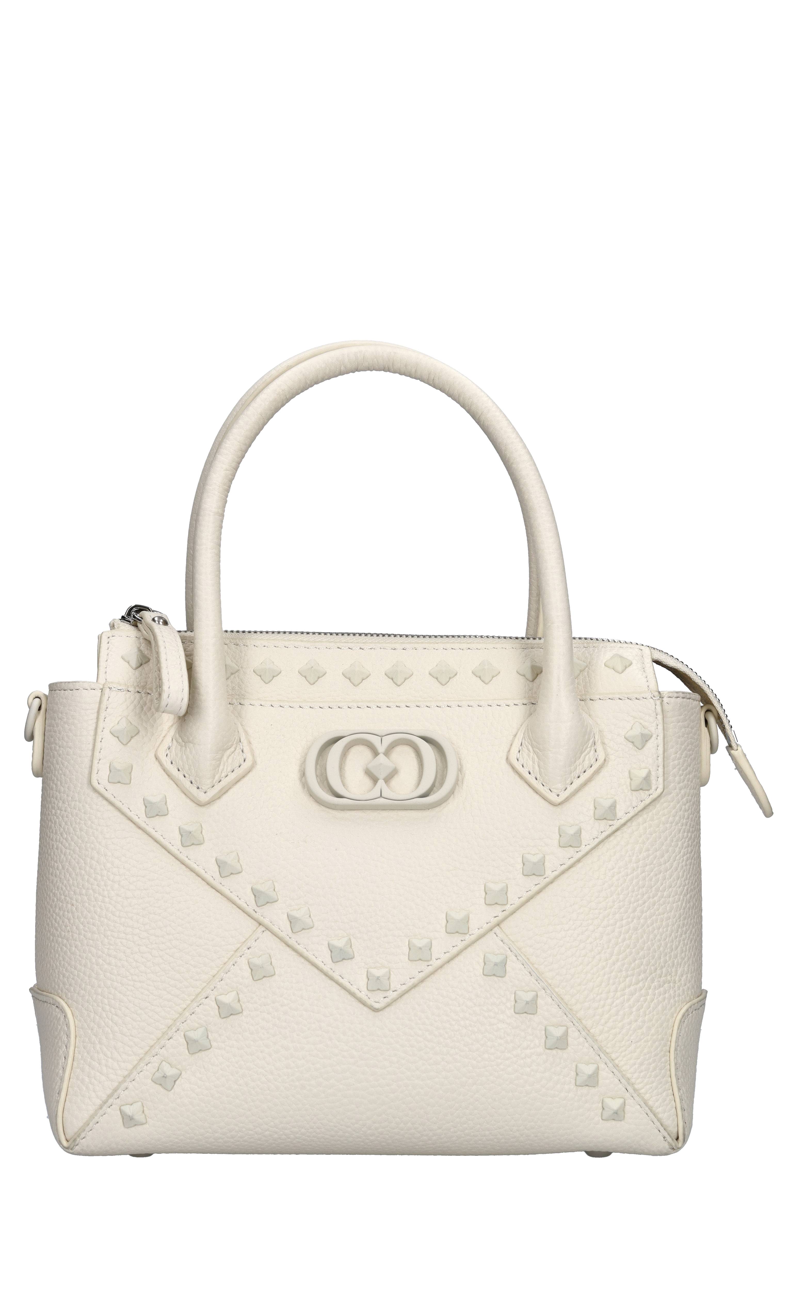 Frivole Ledertasche. Ein Kompartiment. Reißverschluss. Blauer Kettenschultergurt aus abnehmbarem Leder. Dekorative Tonnieten auf Ton.