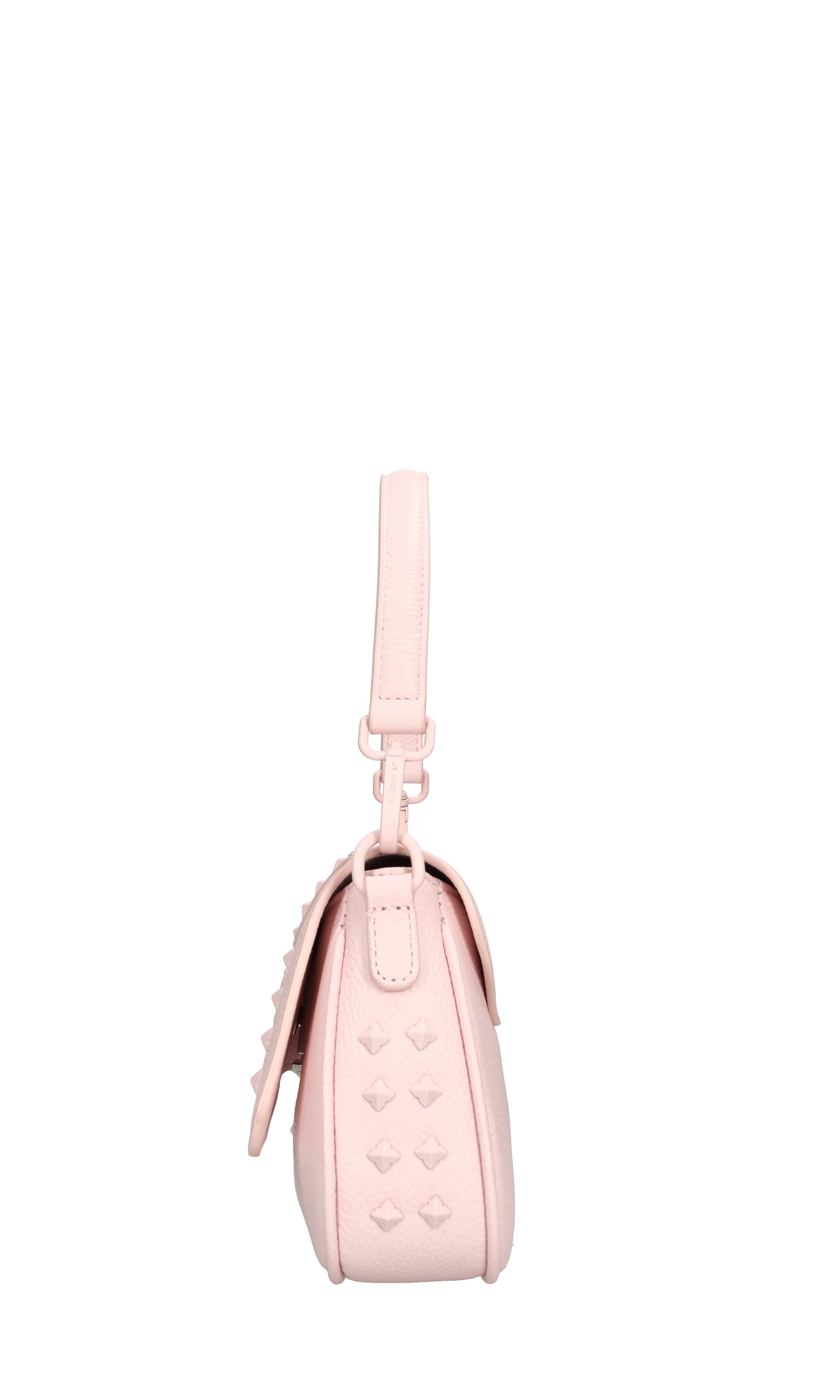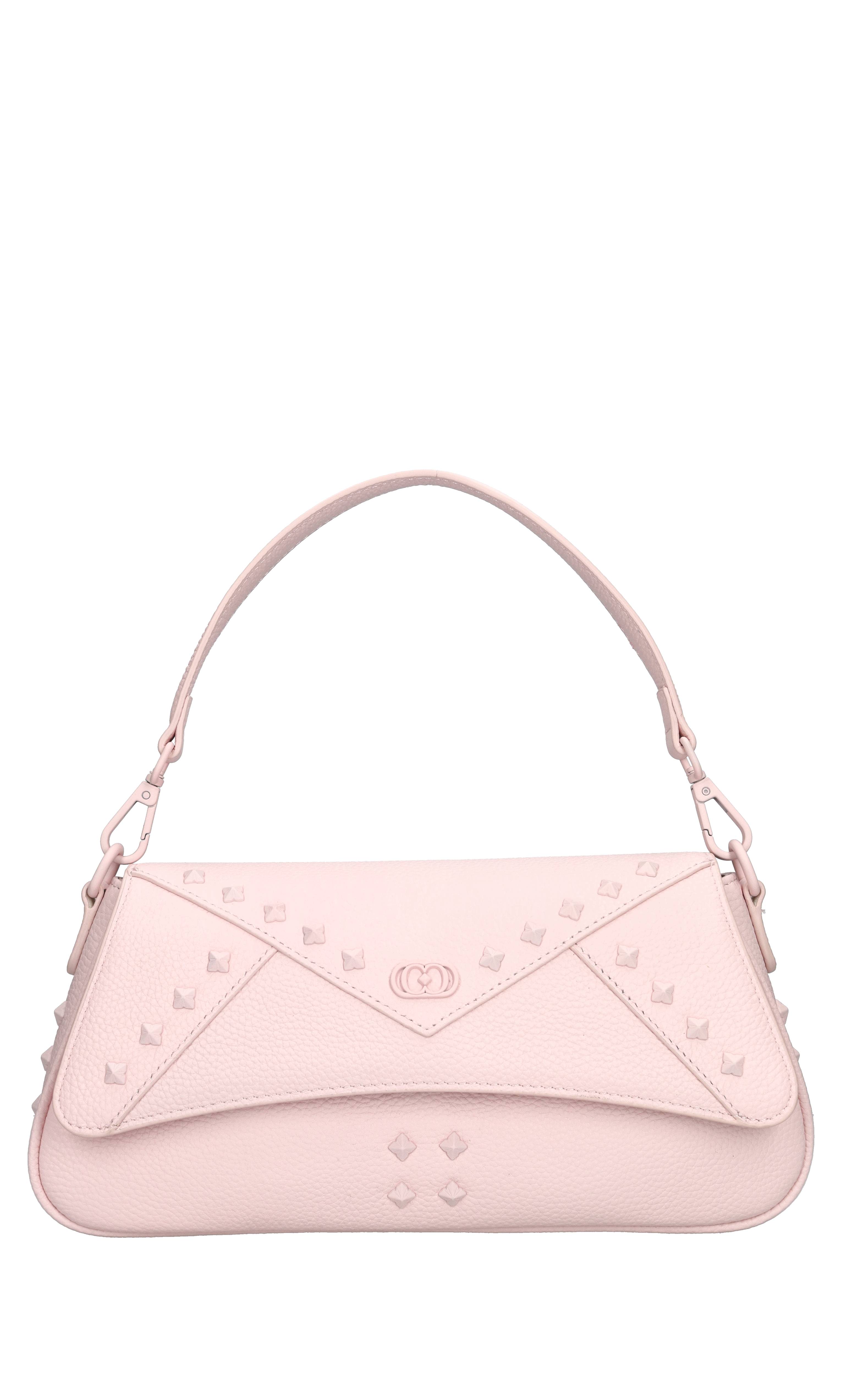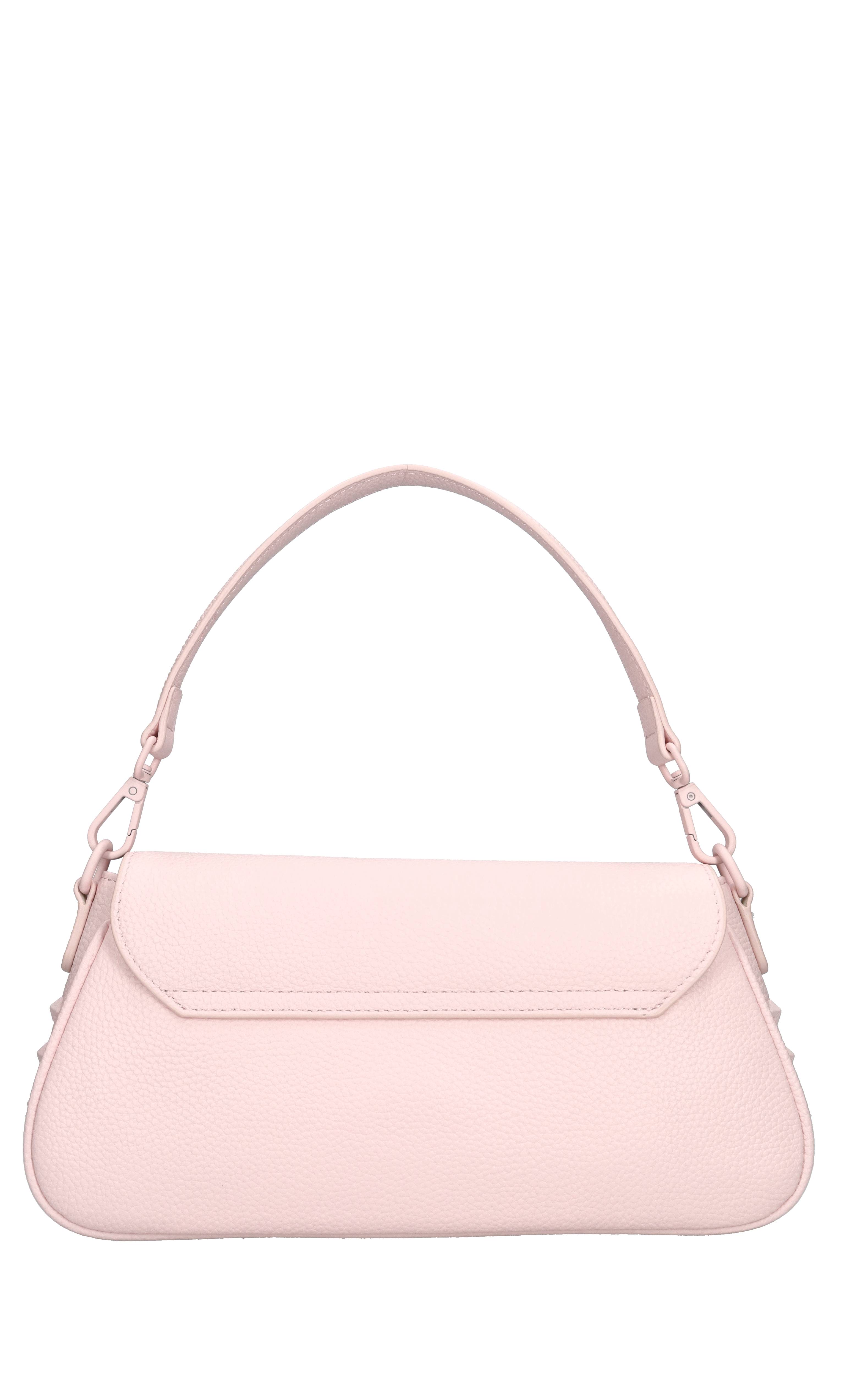 Frivole Ledertasche und Stollen. Ein Kompartiment. Details in Metallton auf Ton. Schließung mit Schnappknopf. Griff und Kette Ton Schulterriemen auf abnehmbarem Lederton.