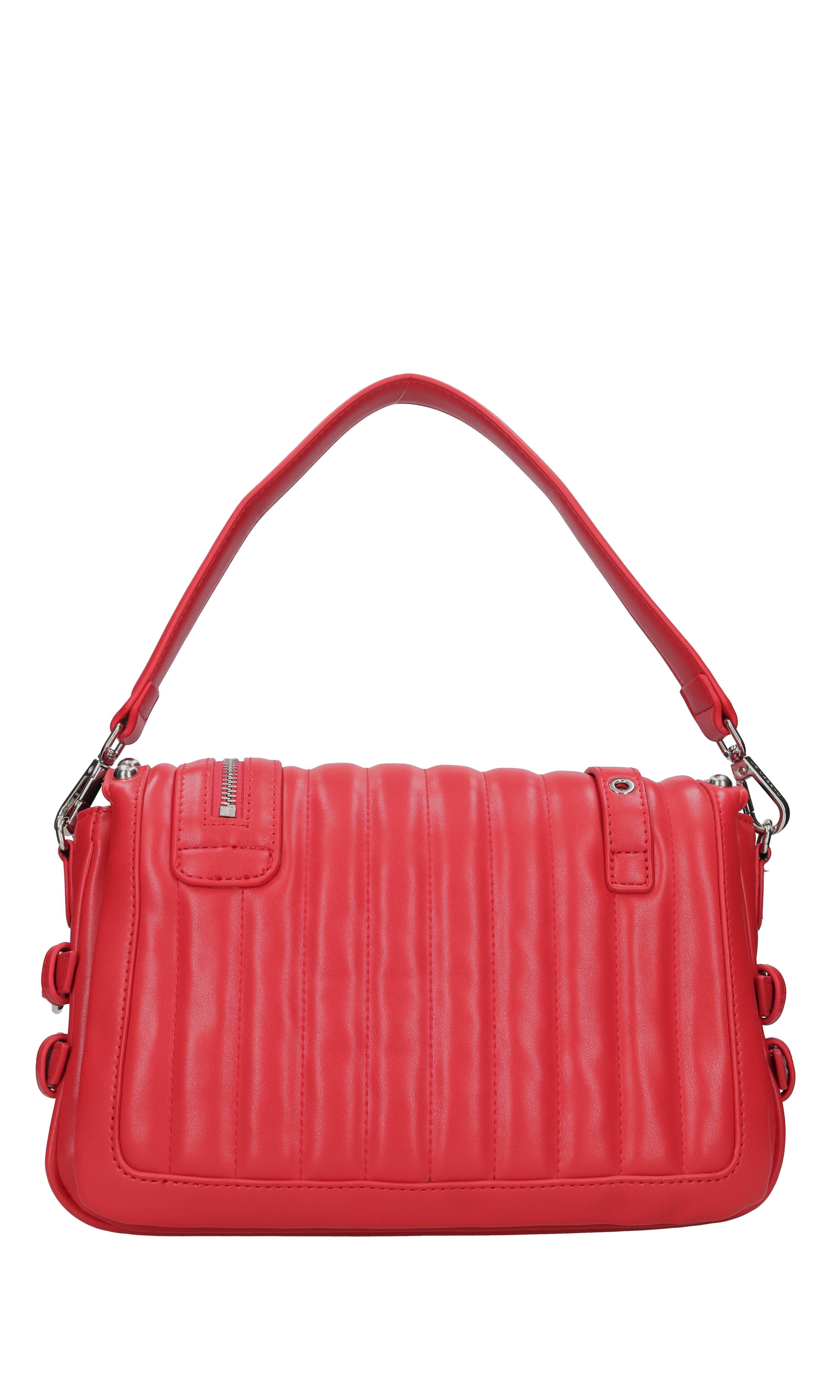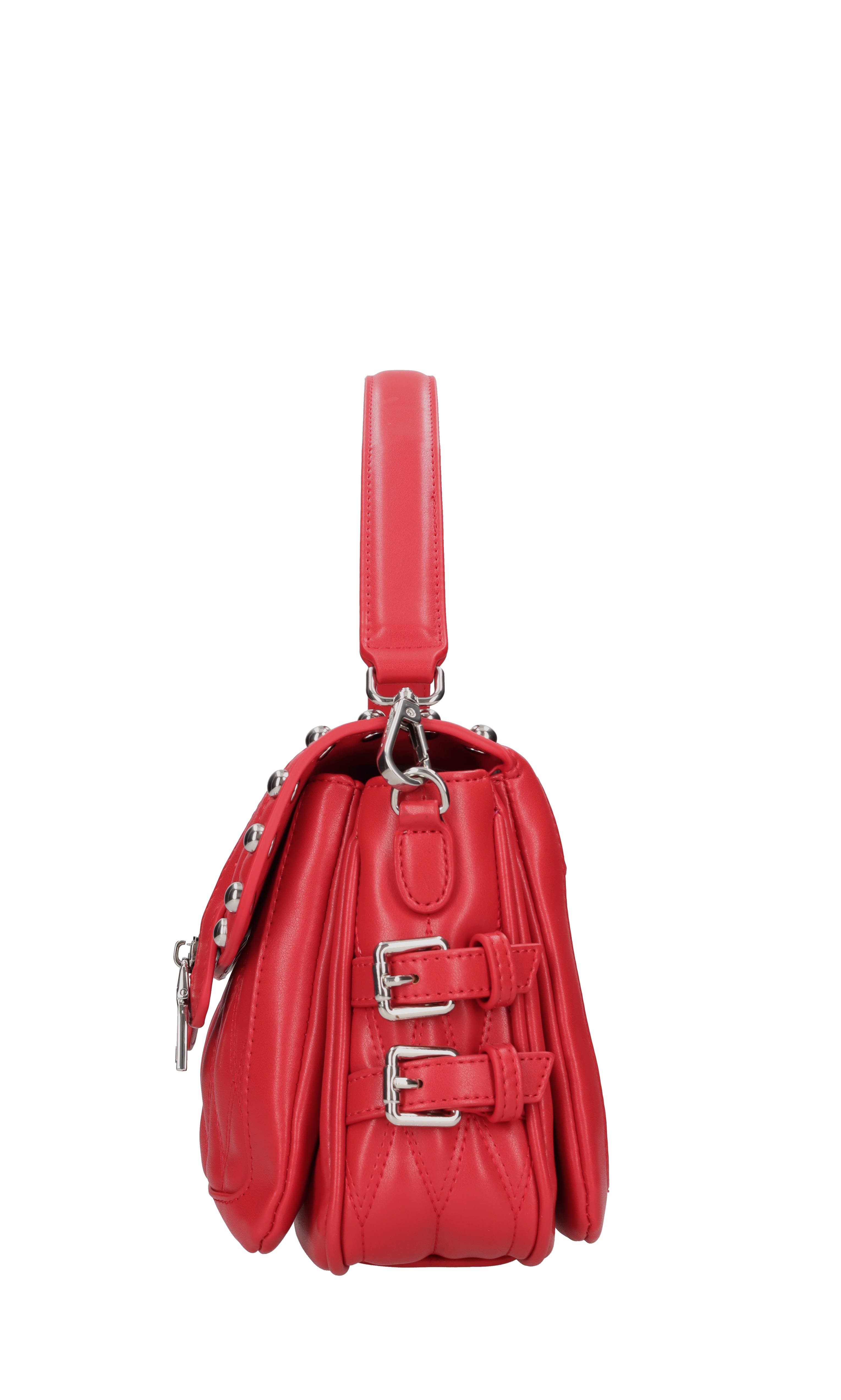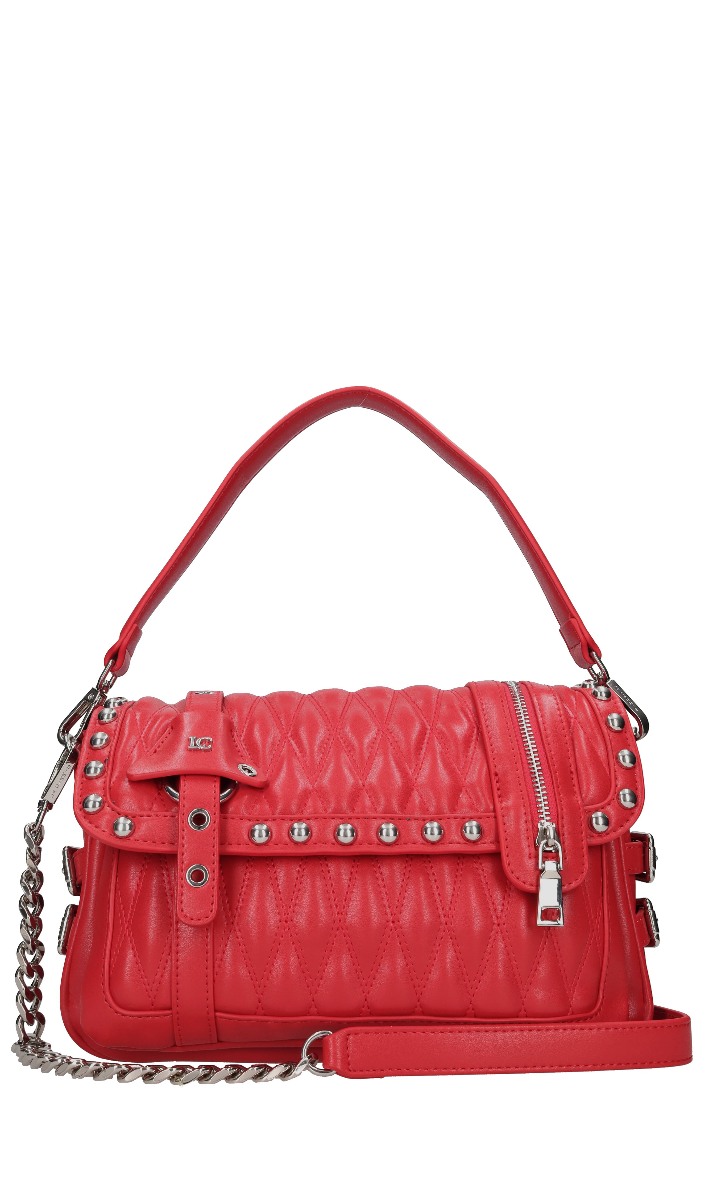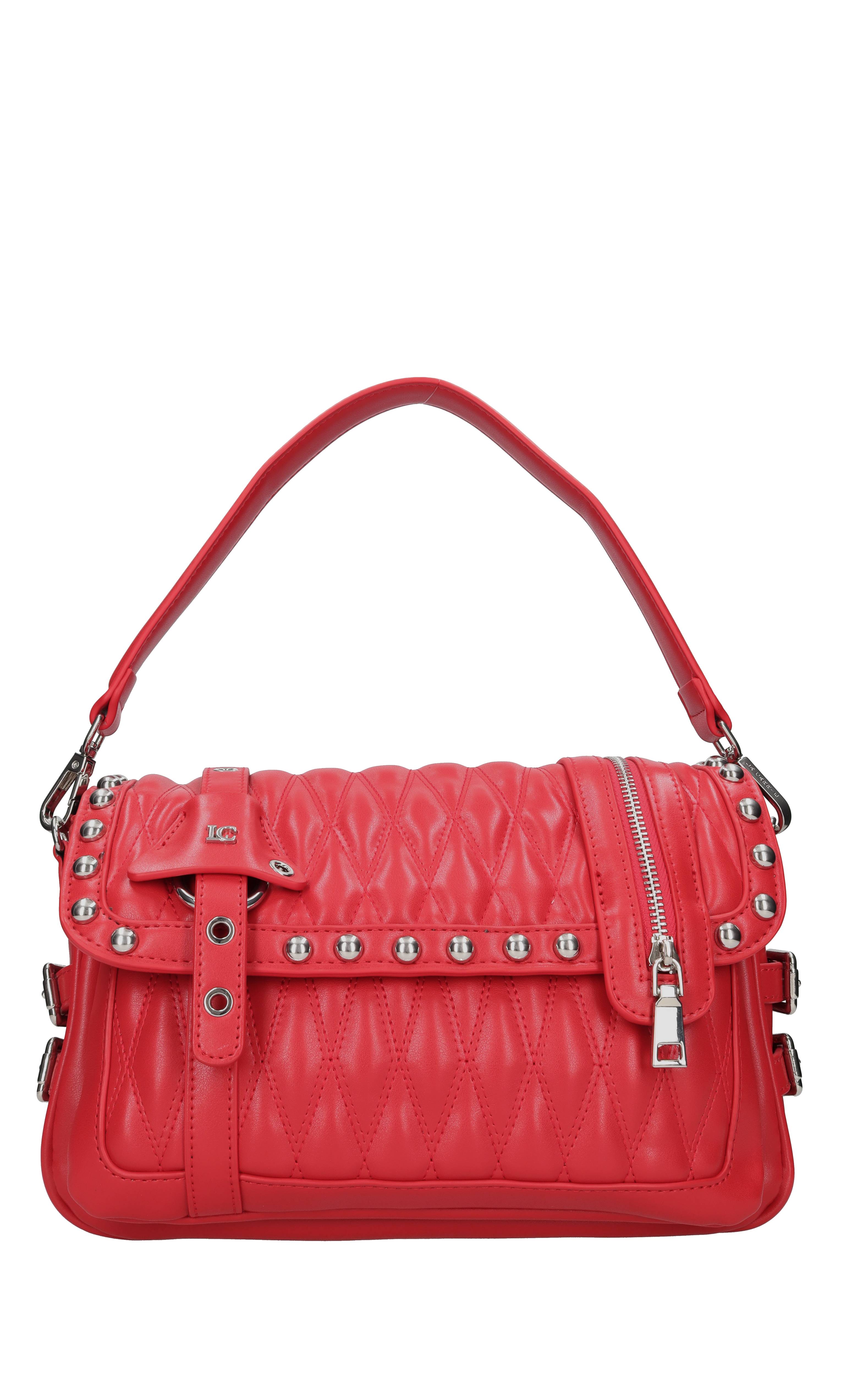 Ledertasche und Stollen. 1 Abteil. Schließung mit Klappe und Magnetknopf. Abnehmbare Schulter und Griff.