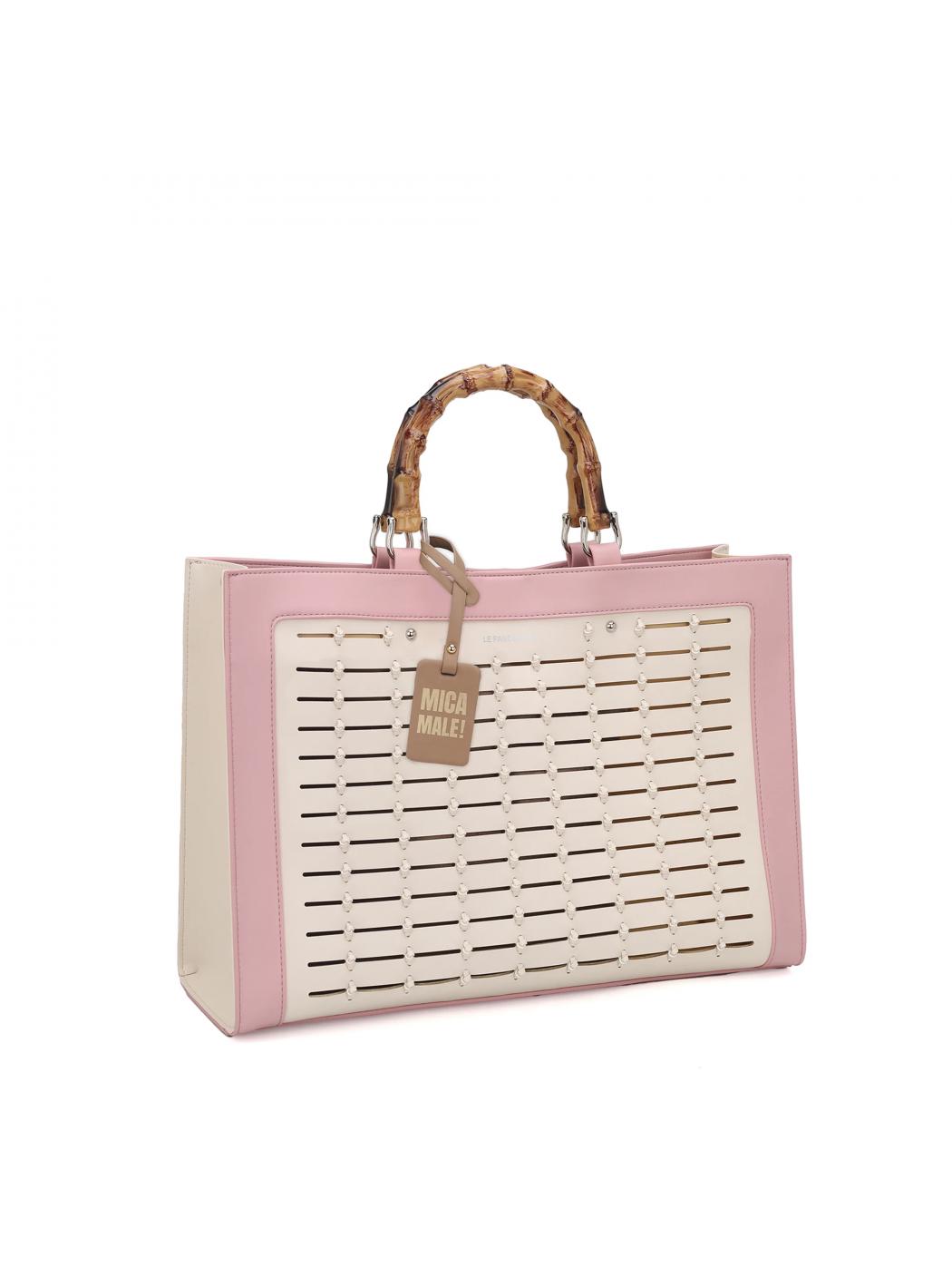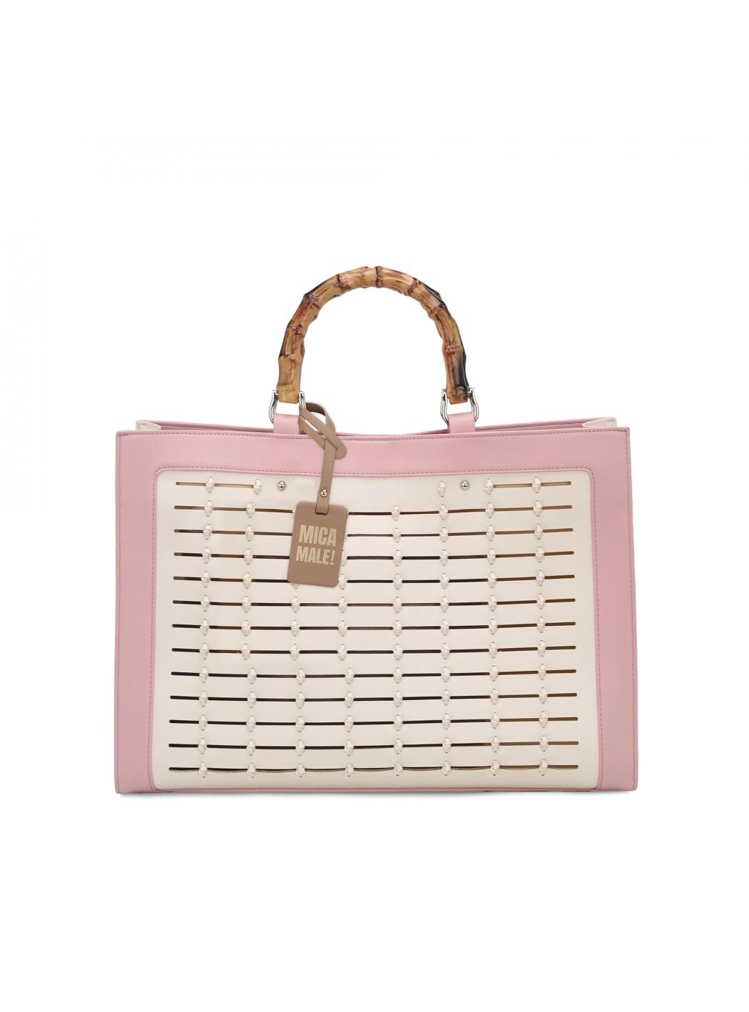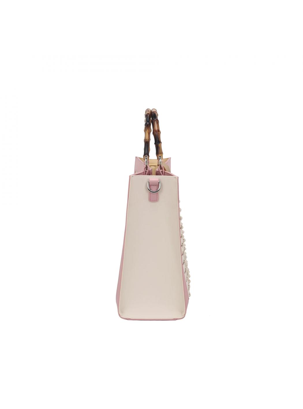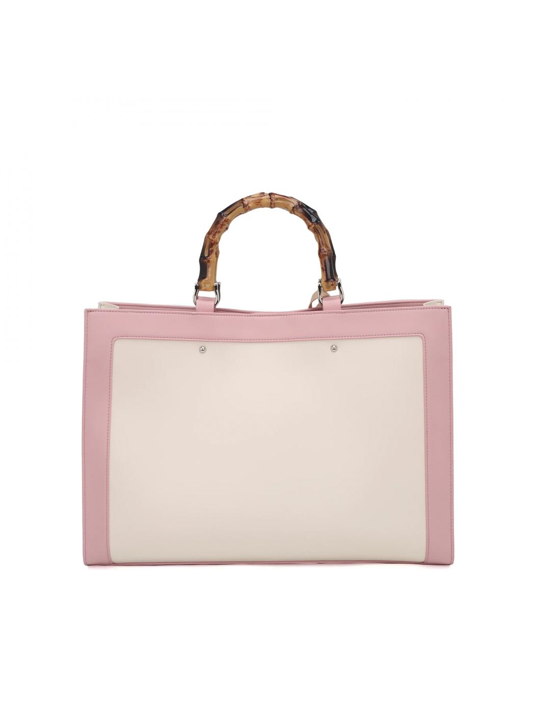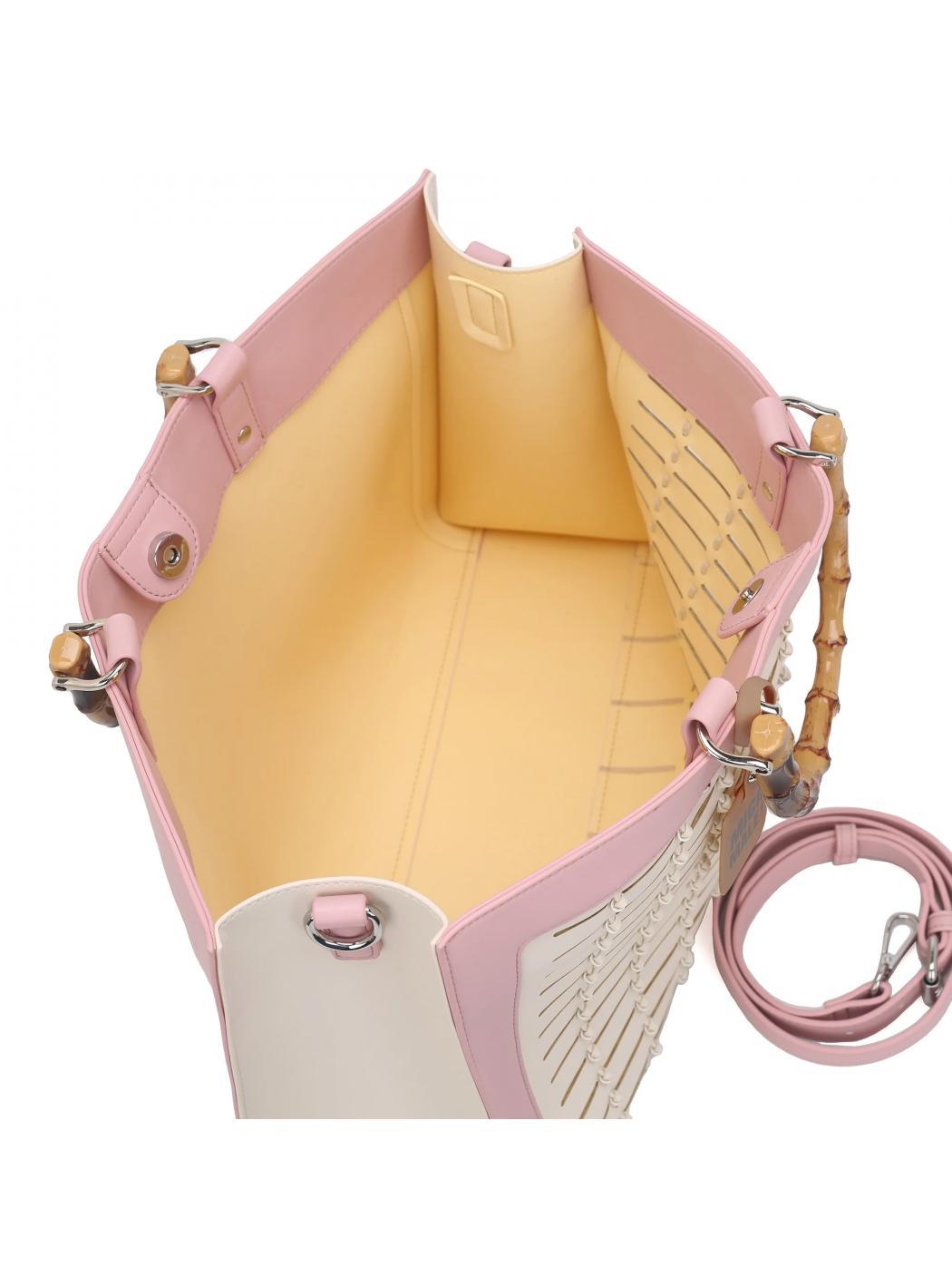 • Abnehmbarer Schultergurt in pu und handgriff in simil Bamboo