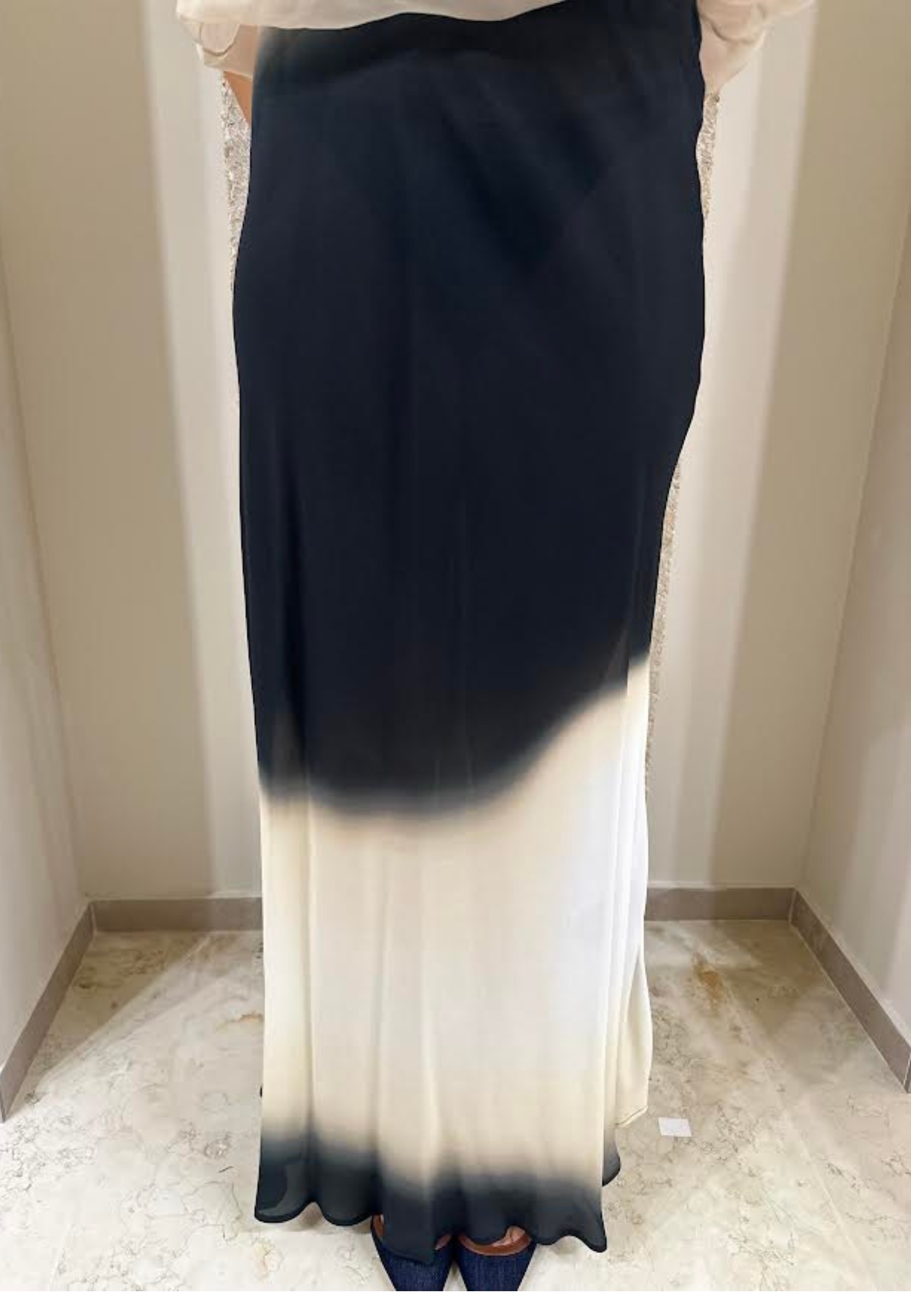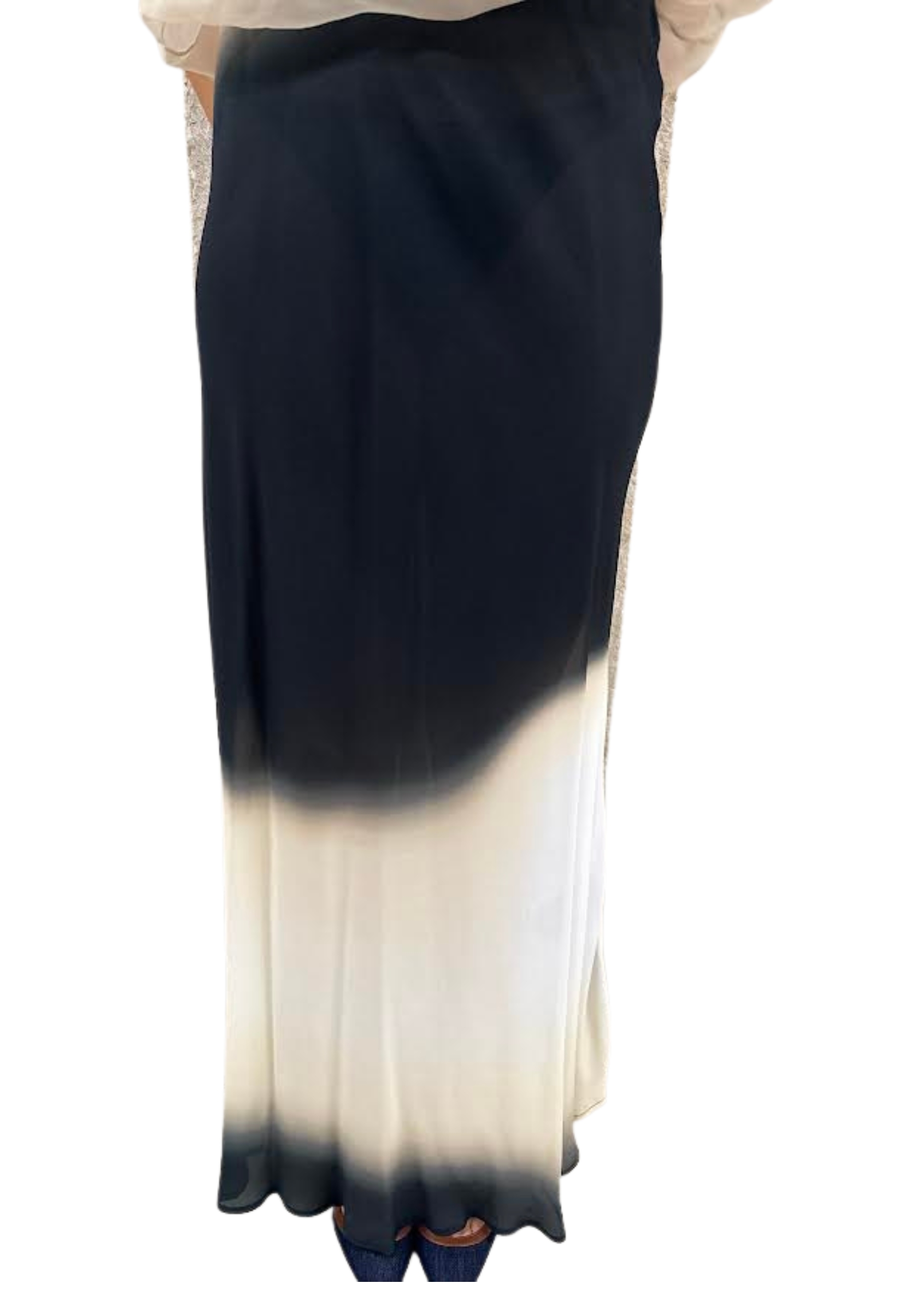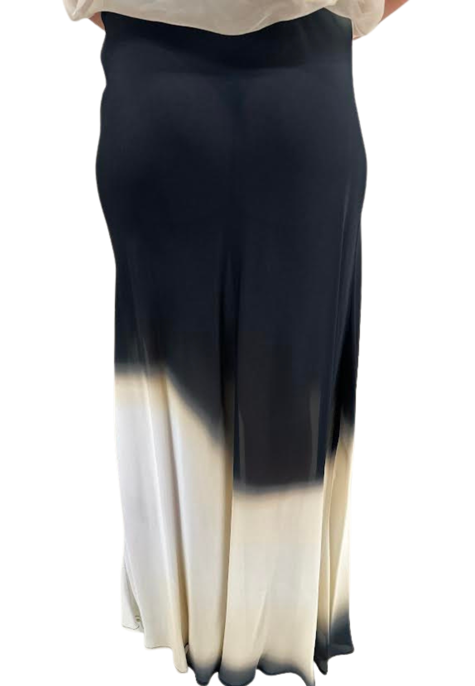 Langer Rock aus leichtem Stoff mit schwarzem und weißem Schaumeffekt, gekennzeichnet durch eine gerade und glatte Linie, die die Silhouette mit Eleganz verbessert. Phosphorin.