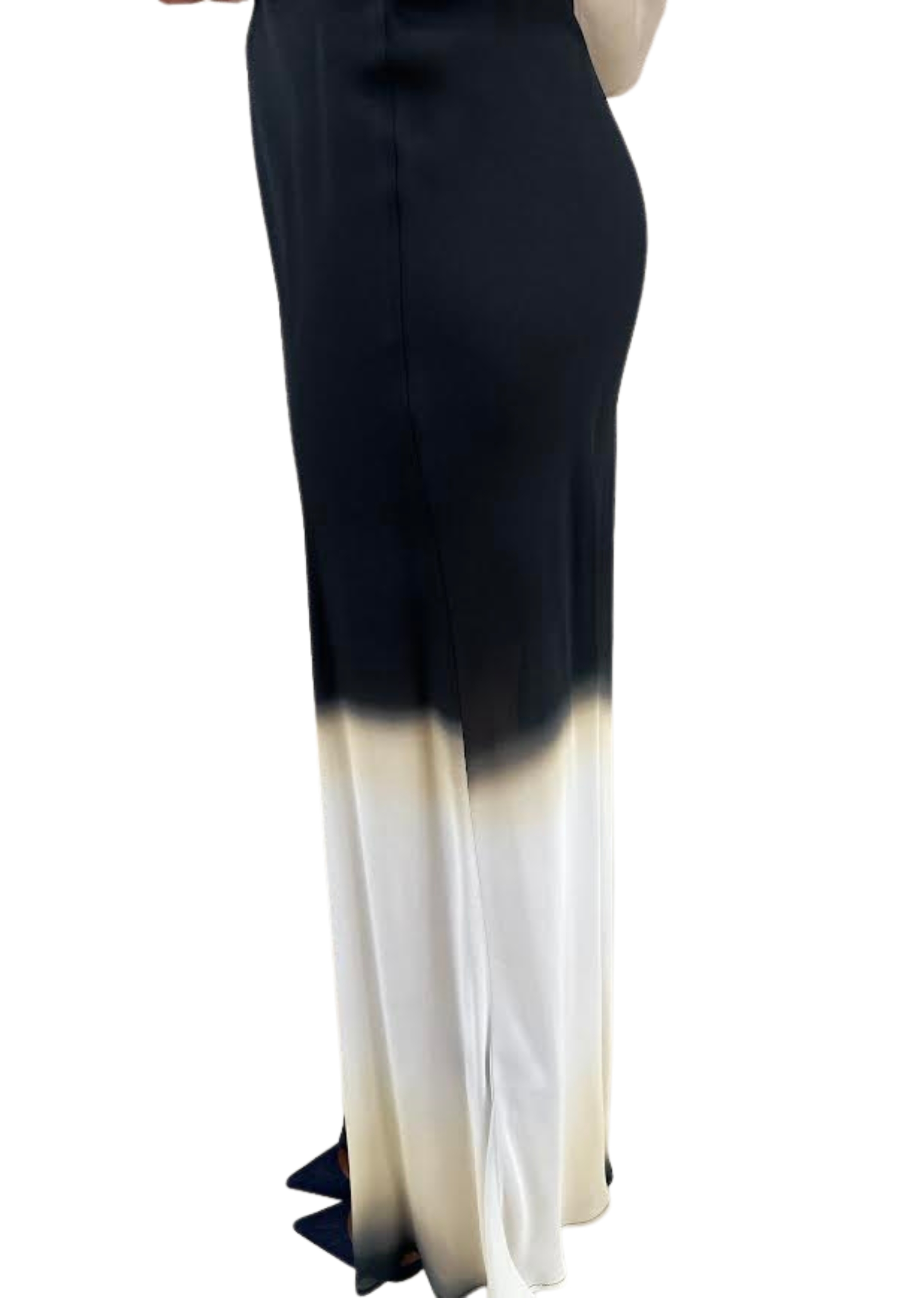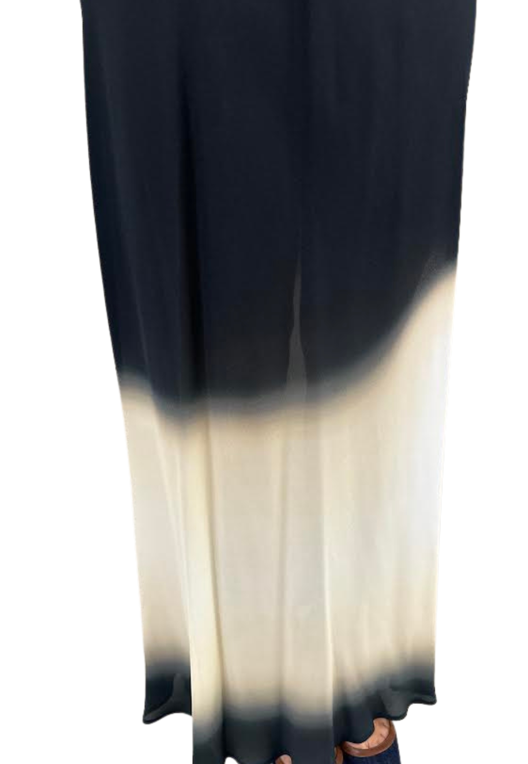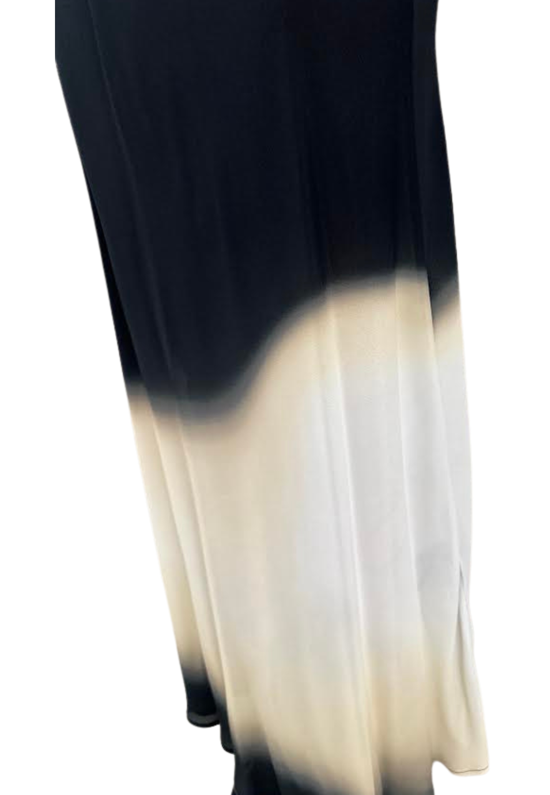 Langer Rock aus leichtem Stoff mit schwarzem und weißem Schaumeffekt, gekennzeichnet durch eine gerade und glatte Linie, die die Silhouette mit Eleganz verbessert. Phosphorin.