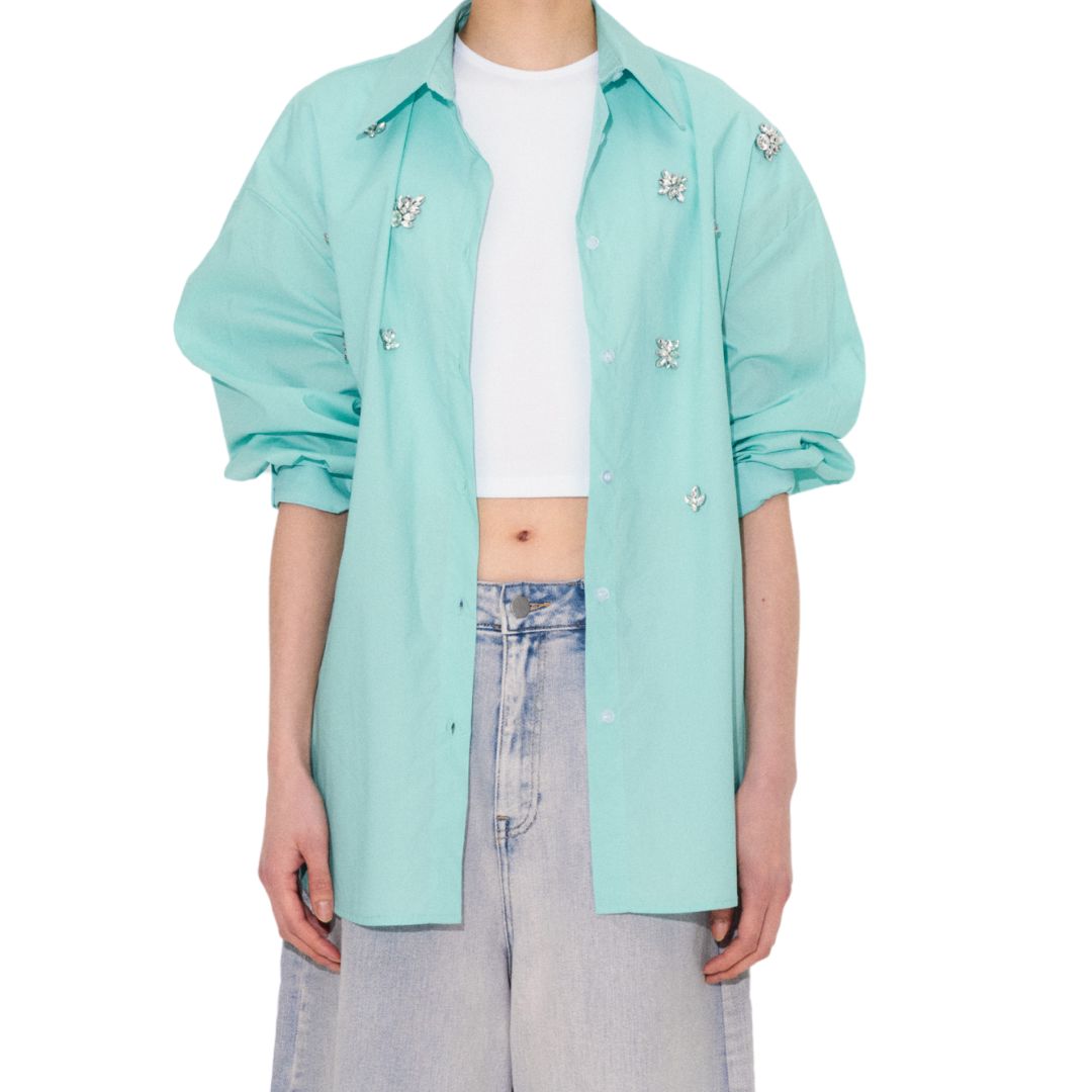 Shirt Oversize Green Tiffany Lumina in Baumwolle mit Strass