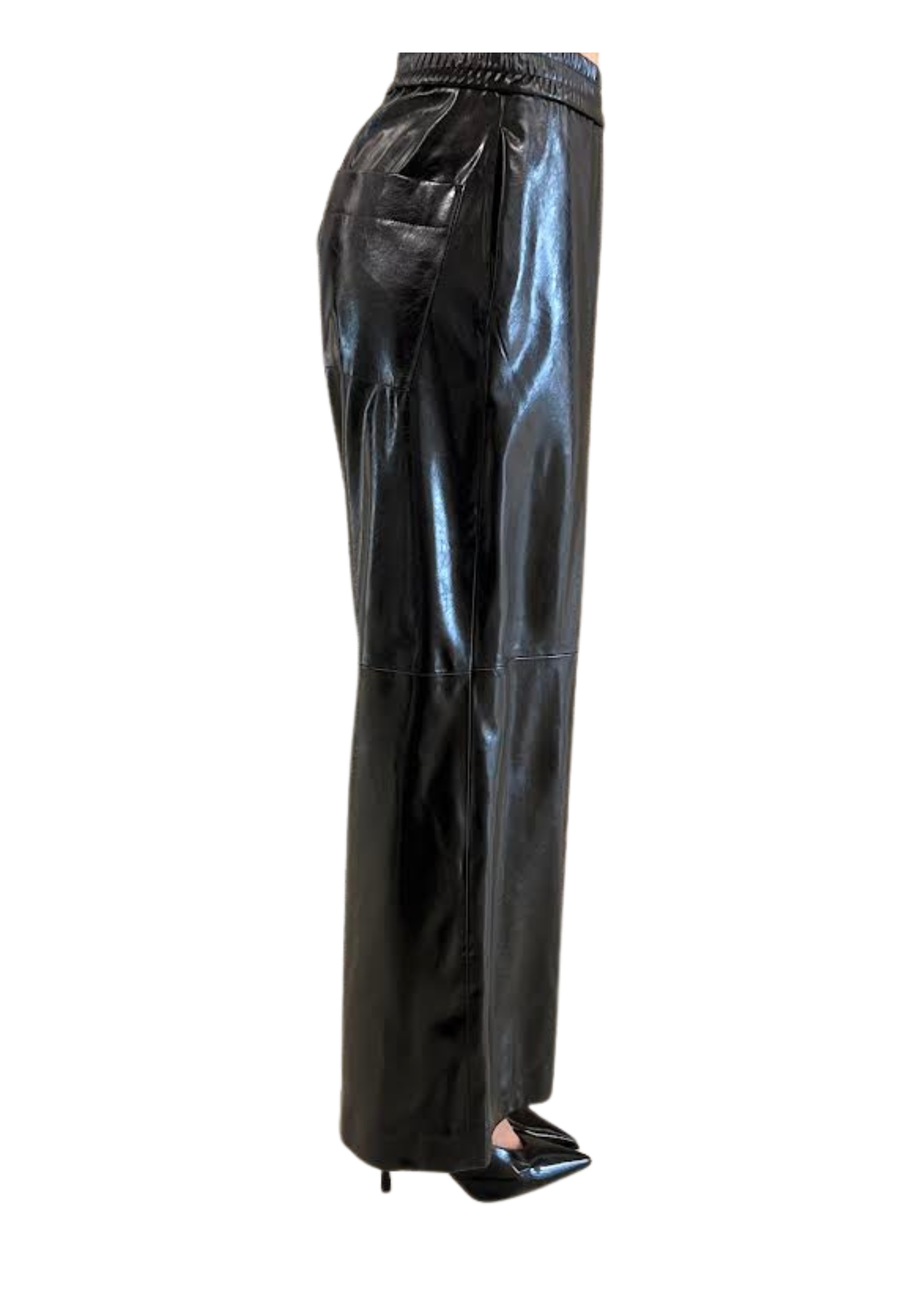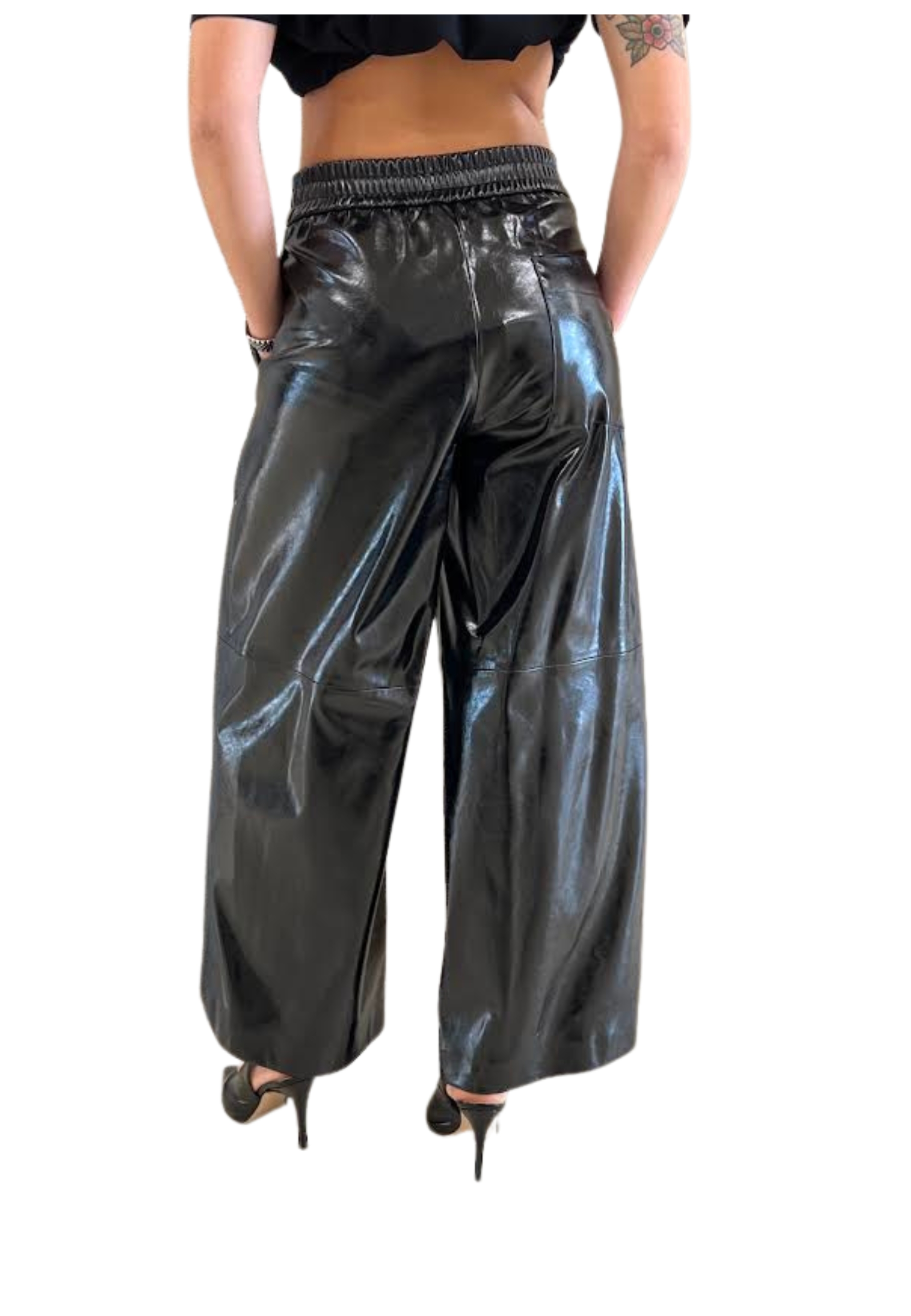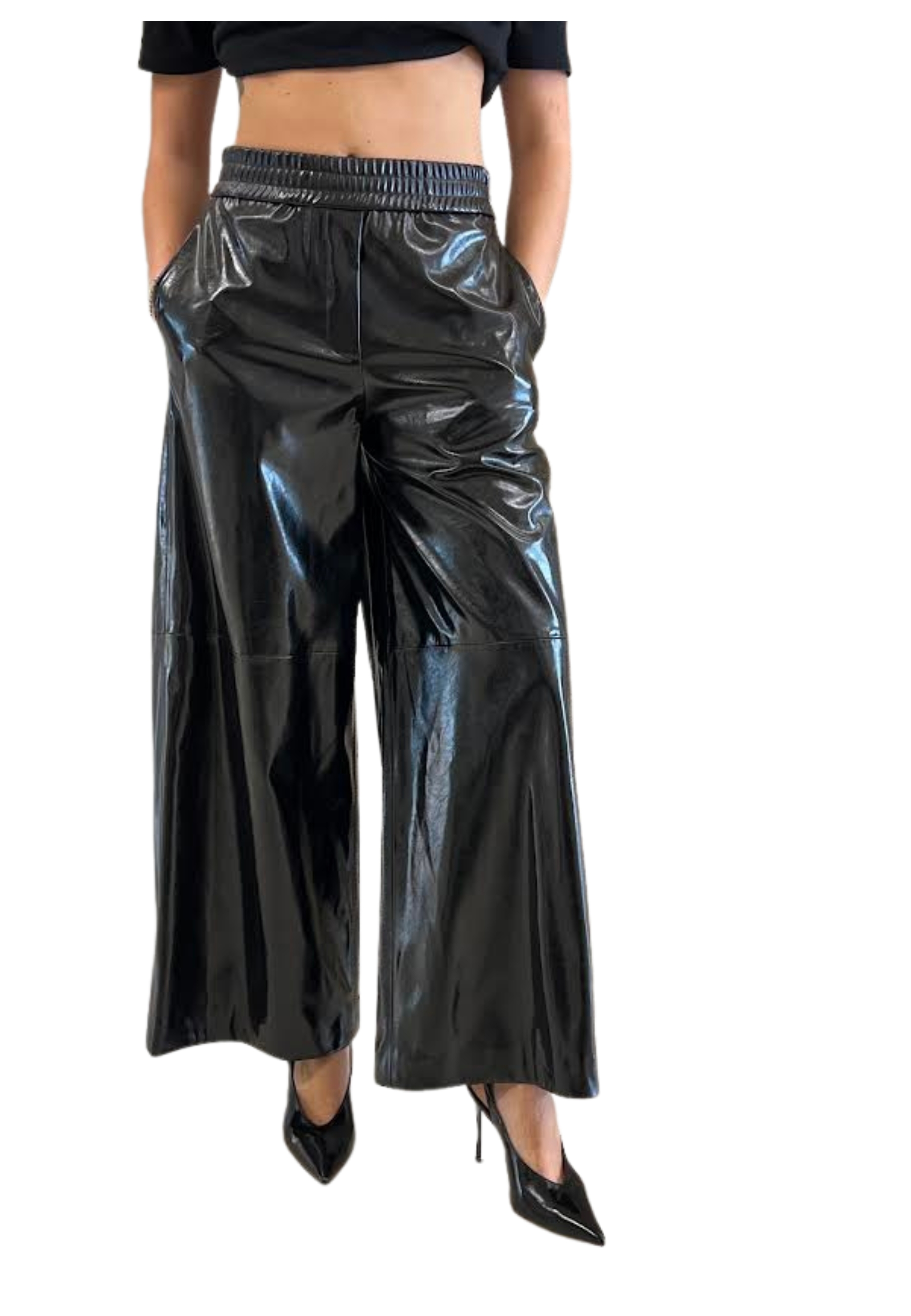schwarze Pantoffeln in glänzendem Öko-Leder mit elastischem Taillenschenkel breit
