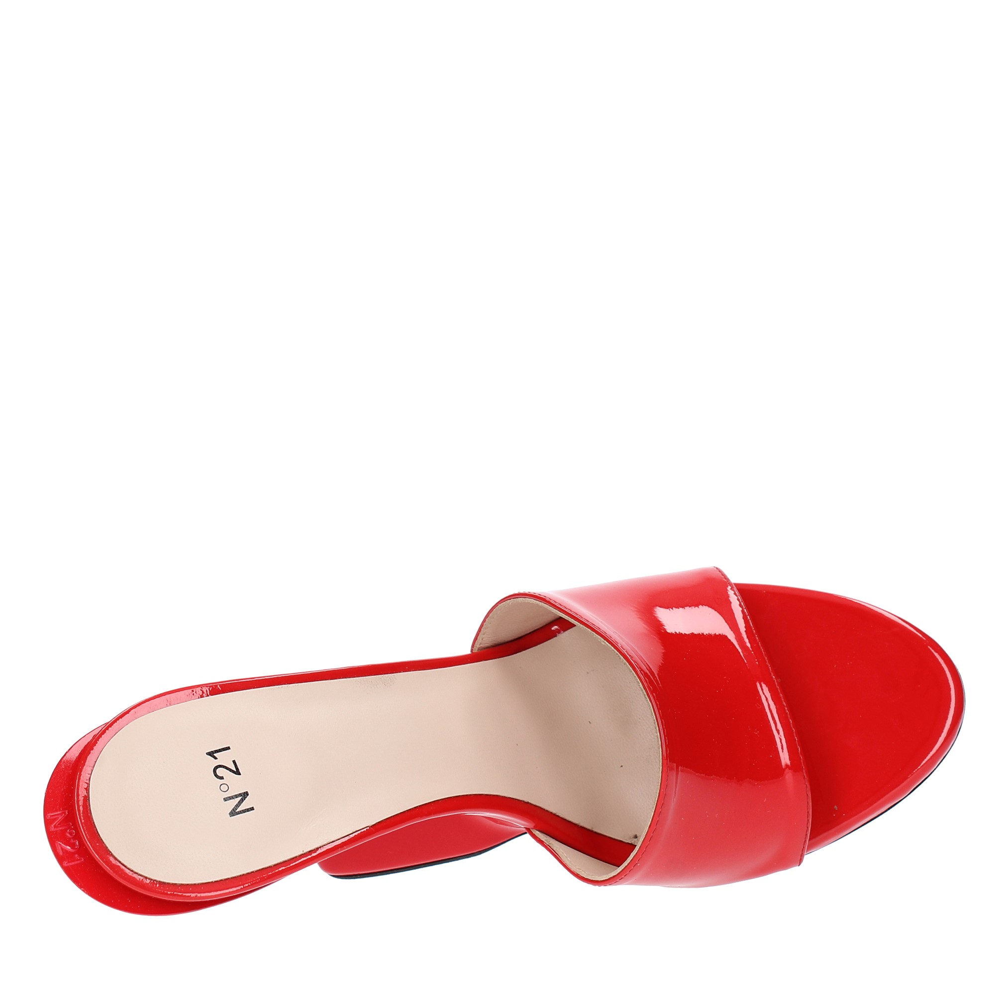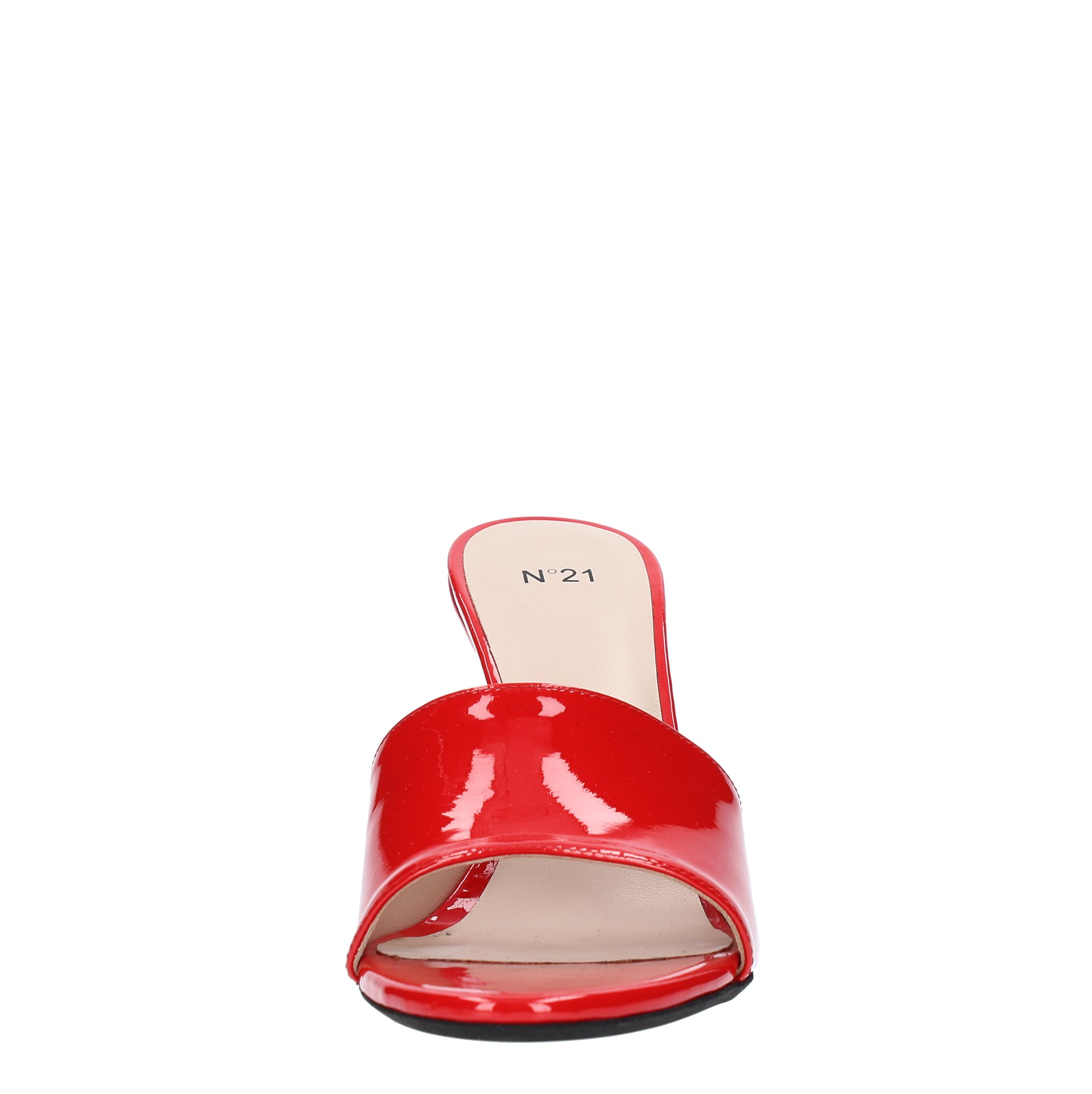 Pantoletten aus Lackleder. Außensohle aus Gummi. Innenmaterial aus Leder.