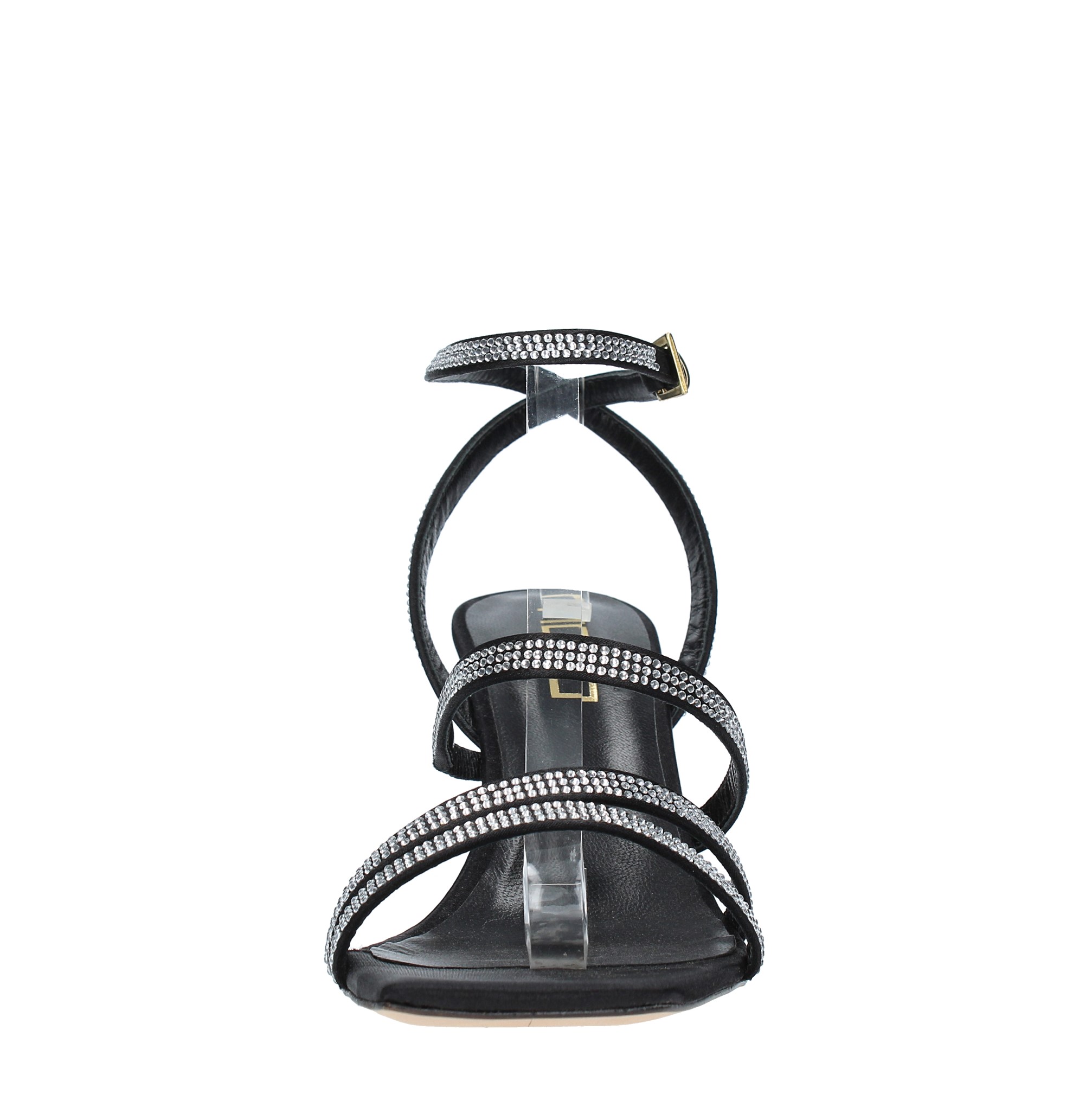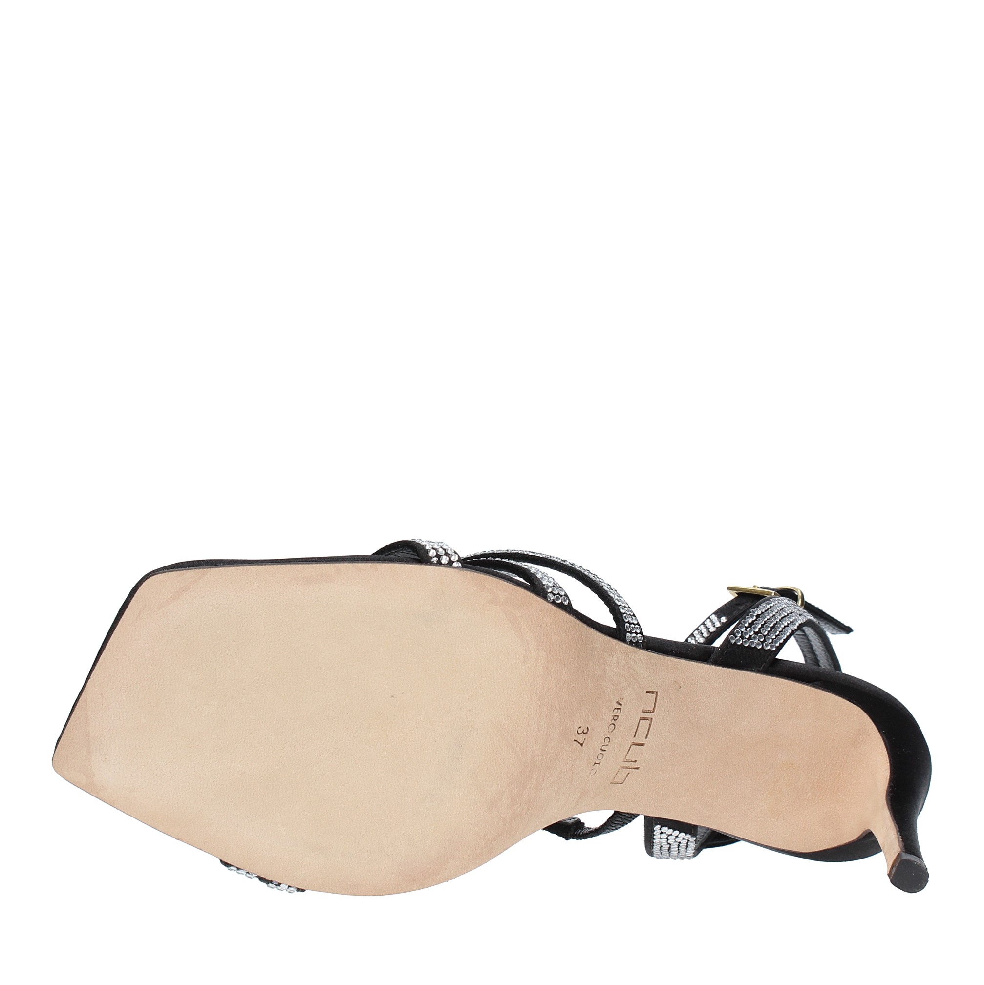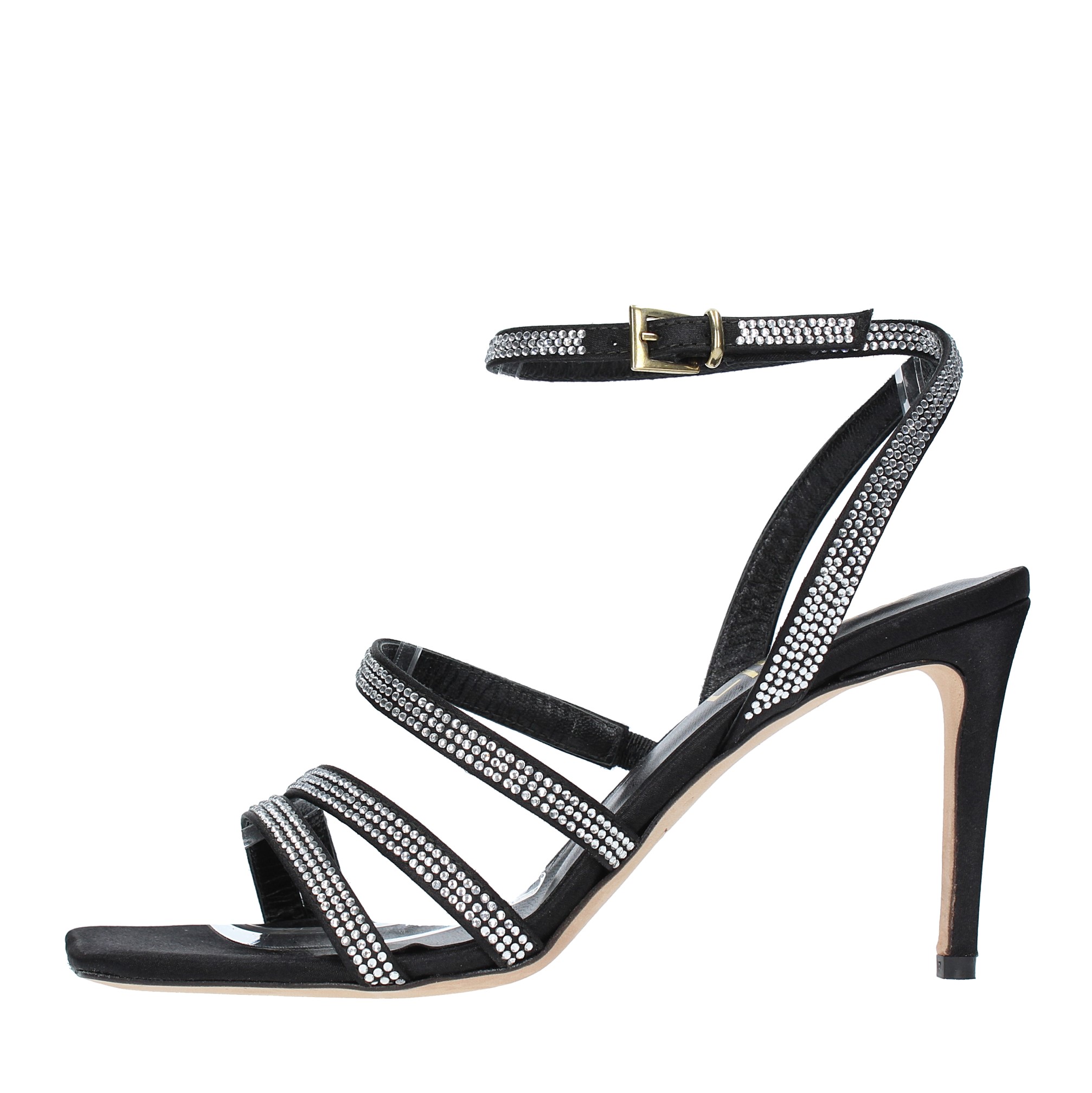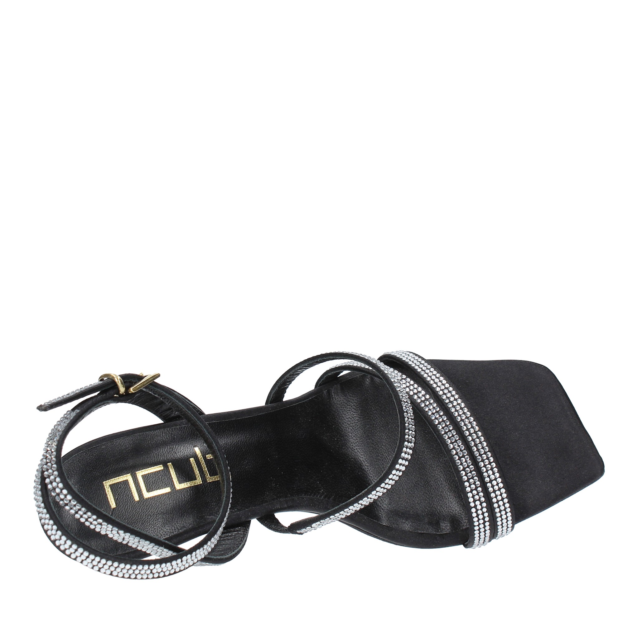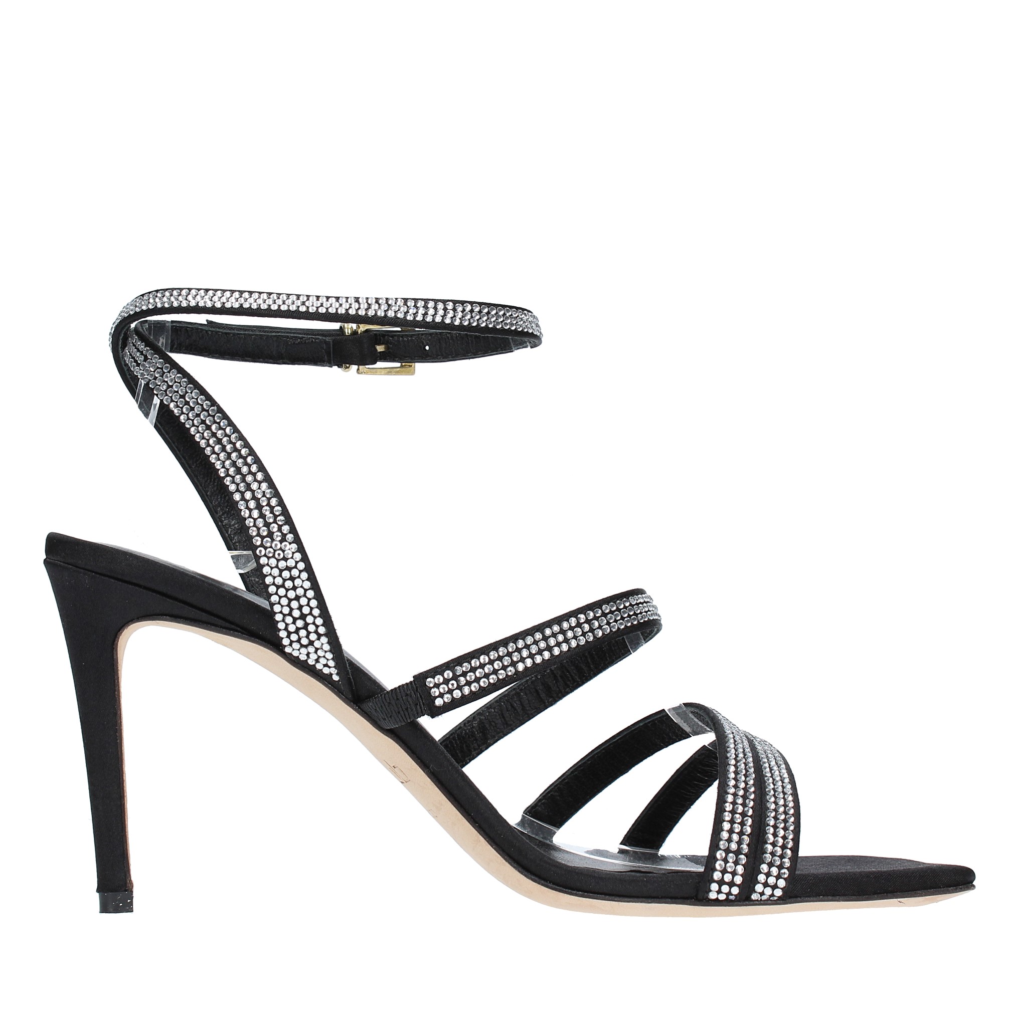 Sandalen aus Satin und Strass. Außensohle aus Leder. Innenmaterial aus Leder.