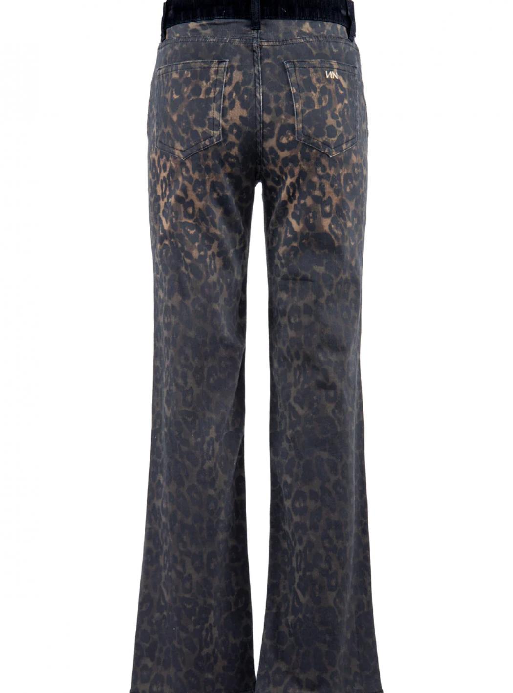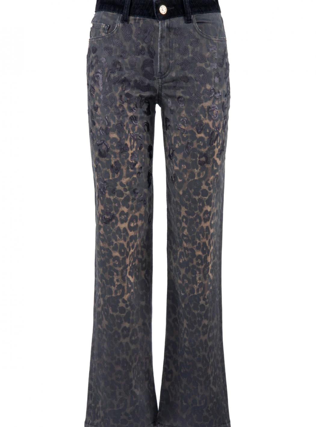 Gerades Bein in Bulle mit geflecktem Druck, geflochtenem Riemen und Stickerei Pailletten.