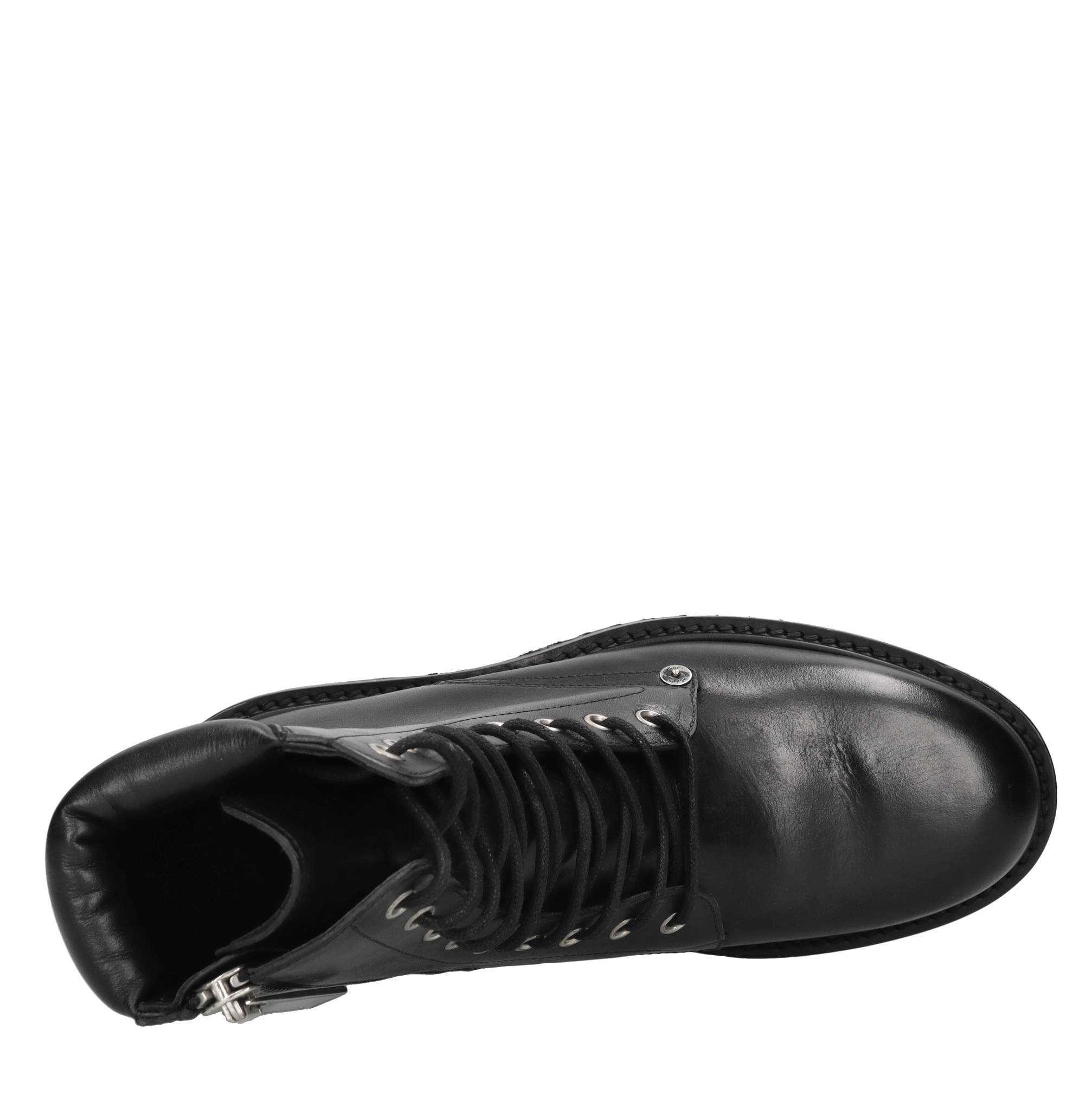 Lederstiefel. Leder oben. Außensohle aus Gummi.
