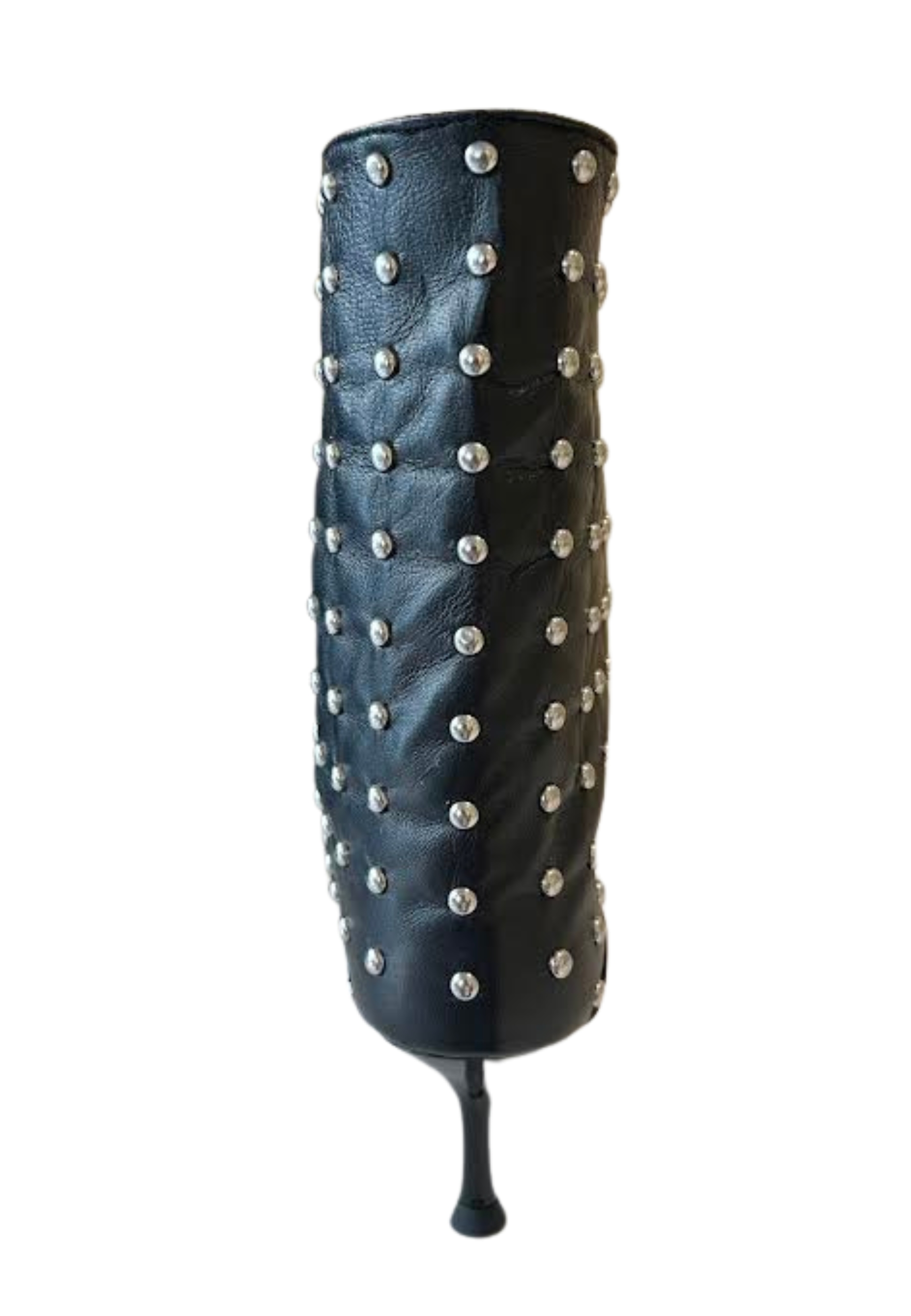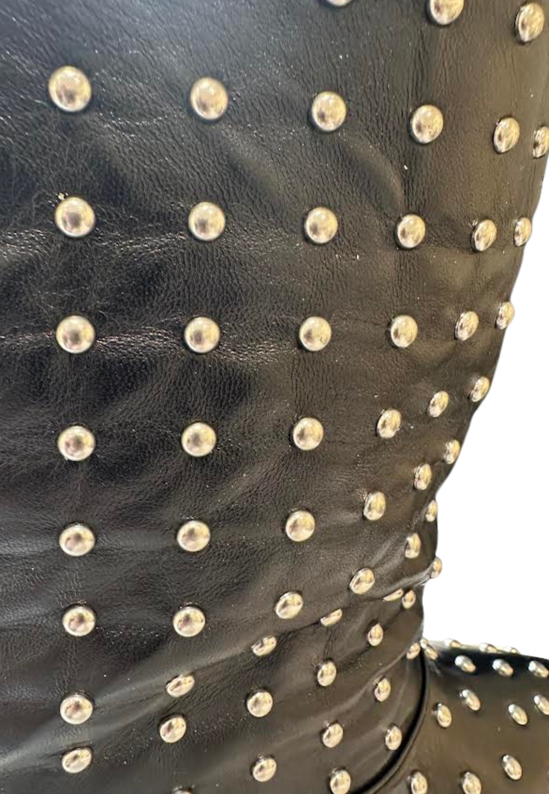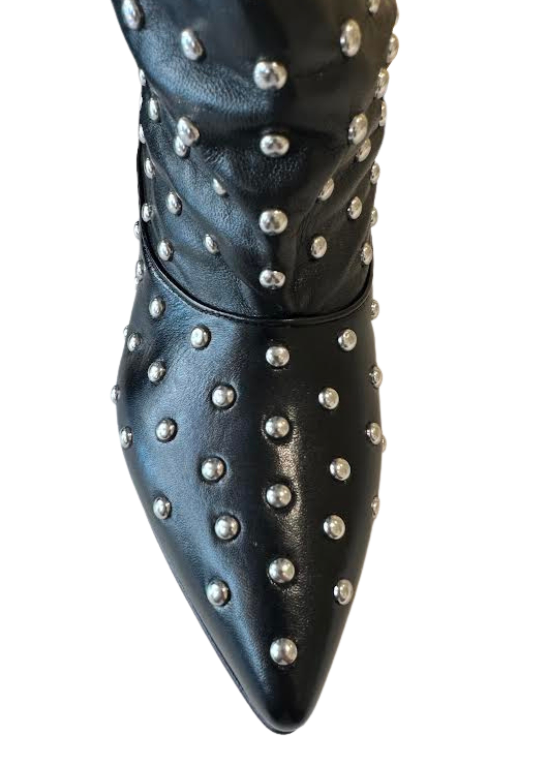 Niedriger Stiefel mit schwarzen Lederknöpfen.