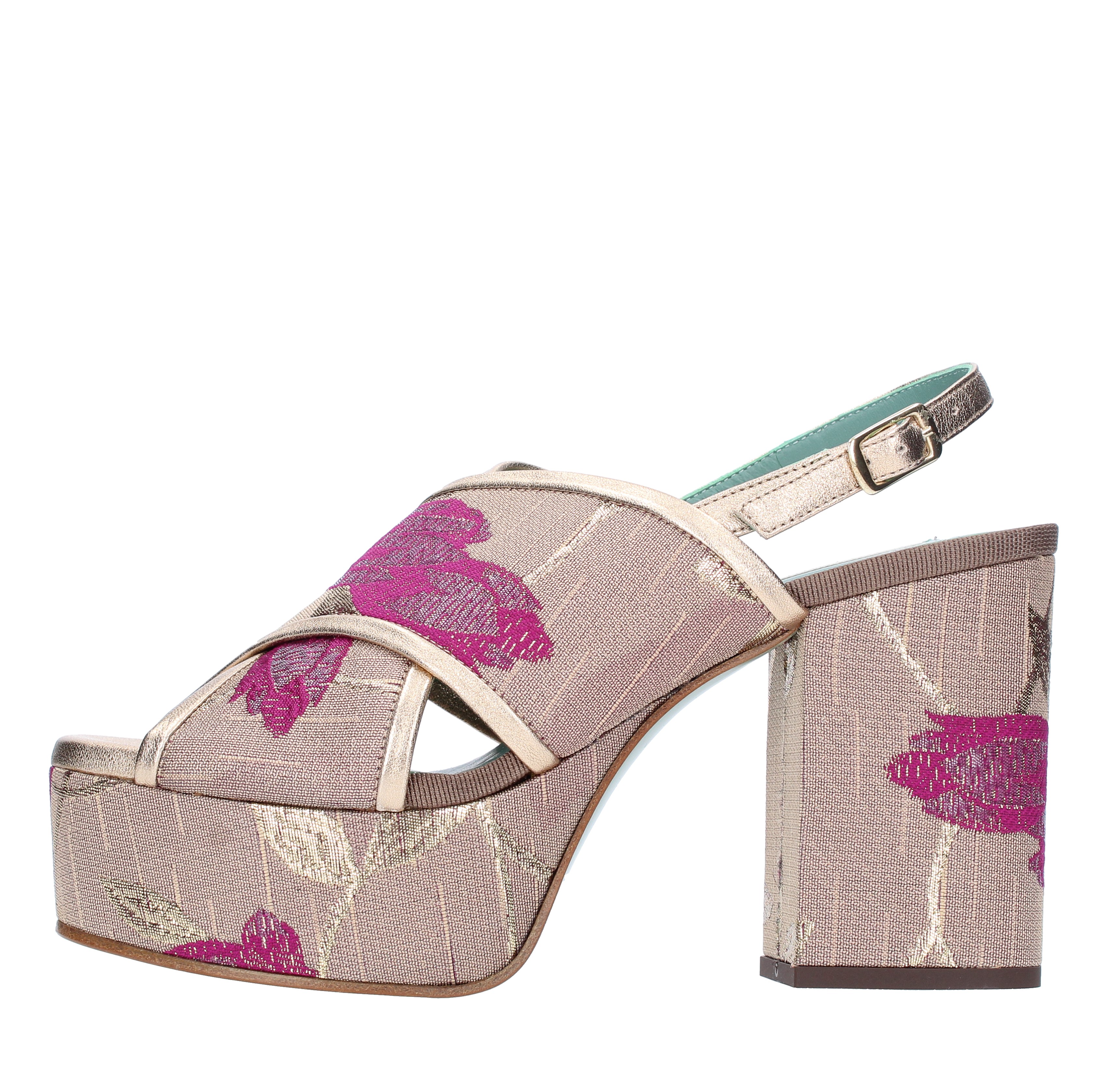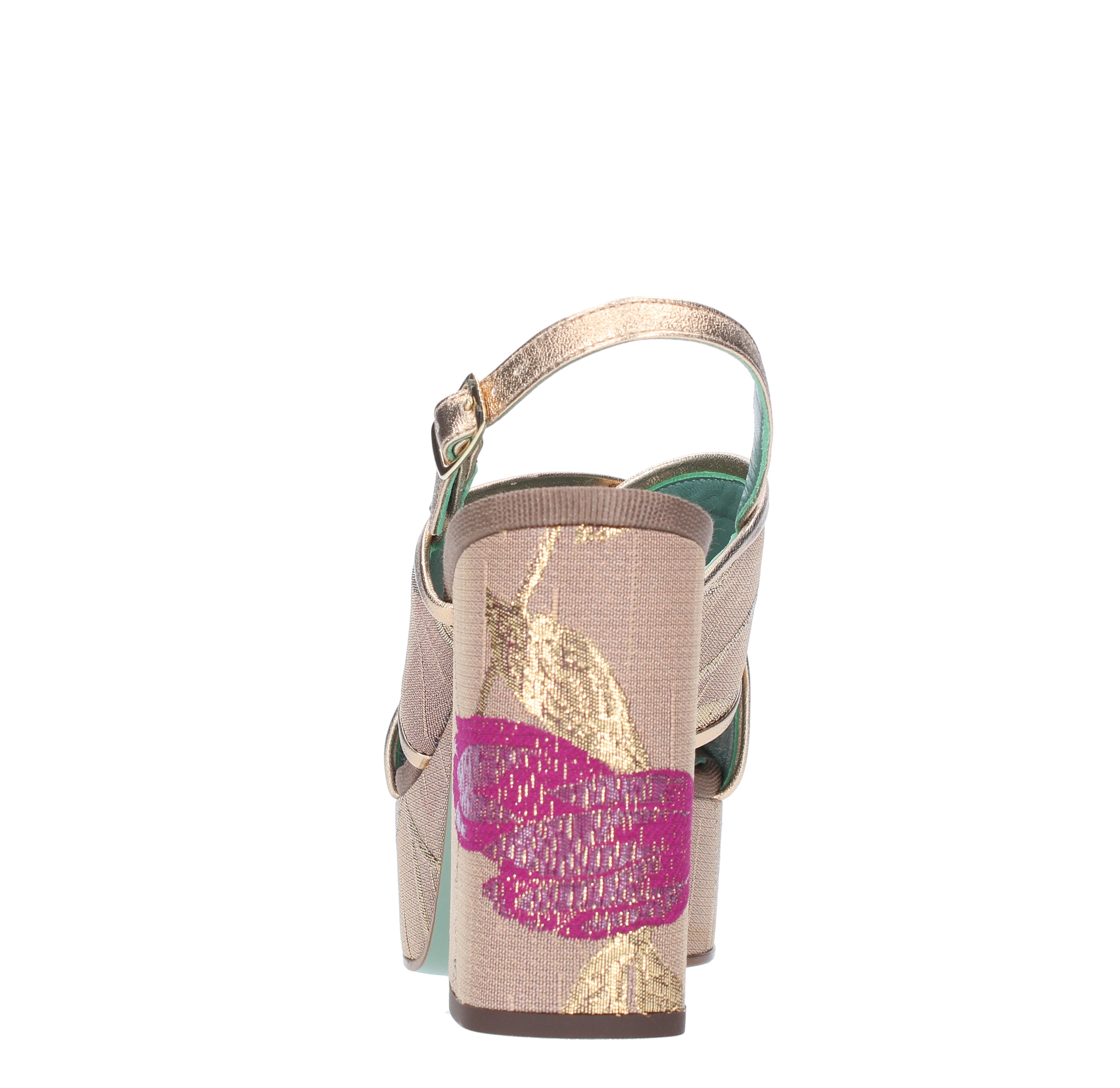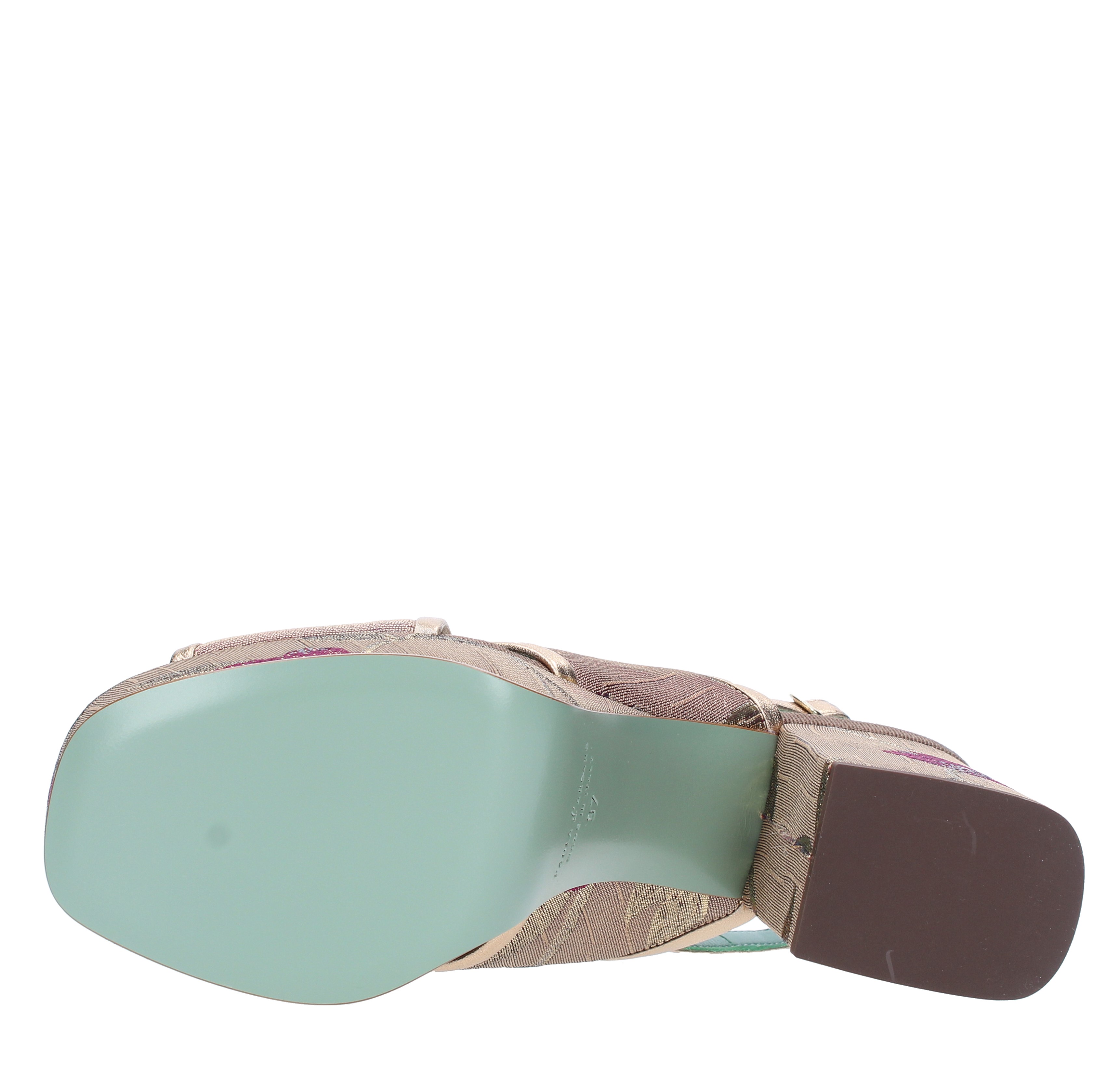 Mantero Plateausandalen für Paola D'Arcano aus Stoff und Leder. Paspel und Riemen aus Leder. 4,5 cm Plateau. Sohle aus Leder. Innenfutter aus Leder. Die Druckreihenfolge kann von der auf dem Foto gezeigten abweichen.