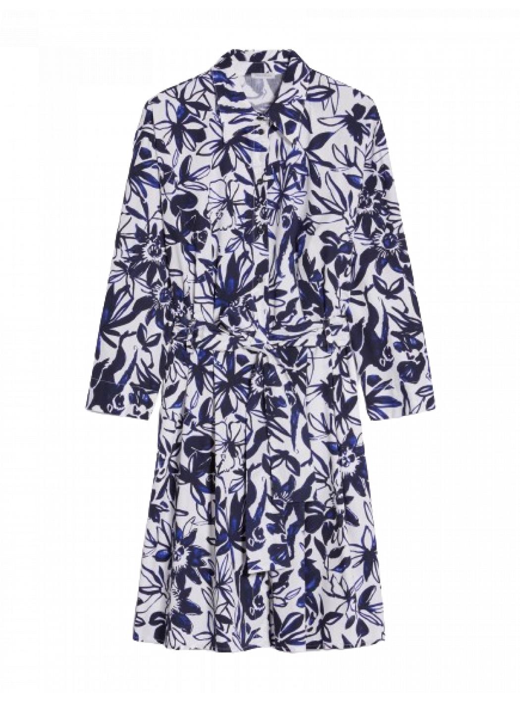 Chemisier im grafischen Dschungel-Baumwoll-Poplin. Es hat einen weichen Schnitt, bewegt durch Gegengewichte, und die mit dem passenden Gürtel umrissene Lebensdauer. Trequarti Ärmel und Taschen an den Seiten eingesetzt, herausnehmbar. Um auch in der Stadt Urlaubsluft zu bringen.